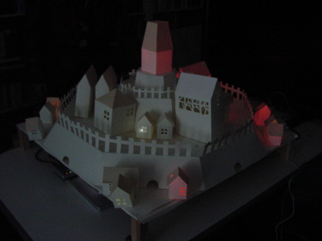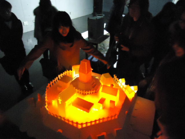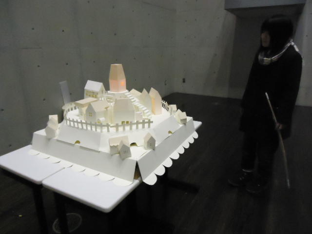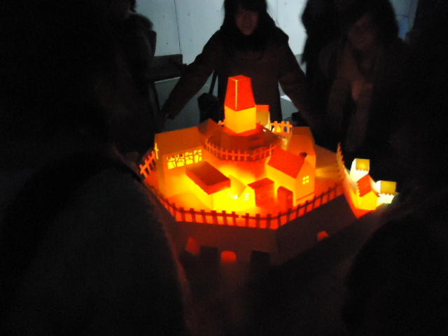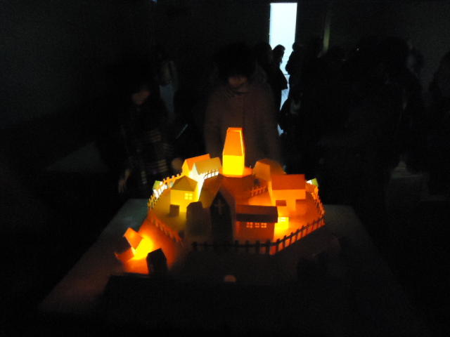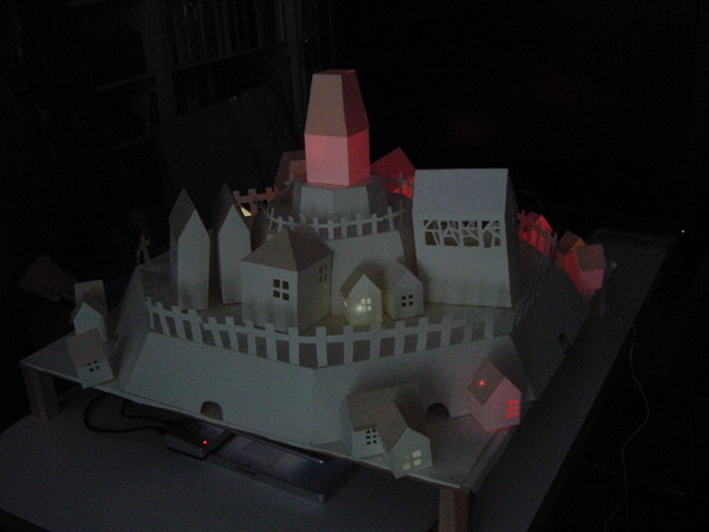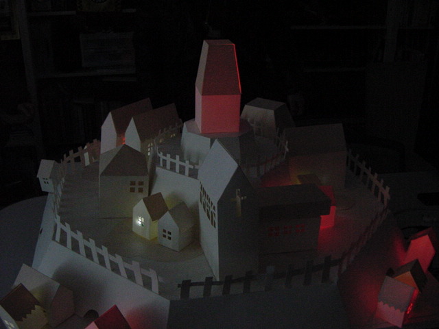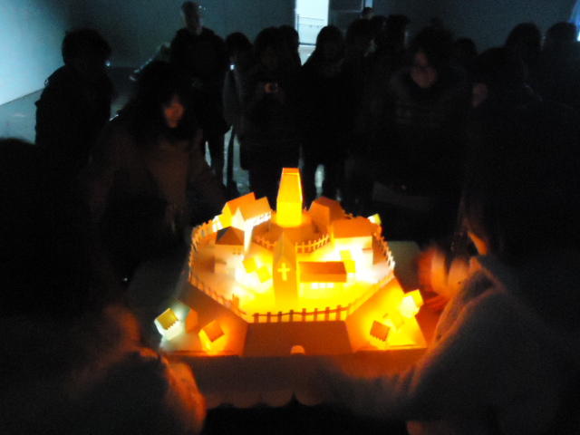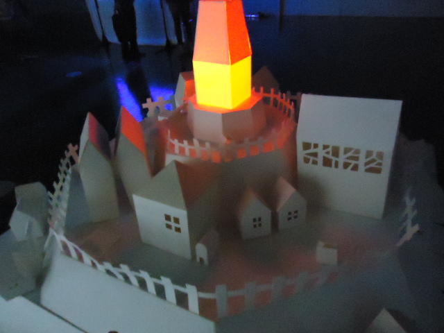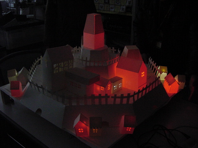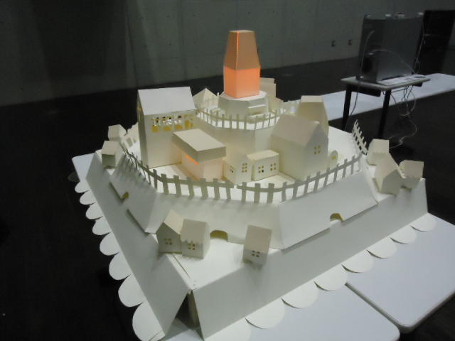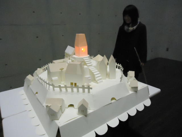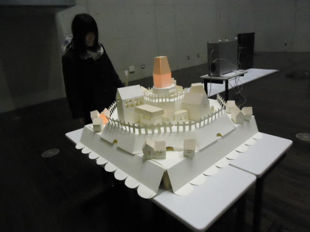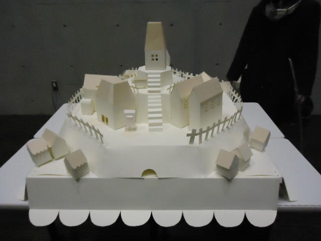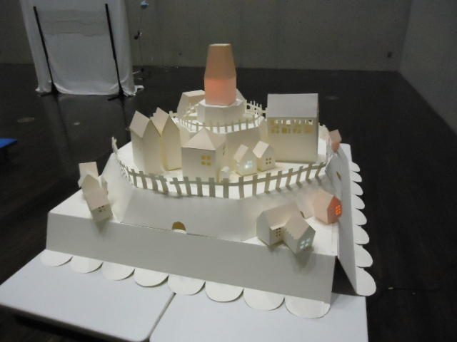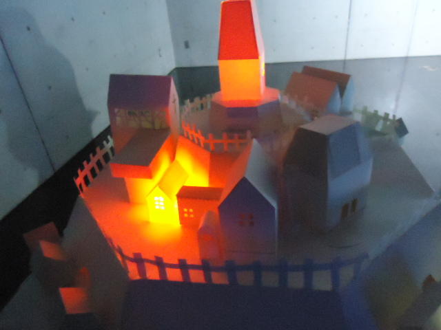 - 概要 物語の舞台となった「街」をペーパークラフトで造形した。付近に誰もいないと尖塔の中でぼんやりと明かりが招くように明滅し、8方向から体験者が近付くと、その付近の家の中の明かりが距離に応じた強さでほんのりと灯る