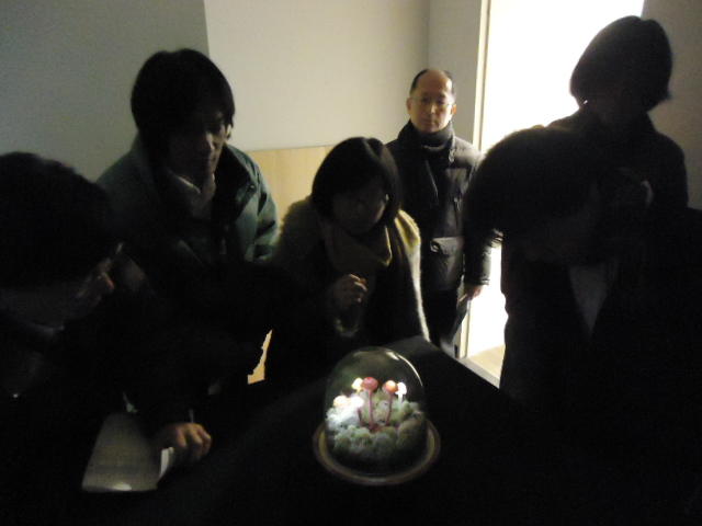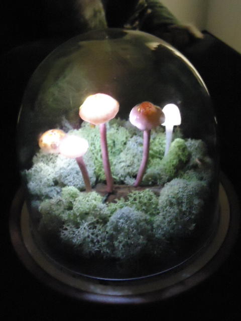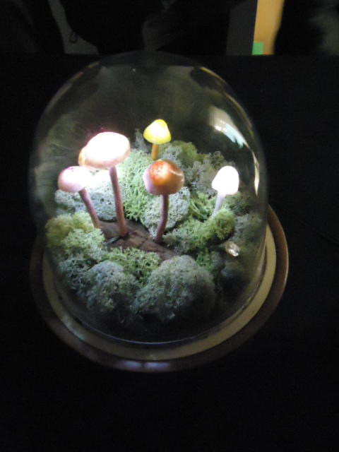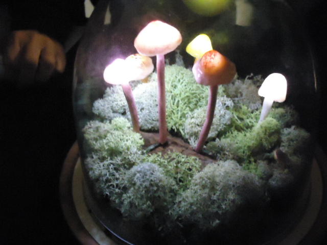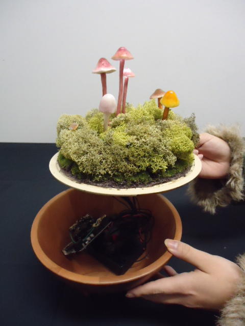 - 概要 植物たちであふれた容器の中で、キノコが白く明滅したり、草がびくっと動いたりする。暗いとたくさんの明かりと動きがあるが、部屋を明るくするとその数がずっと少なくなり、手で陰を作ると、もう少しその数が増える