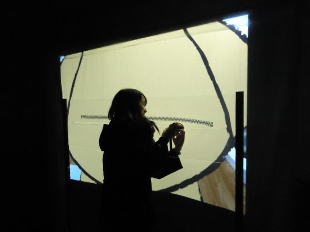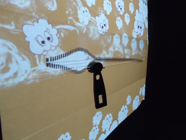 ジッパーを開けて物語を進めるインスタレーション