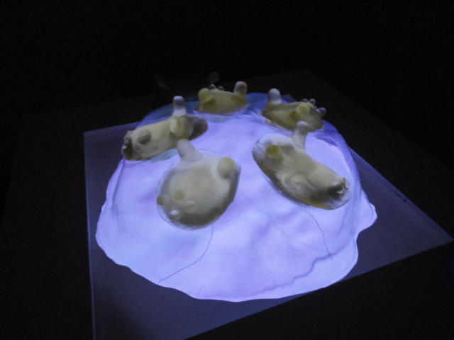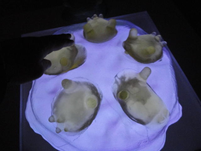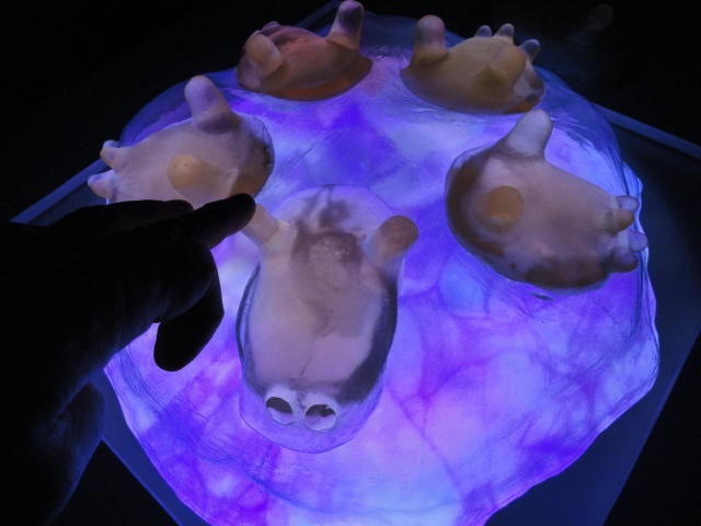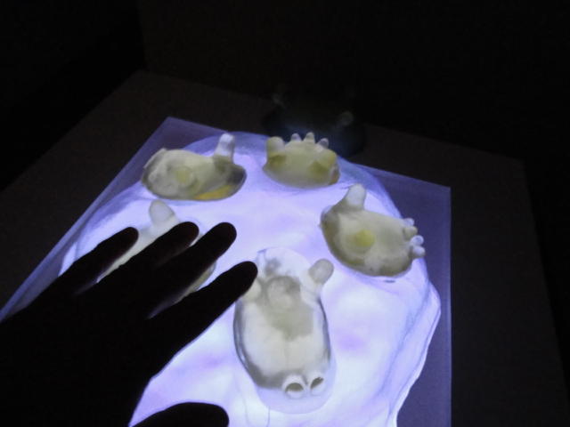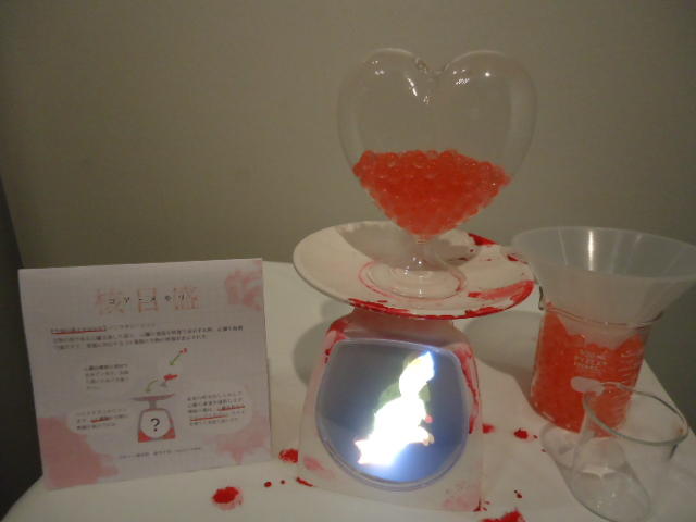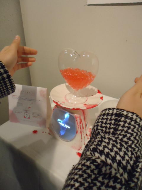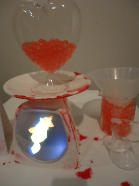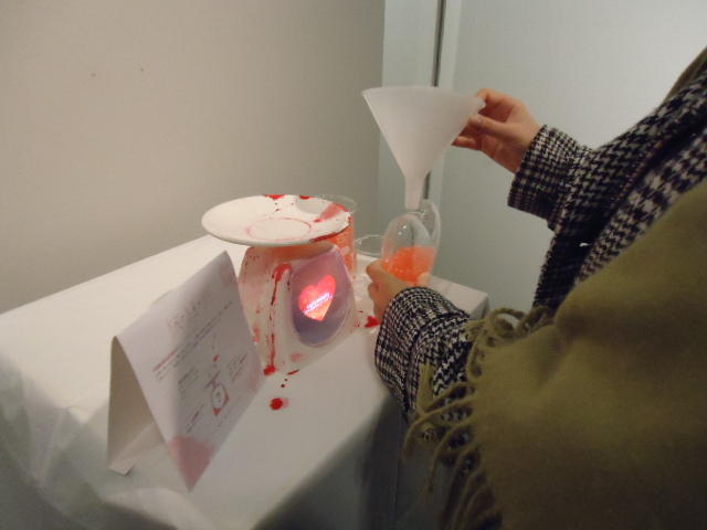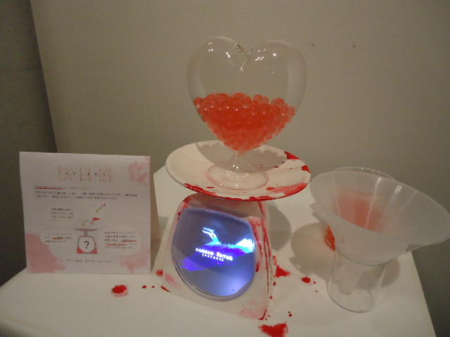 - 概要 ハート型の容器に血液の粒を満たすと、その重量に対応する心臓の生物の映像が現れる