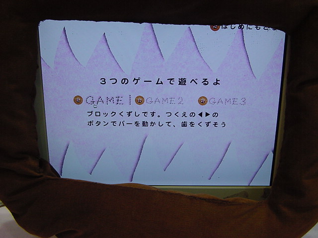 - 概要 スクリーン上にある巨大なジッパーを開けて物語を進める。ときどきジッパーの隙間から何かが出て来る