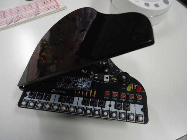 - 楽器の背景的な知識 - エレキットの[AW-865]のケースと鍵盤に相当するスイッチだけを利用して、本来の電子回路の部分は全て取り去り、Arduino Nanoを使って"Mozzi"によるFM音シンセサイザとして鳴らすように改造した。詳しくは