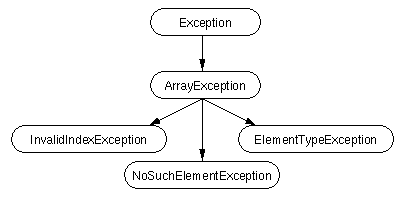 InvalidIndexException, ElementTypeException and NoSuchElementException are all leaf classes and each one represents a very specific type of error that can occur when manipulating an array. A method can catch an exception based on its specific type (its immediate class or interface). For example, if your wanted to write an exception handler that handled only invalid index exceptions, your