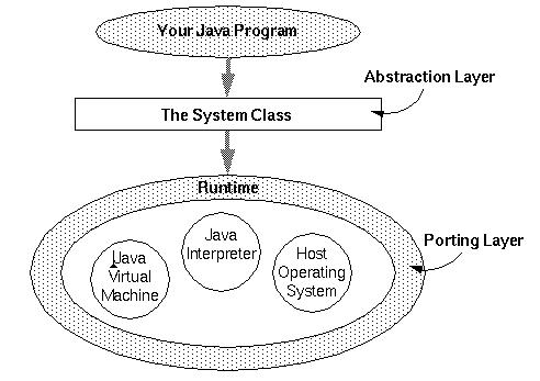 getenv()andsetenv()functions. Other runtime objects, such as MacOS, may not supportgetenv()andsetenv()because the host operating system doesn't.Because the Runtime class is tightly integrated with the implementation of the Java interpreter, the Java Virtual Machine and the host operating system, it is system dependent. If objects in your program message the Runtime object directly, your program is likely to be system dependent and require modifications before being able to run on other systems.