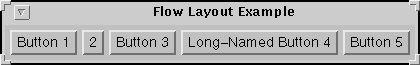 Here's example code for using FlowLayout. Since FlowLayout is the default layout manager for Panels, the example doesn't explicitly set the layout manager.Here's the example program, running as an applet: