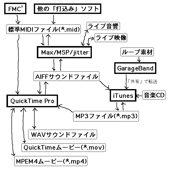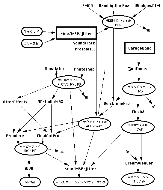 - 形態としては、FLASHムービー(swf)、Max/MSP/jitterパッチ(mxb)、QuickTimeムービー(mov)のいずれか