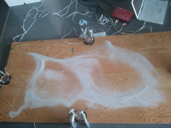 板を低周波振動させ、その上の砂が形成する模様を画像認識して音響を生成フィードバックする(類似作品) ★