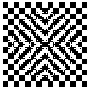 エーレンシュタイン錯視 四角が歪んで見える。歪んでないと思いながら見ても歪んで見えます…櫻木葉月 (タイトル) 白い点がそれぞれ蛇行しているように見えますが、実は全て真っ直ぐに進んでいます
