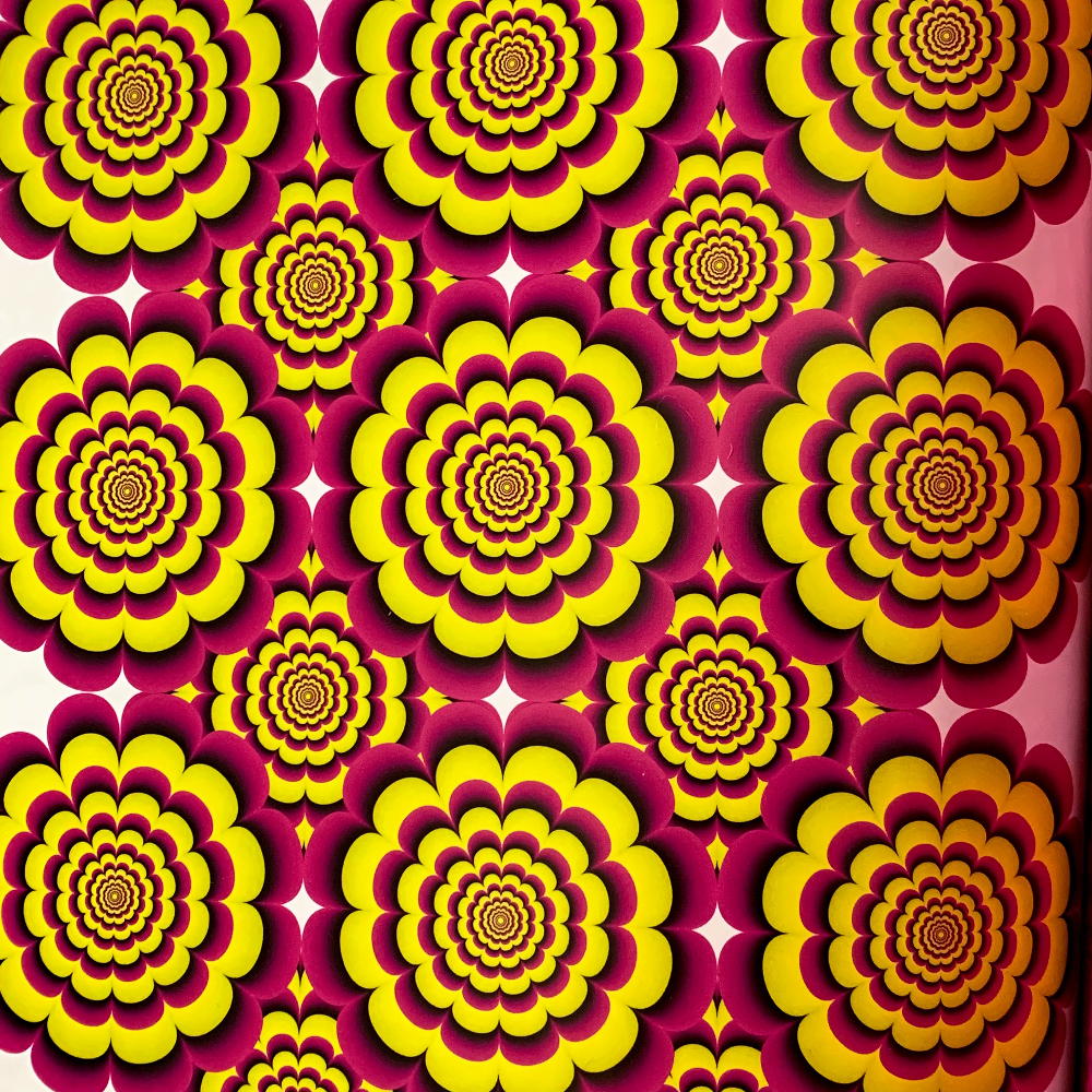 (タイトル) 中心を見つめていると、円の抜けているところに存在しない緑色の円がみえる井上聖菜 カフェウォール錯視 市松模様だけではなくちょっと面白い模様付きのものを見つけました