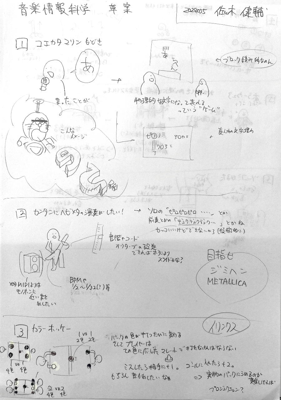 - 完成作品でなく、「仕組みの実験」、「仮ゼミの自主制作」、「後期ゼミのための実験/試作」でOK