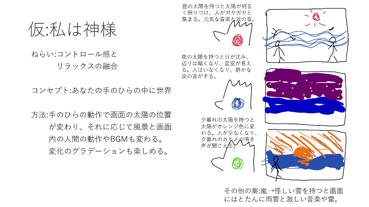 - インタラクティブ作品に関する「企画/妄想/構想」の検討