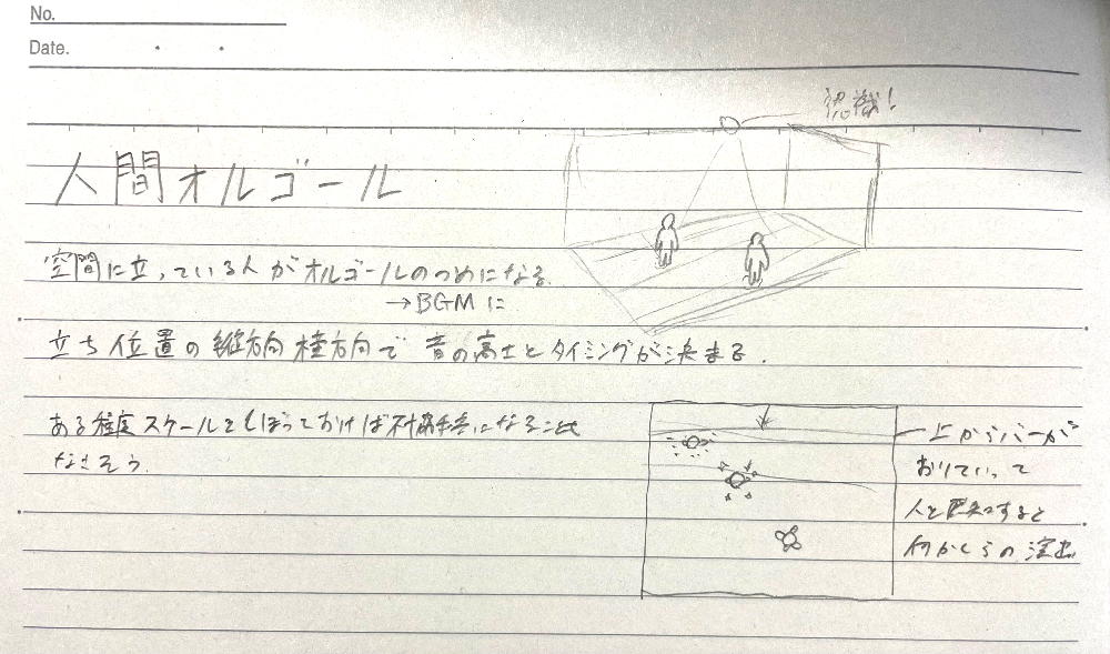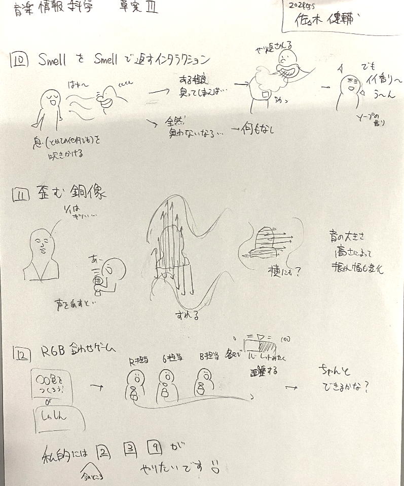 次回(2週間後)には、各自それぞれ「5件ずつ」、インタラクティブ作品に関する「企画/妄想/構想」案(A4のPDF)として提出または持寄って検討を進める。文字/言葉だけの企画は不可、必ずイメージスケッチがあること- 3日目(2022.05.06)
