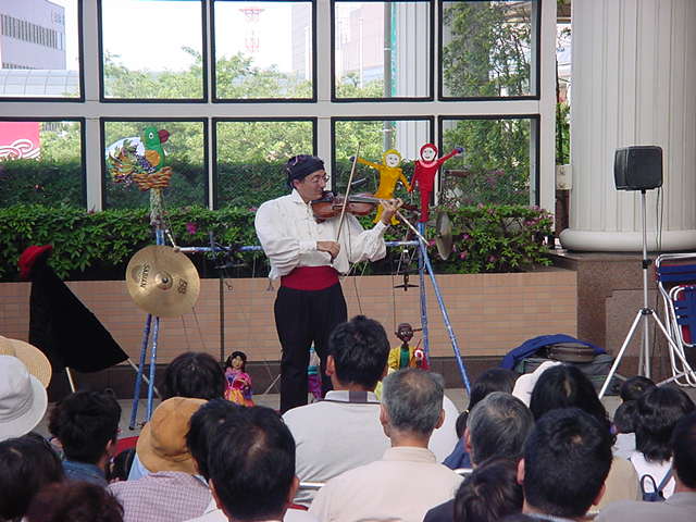 2002年5月5日、連休もタケナワの中、MAF2002のコアスタッフの 二人(日野さん、斉藤さん)とともに「作品募集ページ」などを編集して お仕事しました。その後、浜松まつりの最終日で賑わうアクトシティの サンクンプラザに繰り出しました。以下の写真は、初めてデジカメを 使った二人の力作が中心です。なかなかよく撮れています。(^_^)