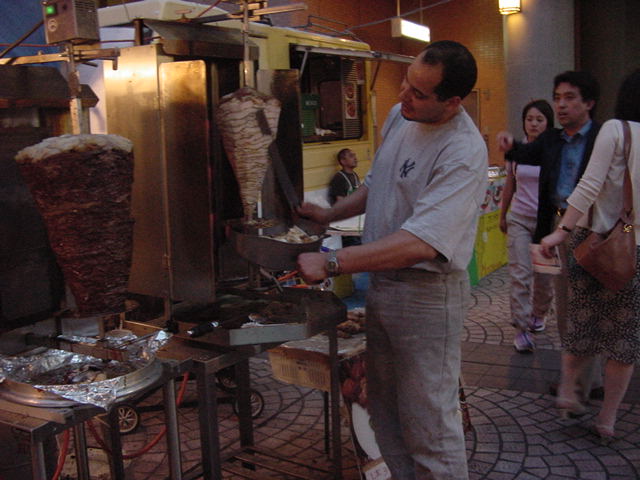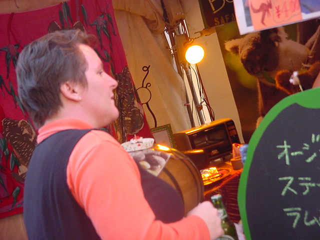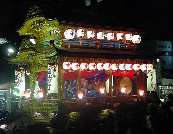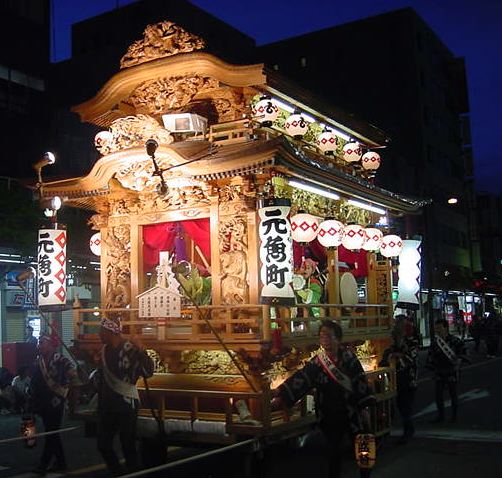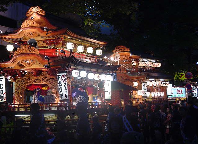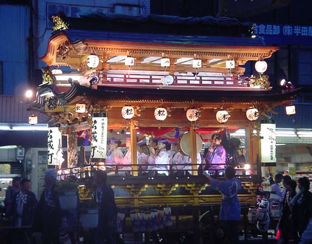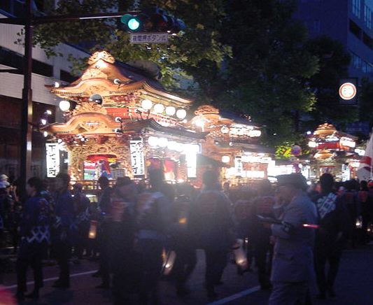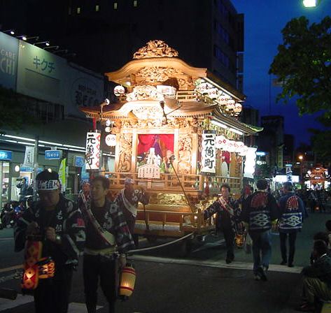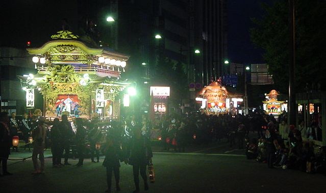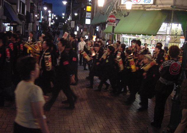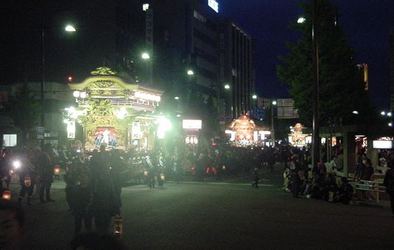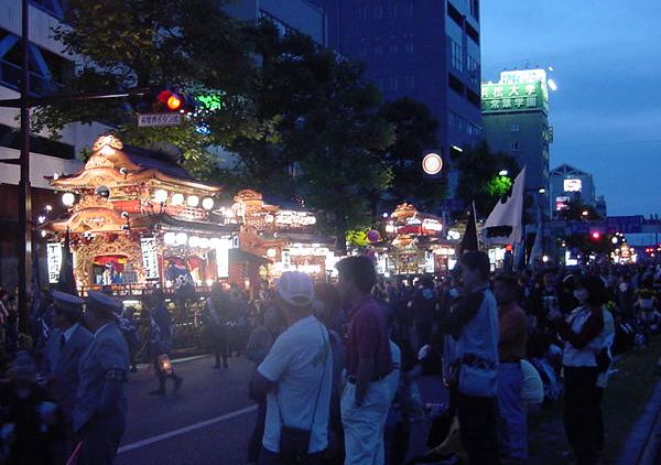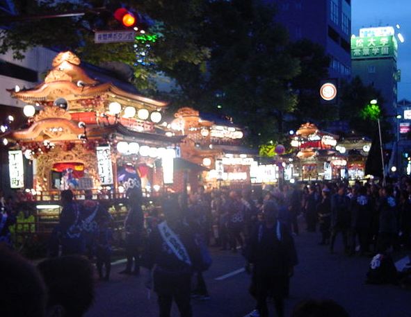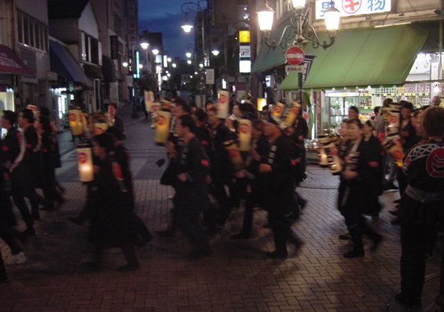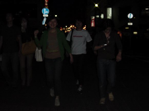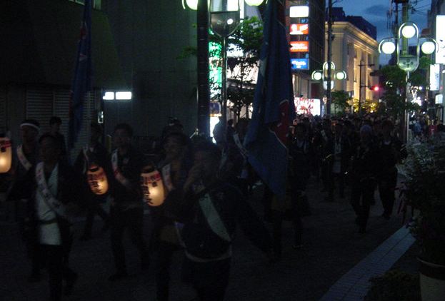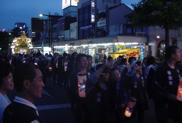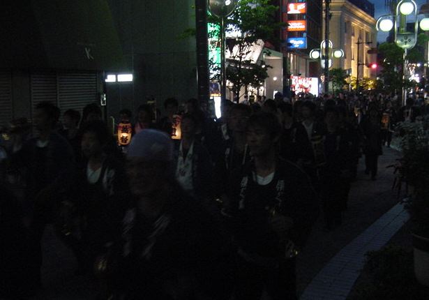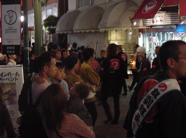 その後、アクトのドラえもんイベントでバイトしていた小島さん や渋谷さんと合流したあとで、今日は晩にりっきー(西尾さん)の 浜松での初ライブがあるので行こう、ということになり、 御殿屋台で賑わう市内を抜けて、市役所の方に歩きました。 以下の写真は、前半は学生二人ですが、後半は僕です。