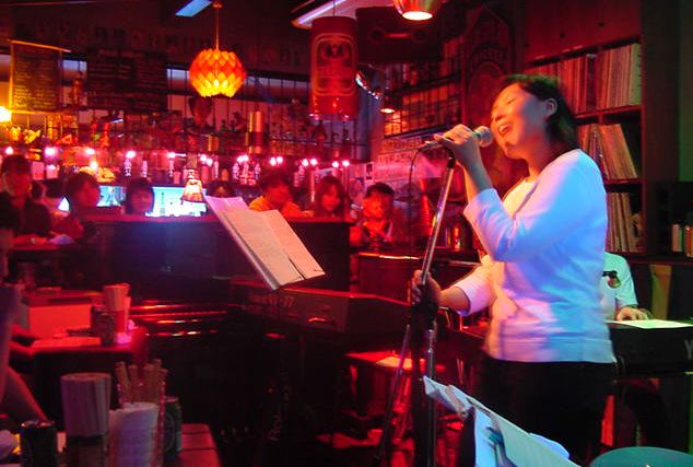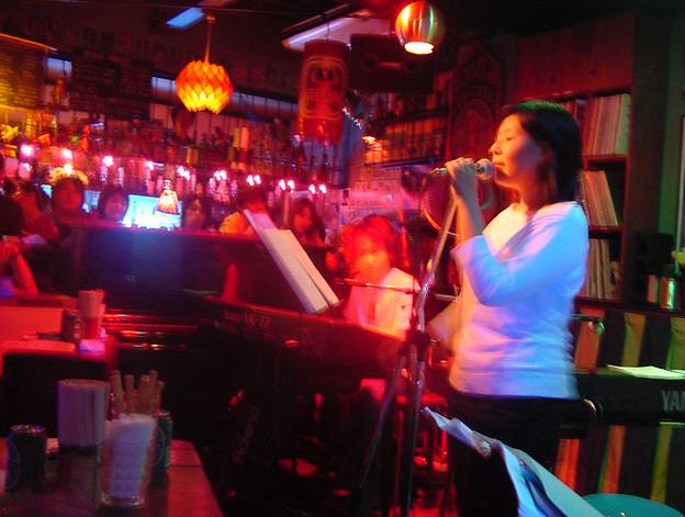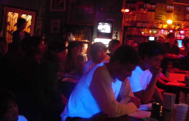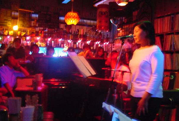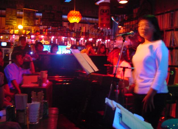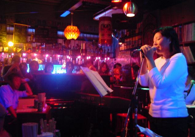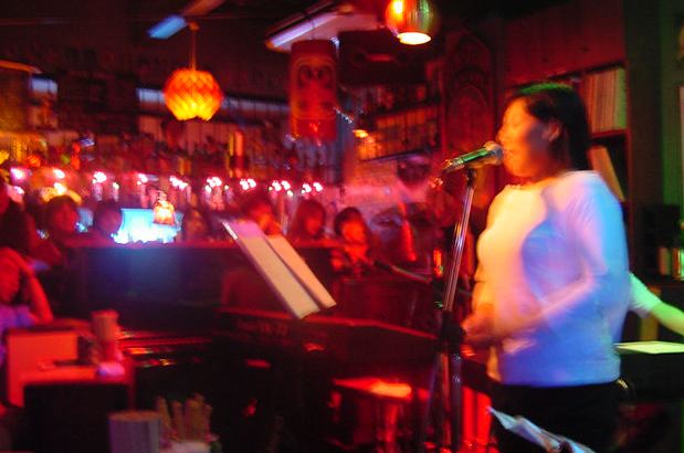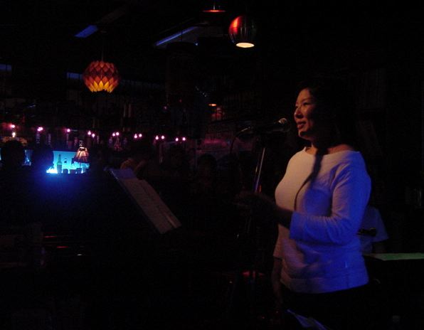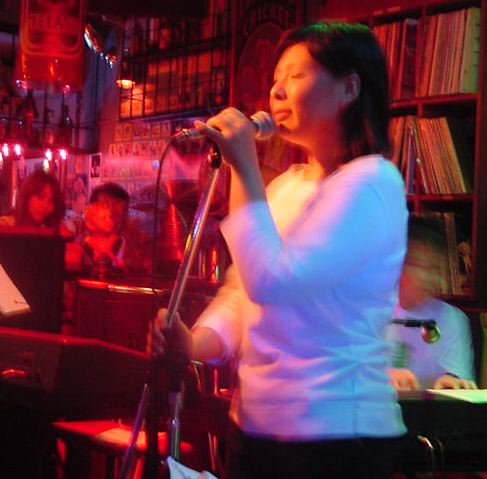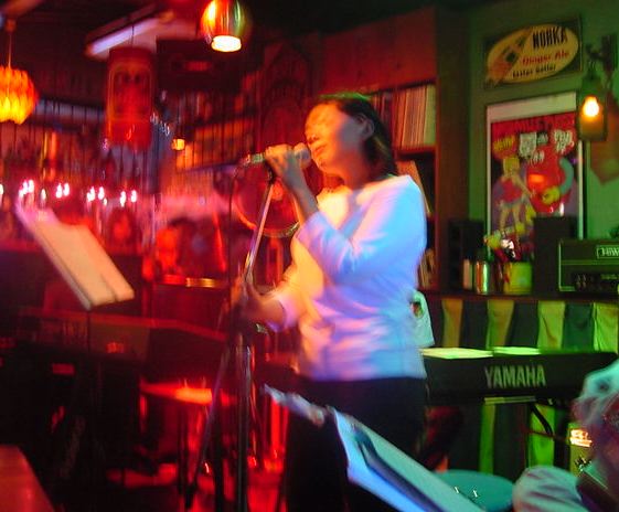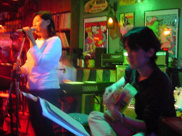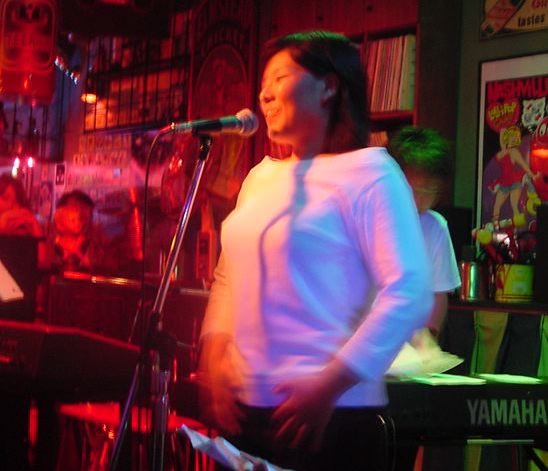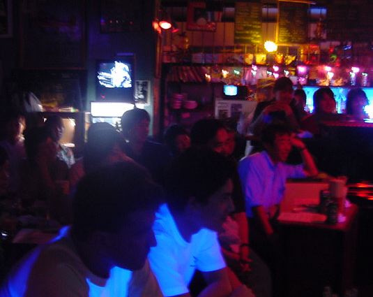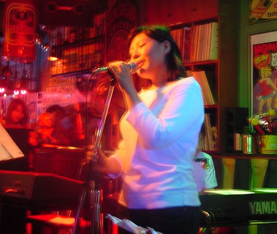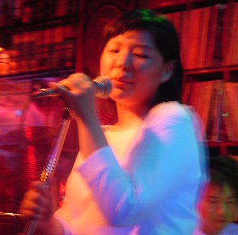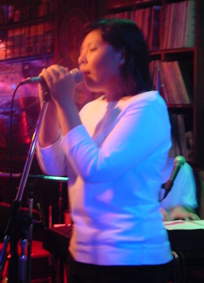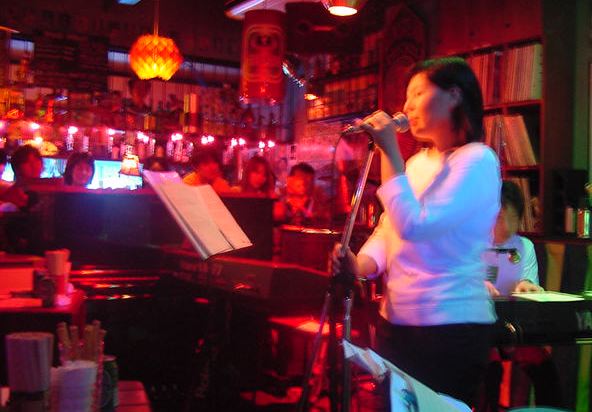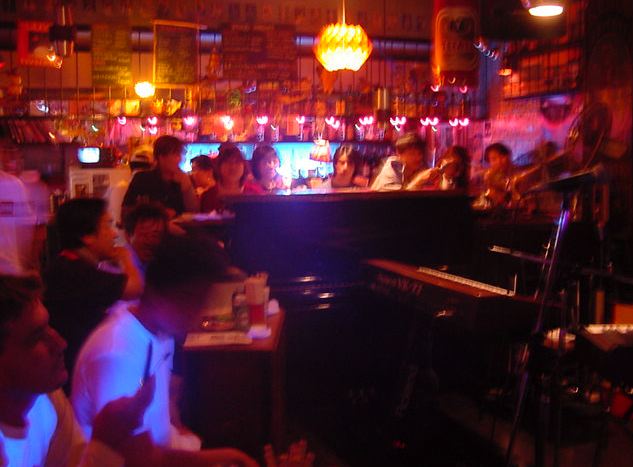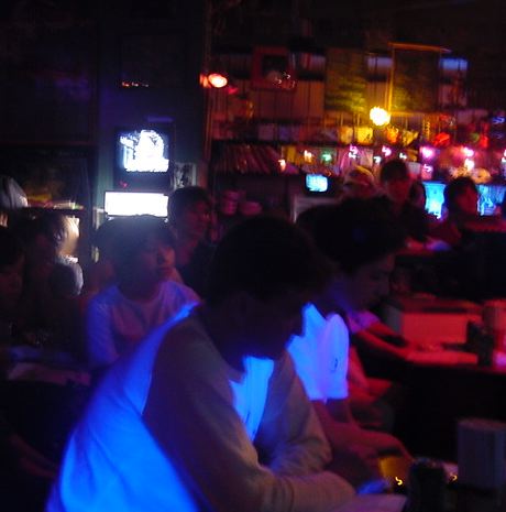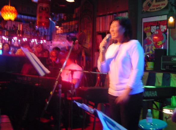 そして、いよいよ「りっきーライブ」の現場です。 心霊写真のように(^_^;)流れているのは、暗い会場で ストロボを焚かずに長時間露光したためですが、 けっこういいカンジに撮れました。 りっきーもなかなか頑張りました。(^_^)
