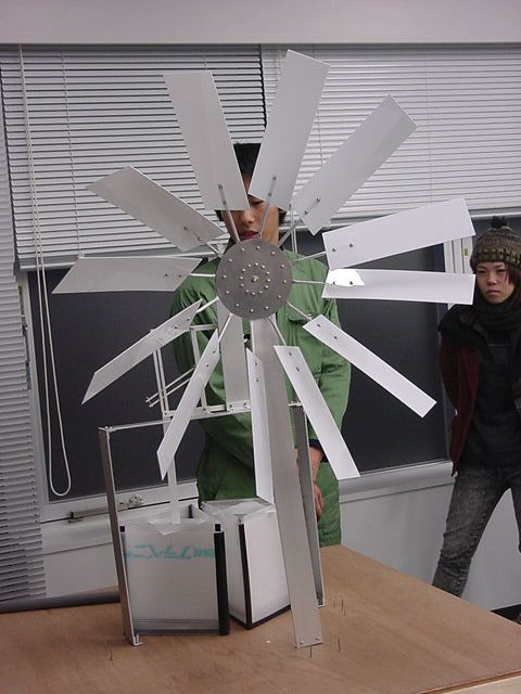 櫻井洋クンは、「風車でふいご(ポンプ)を動かし、その風で 笛を鳴らす」という造形に取り組みましたが、いろいろ問題が あってリトライしていました。しかし残念ながら、完成には 至らず、いろいろと厳しい批評を受けました。これを バネにして、次回を期待したいです。