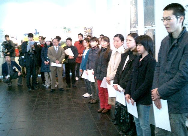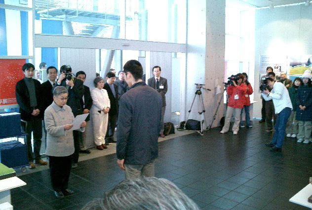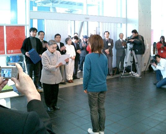 卒展2004表彰式 2004年2月 長嶋洋一 初めての卒展初日の、デザイン学部長表彰式に行きました。 それぞれの卒展の展示については、もっと空いてきてから見に行く予定です。