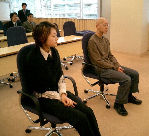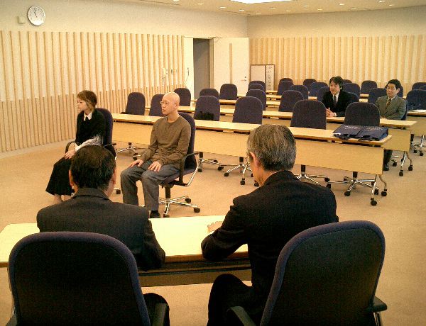 ちょっと遅いSUAC卒業式 2004年3月 長嶋洋一 普段、学生が入ることもないデザイン学部教授会用の会議室で、ちょっとした 事情(^_^;)で3/17より遅れた卒業式が挙行され、2004年3月30日、 技術造形学科からさらに2人が卒業していきました。