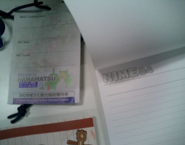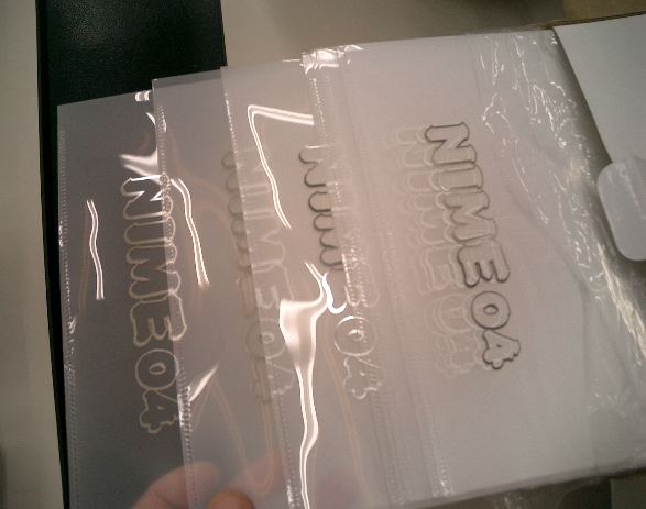 「NIME04グッズ」続々入荷 2004年5月 長嶋洋一 5月26日・はまおん 5月27日・事務局 5月28日・中部印刷 5月28日・松本印刷 5月28日・はまおん 5月28日・1106研究室 5月29日・受付設置日
