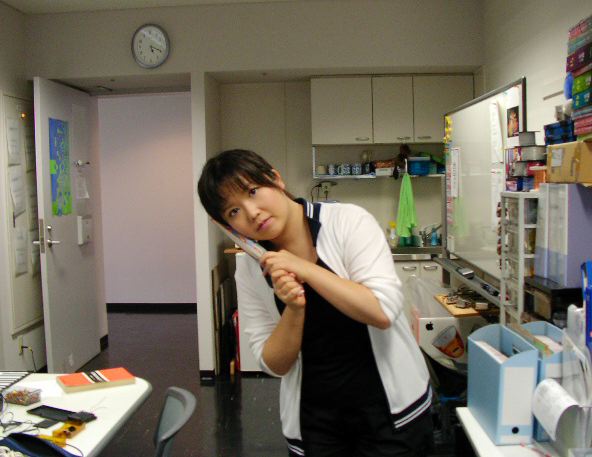 今回は、NIME04に長野高専の大矢さんが持ってきてその存在を知って、 Sabbaticalに備えて新しく買った こういう カメラを持参しました。 SDメモリカードにMPEG4で動画が記録できて、静止画も撮れる、というので ちょうど研究室に来た院生の川崎さんで7/1にテストしました。 静止画の画質は こんな カンジでシャープさに欠けてちょっといまいちですが、動画は こんな ふうに、そこそこのものでした。