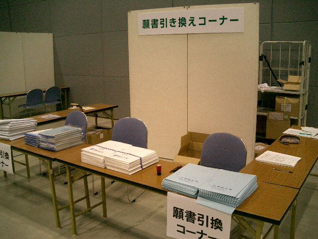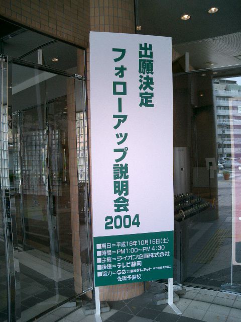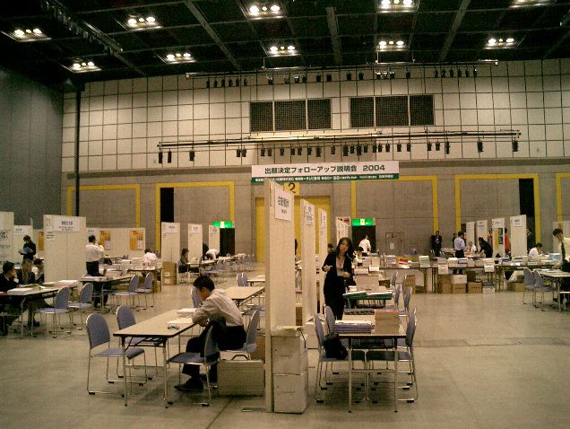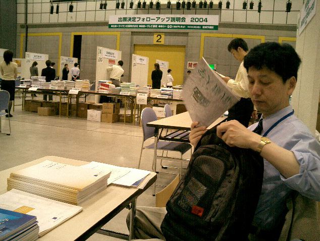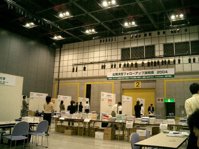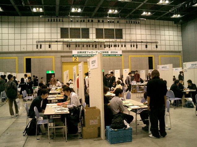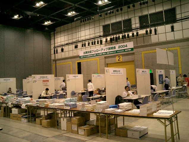 2004年10月16日、アクトシティのイベントホールで、受験生に対する合同大学説明会が ありました。最終回ということで閑散としていました(^_^;)。
