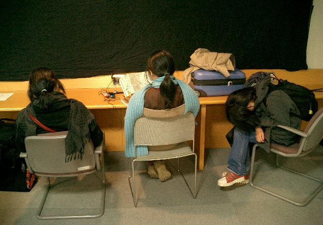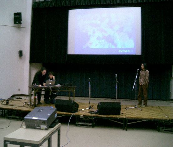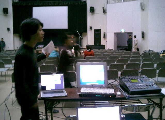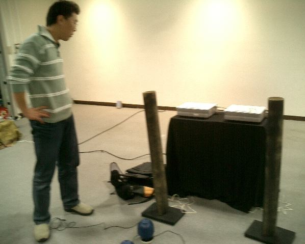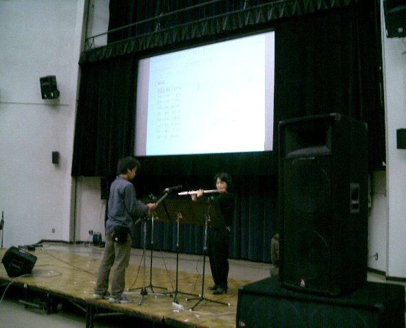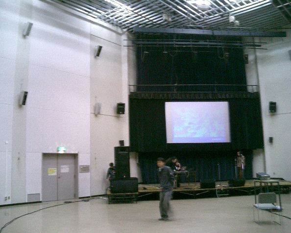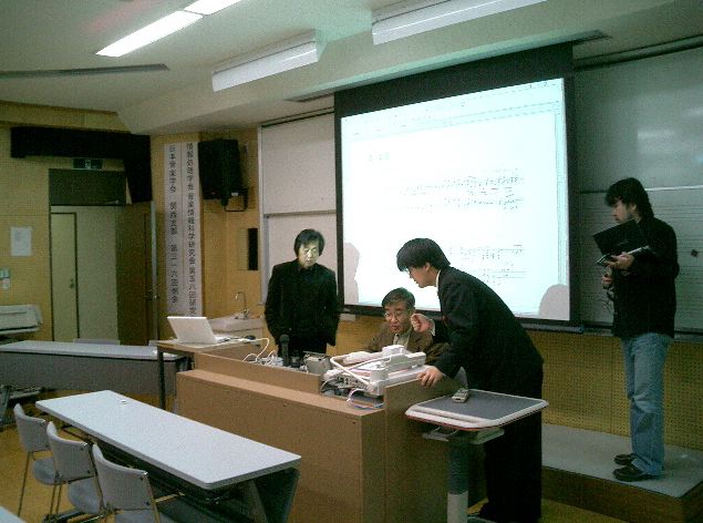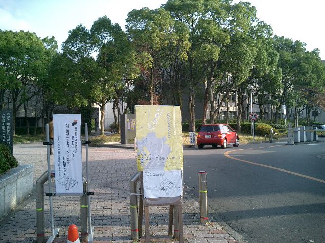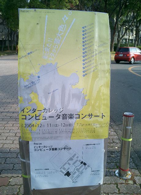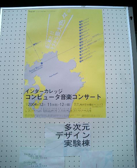 音楽情報科学研究会・インターカレッジ2004のために。 博多の九州大学大橋キャンパス(元・九州芸工大)に行きました。 技術造形学科の3回生3人と芸術文化学科の4回生1人と一緒でした。