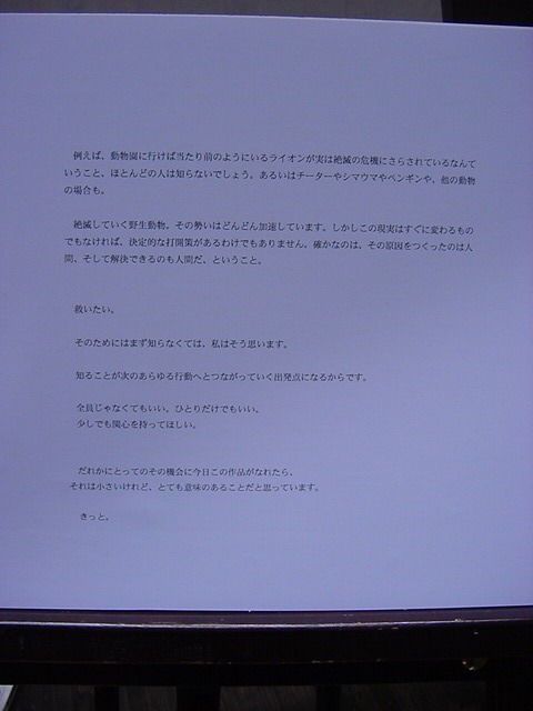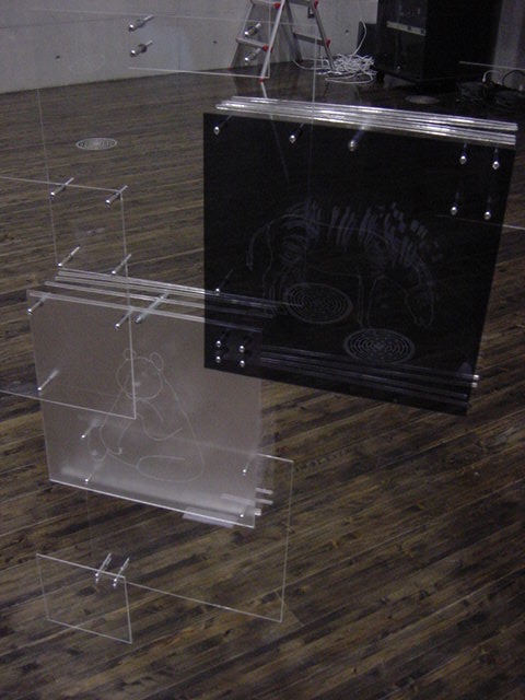卒展2005・二村/高木 作品 2005年3月 長嶋洋一 卒展で展示している 技術造形学科の学生作品のうち、暗くて記録として残りにくい2作品について、 展示前に照明をつけて撮影しました。 二村友佳子 作品 高木法子 作品