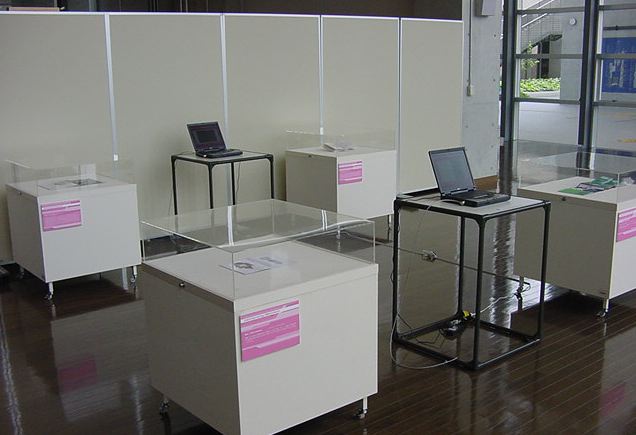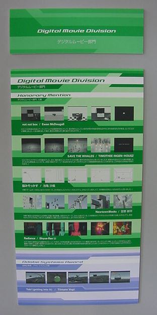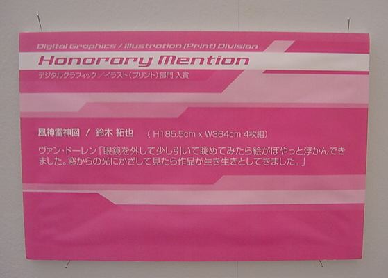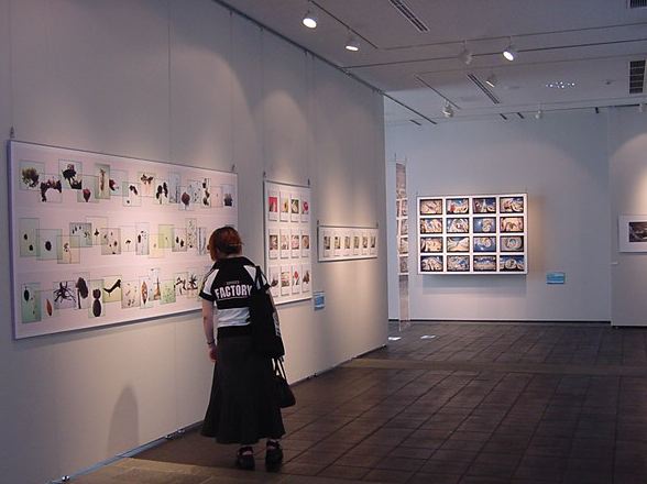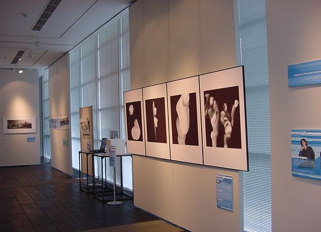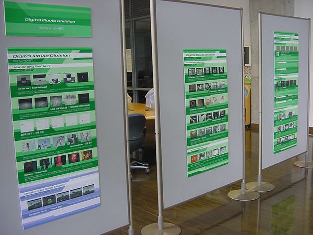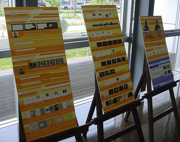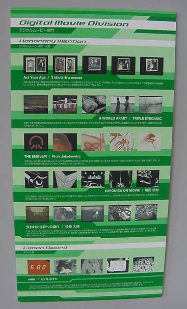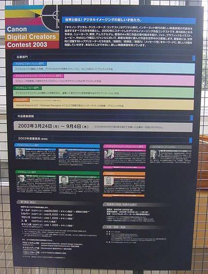 キャノン展 in SUAC 2003年6月 長嶋洋一 「キャノン・デジタルクリエイターズ・コンテスト2002」入賞作品展が、いよいよSUACで開催されました。以下はその初日、オープンの時の模様です。さすがに優秀作品展として水準も高く、圧巻です。多くの学生に刺激となれば嬉しいと思います。