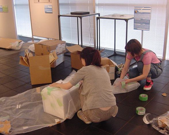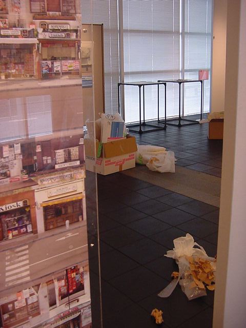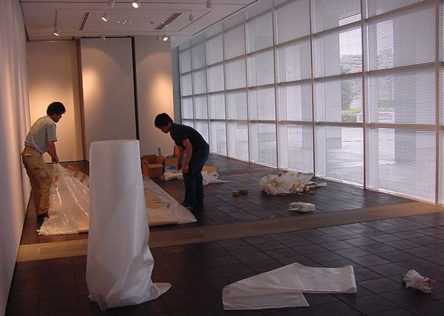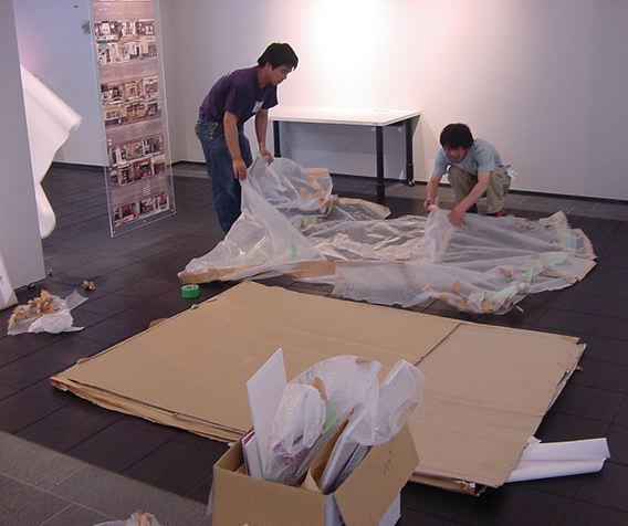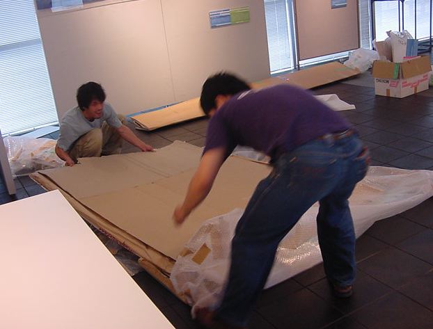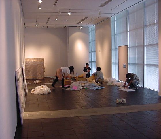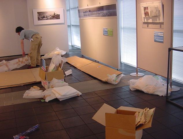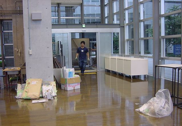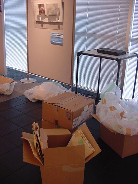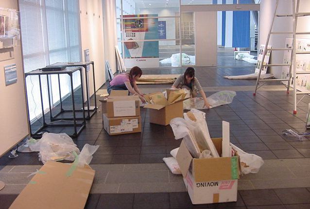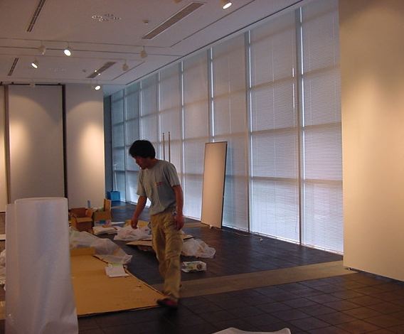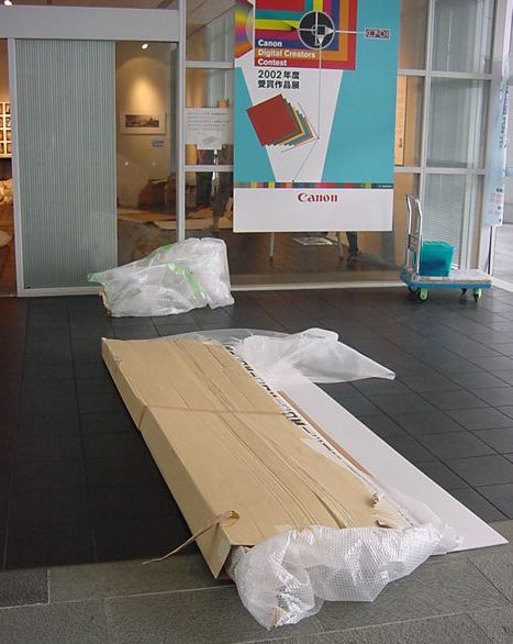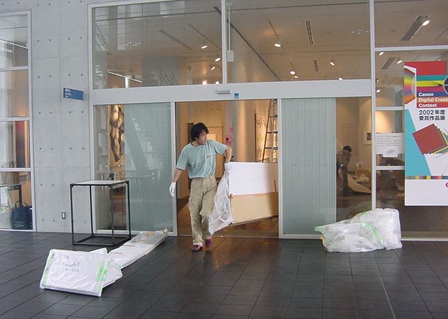 キャノン展 撤収日 2003年7月 長嶋洋一 「キャノン・デジタルクリエイターズ・コンテスト2002」入賞作品展 の最終日7/6は15時で展示終了し、そこから撤収となりました。 設置は11時間ほどでしたが、撤収は3時間ほどでした。 スタッフの皆さん、御苦労さまでした。