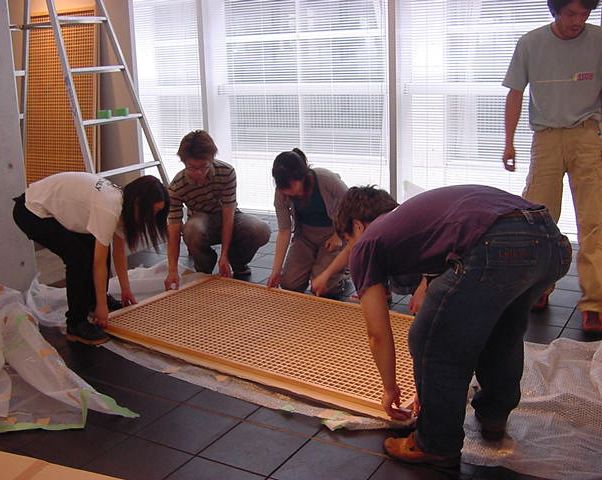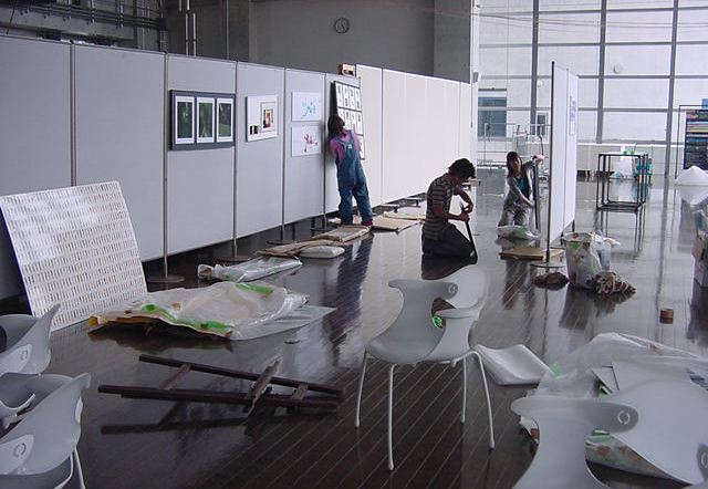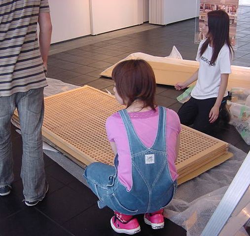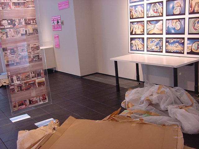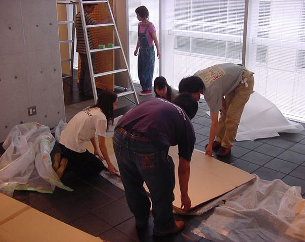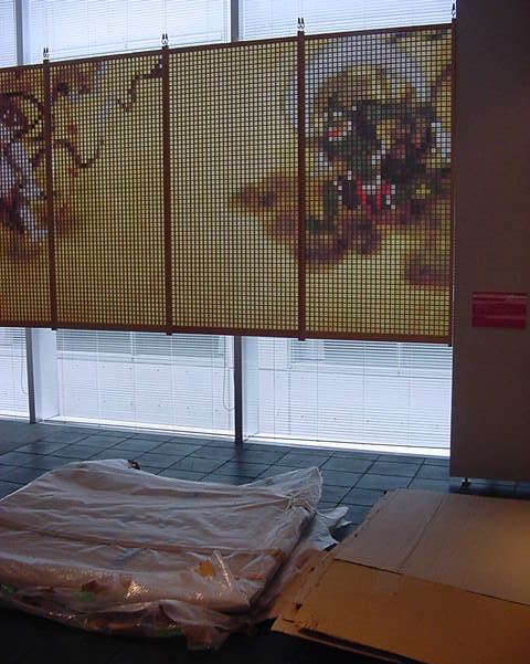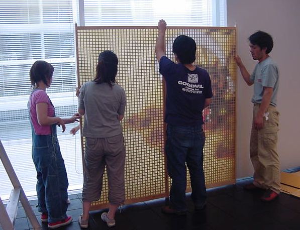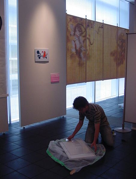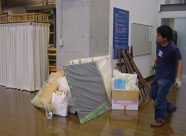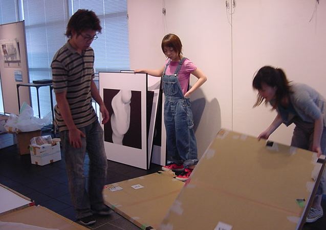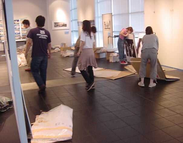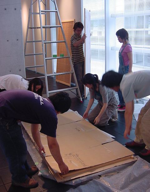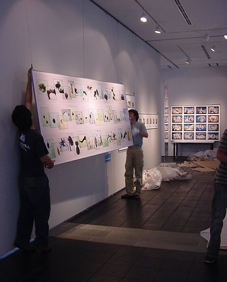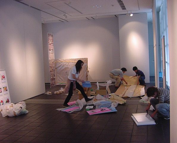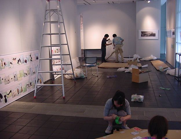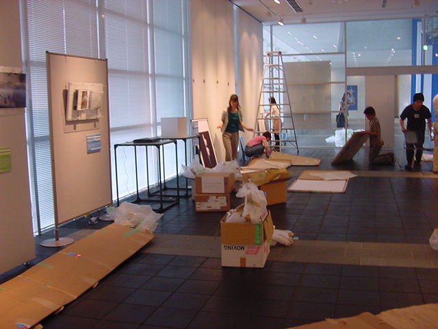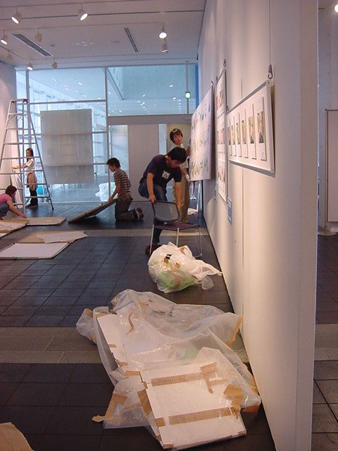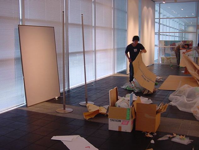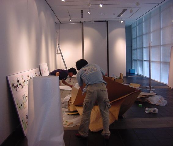 「キャノン・デジタルクリエイターズ・コンテスト2002」入賞作品展 の最終日7/6は15時で展示終了し、そこから撤収となりました。 設置は11時間ほどでしたが、撤収は3時間ほどでした。 スタッフの皆さん、御苦労さまでした。