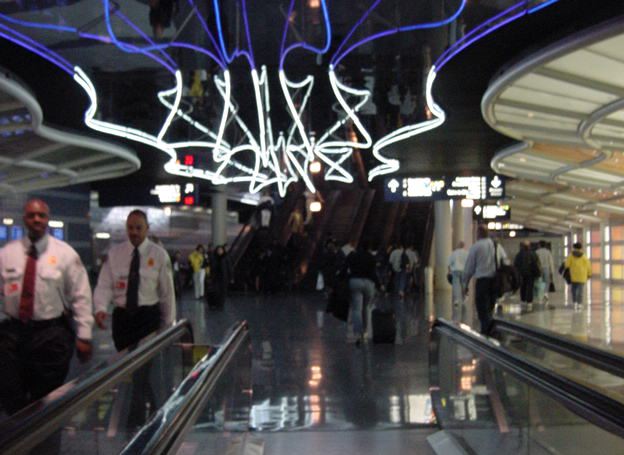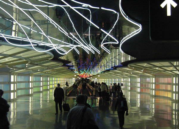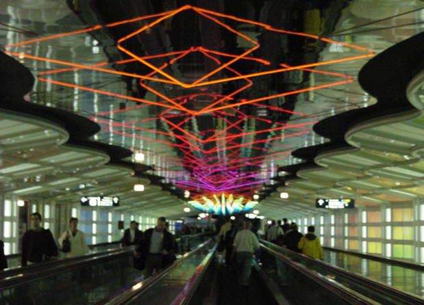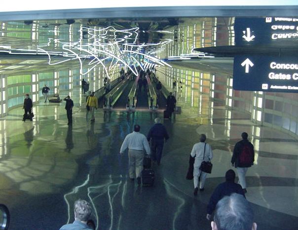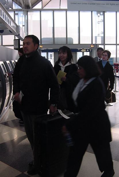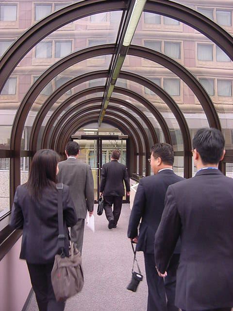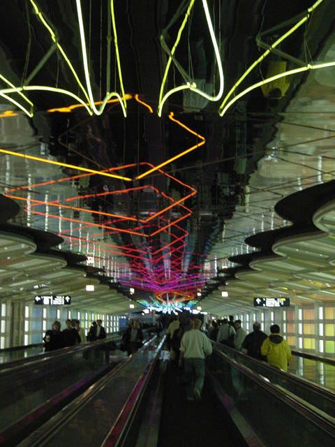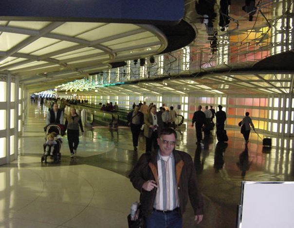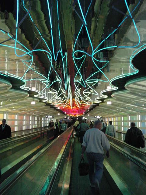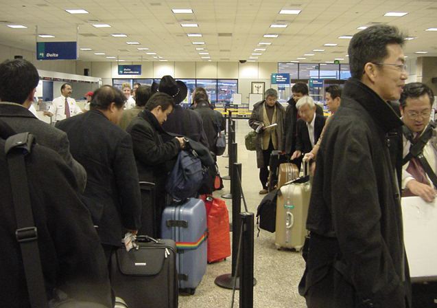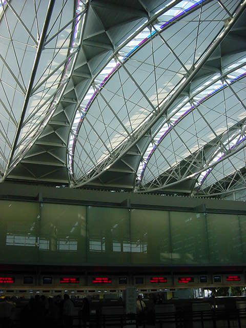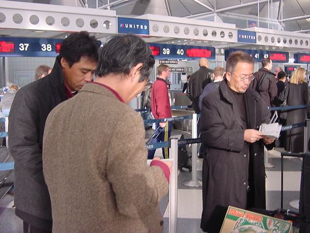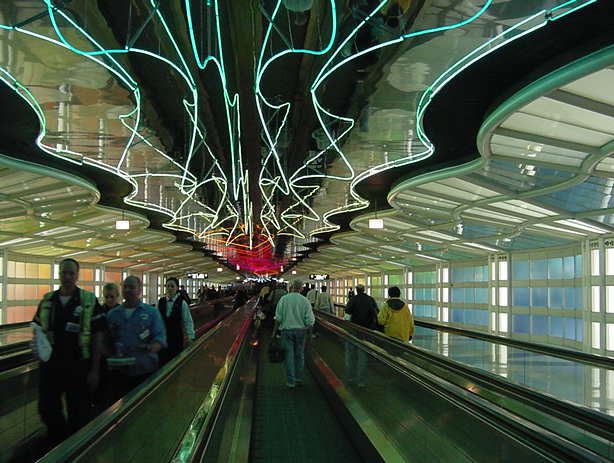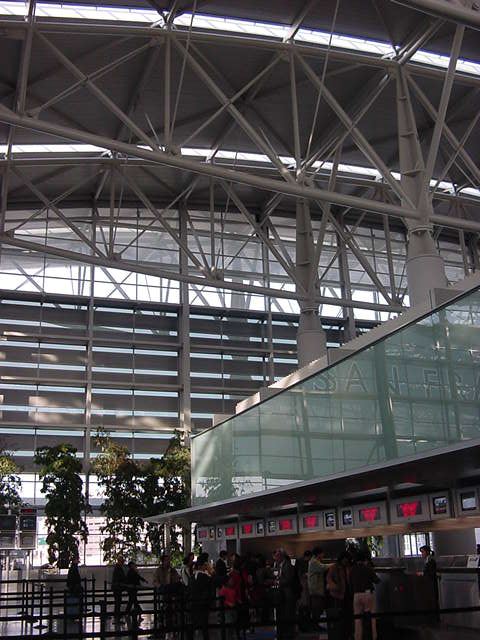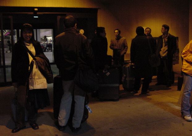 2002年10月29日(火)この初日はとても長い長い一日になりました。 まずは、いつもの定番で恐縮ですが(^_^;)、浜松駅からスタートして 新幹線、東京駅からNEXで成田空港までの移動です。★ ★ ★ ★ ★ ★ ★ ★ ★ ★ ★ ★ ★ ★ ★ ★ ★ ★ ★ ★ ★ ★ ★ ★ ★ ★ ★ ★ ★ 成田空港に着きました。いつもの素通り風景と違って、今回はなんと、 お呼ばれ出張ということで、 成田-サンフランシスコがANAのビジネスクラスでした。そこで 初めてANAの空港ラウンジに入ることになり、嬉しくて写真も 撮りまくりました。(^_^;) ★ ★ ★ ★ ★ ★ ★ ★ ★ ★ ★ ★ ★ ★ ★ ★ ★ ★ ★ ★ ★ ★ ★ ★ ★ ★ ★ さて、これがANAのラウンジです。都内までの電話もタダなら、 ビールでもワインでも全て無料で飲み放題。シカゴでのセミナー資料を 作りながらのおいしいビールに、フライト前からいい気分になって しまいました。(^_^;) ★ ★ ★ ★ ★ ★ ★ ★ ★ ★ ★ ★ ★ ★ ★ ★ ★ ★ ★ ★ ★ ★ ようやく、サンフランシスコへのNH008便のフライト時間となり、 並んでいるエコノミーの行列を横目に軽くパスして乗り込みました。 ビジネスといってもファーストクラスではないので、椅子が大きい ぐらいしか違わないのですが、なかなか豪華な食事とか、 一人ずつのLCDモニタ(映画でもゲームでもオンデマンド)とか、 まぁ嬉しくて写真を撮るようなことは色々とありました。 ★ ★ ★ ★ ★ ★ ★ ★ ★ ★ ★ ★ ★ ★ ★ ★ ★ ★ ★ ★ ★ ★ ★ ★ ★ ★ ★ ★ ★ ★ ★ ★ ★ ★ ★ ★ 約9時間のフライトでサンフランシスコに到着してみると、日付変更線を 越えたので時計が戻り、現地は同じ10/29の午前に遡っていました。 到着して入国審査、バゲッジをUAに渡してドメスティックに ゲートイン・・・、と書くと簡単そうですが、以前には経験したことのない 厳しいセキュリティチェックの連続でした。さすがに現場で写真を 撮れないので残念なのですが、通常のセキュリティチェックを済ませて ゲートインしているにもかかわらず、搭乗の際の再チェックで、外国人が 個人で移動しているためか、そのまま搭乗できません。靴まで脱いで、 全身をみっちり検査され、荷物も何度も開けられます。これを結局、 米国内の移動のたびにやらされました。(^_^;) 以下は「シカゴへの道」で、 3時間以上のフライトのあとにシカゴに着いてみると、今度はアメリカ 国内の時差によって2時間を加えて、同じ10/29の17時を過ぎていました。 日本と違って時差を設定して調整するので、夕方6時というと真っ暗に なりました。 全米でも屈指の巨大空港シカゴはのターミナルを移動する地下道は、 光と音で楽しませてくれる立派なインスタレーション作品です。 ICMC1998のミシガン州立大学もシカゴからだったので、懐かしい空港です。 空港にはエコパル社のコバチさんが迎えに来てくれました。 ★ ★ ★ ★ ★ ★ ★ ★ ★ ★ ★ ★ ★ ★ ★ ★ ★ ★ ★ ★ ★ ★ ★ ★ ★ ★ ★ ★ ★ ★ ★ ★ ★ ★ ★ ★ ★ ★ ★ ★ ★ ★ ★ ★ ★ ★ ★ ★ ★ ★ ★ ★ ★ ★ ★ ★ ★ ★ ★ ★ ★ ★ ★ ★ ★ ★ ★ ★ ★ ★ ★ シカゴ・オヘア空港からごく至近のコンベンションセンターの隣の ホテルが、シカゴ3泊の基地となりました。大通りを挟んでセンターと 並んでいるだけでなく、空中通路によって寒くなく行き来が出来る、と いう有難いホテルです。初日は集合したメンバーの顔合せレセプションが ありました。7月末に単行本のイラストを研究室で川崎さんが描いている時に 来てくれた山本社長、5月に来日した時に会っていたEP社のテッド社長 などと再会。そして、この本でも紹介し、会いたかった会いたかった Price教授と遂に会えました(^_^)。この本は関係者には好評らしいの ですが、サインを求められてちょっと困りました。