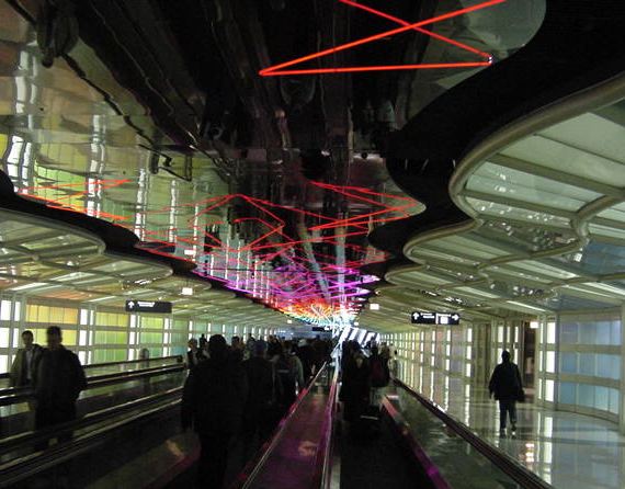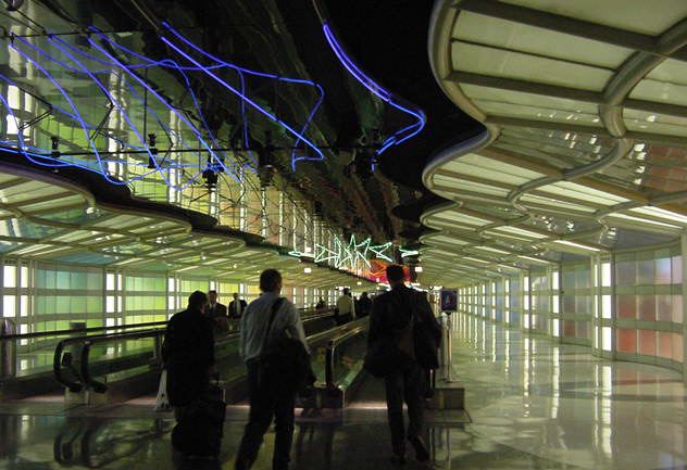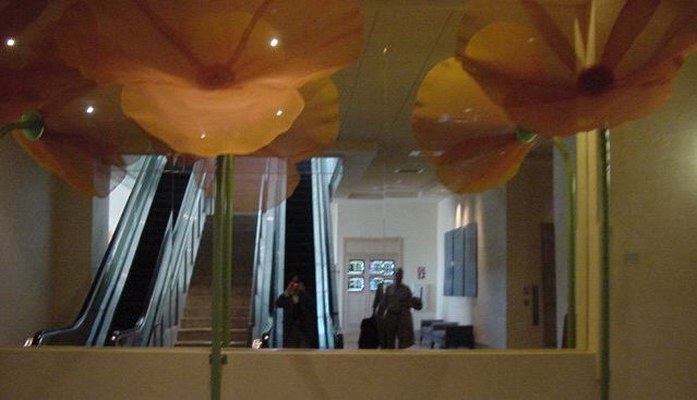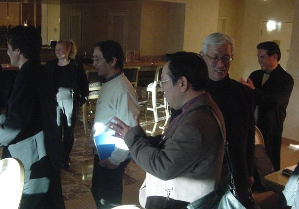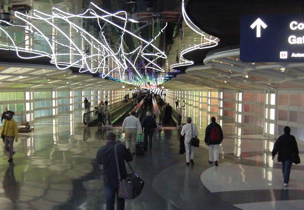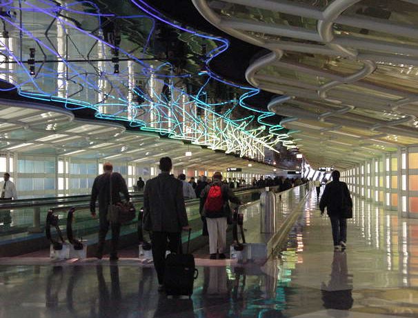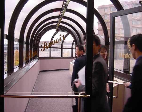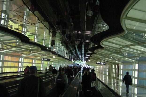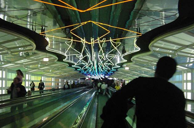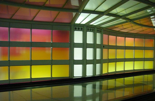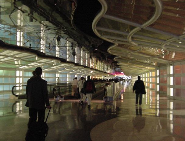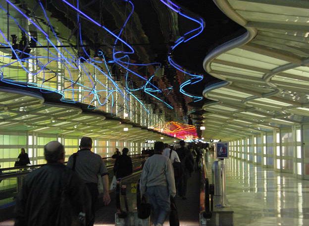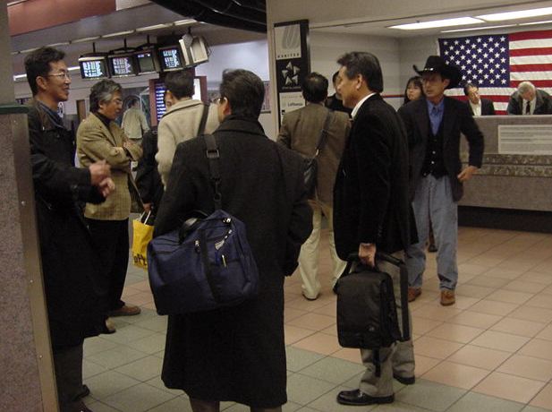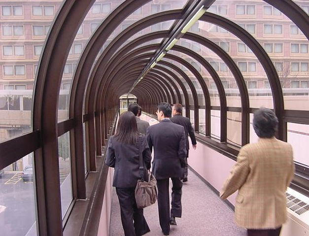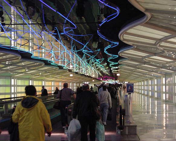2002年10月29日(火)この初日はとても長い長い一日になりました。 まずは、いつもの定番で恐縮ですが(^_^;)、浜松駅からスタートして 新幹線、東京駅からNEXで成田空港までの移動です。★ ★ ★ ★ ★ ★ ★ ★ ★ ★ ★ ★ ★ ★ ★ ★ ★ ★ ★ ★ ★ ★ ★ ★ ★ ★ ★ ★ ★ 成田空港に着きました。いつもの素通り風景と違って、今回はなんと、 お呼ばれ出張ということで、 成田-サンフランシスコがANAのビジネスクラスでした。そこで 初めてANAの空港ラウンジに入ることになり、嬉しくて写真も 撮りまくりました。(^_^;) ★ ★ ★ ★ ★ ★ ★ ★ ★ ★ ★ ★ ★ ★ ★ ★ ★ ★ ★ ★ ★ ★ ★ ★ ★ ★ ★ さて、これがANAのラウンジです。都内までの電話もタダなら、 ビールでもワインでも全て無料で飲み放題。シカゴでのセミナー資料を 作りながらのおいしいビールに、フライト前からいい気分になって しまいました。(^_^;) ★ ★ ★ ★ ★ ★ ★ ★ ★ ★ ★ ★ ★ ★ ★ ★ ★ ★ ★ ★ ★ ★ ようやく、サンフランシスコへのNH008便のフライト時間となり、 並んでいるエコノミーの行列を横目に軽くパスして乗り込みました。 ビジネスといってもファーストクラスではないので、椅子が大きい ぐらいしか違わないのですが、なかなか豪華な食事とか、 一人ずつのLCDモニタ(映画でもゲームでもオンデマンド)とか、 まぁ嬉しくて写真を撮るようなことは色々とありました。 ★ ★ ★ ★ ★ ★ ★ ★ ★ ★ ★ ★ ★ ★ ★ ★ ★ ★ ★ ★ ★ ★ ★ ★ ★ ★ ★ ★ ★ ★ ★ ★ ★ ★ ★ ★ 約9時間のフライトでサンフランシスコに到着してみると、日付変更線を 越えたので時計が戻り、現地は同じ10/29の午前に遡っていました。 到着して入国審査、バゲッジをUAに渡してドメスティックに ゲートイン・・・、と書くと簡単そうですが、以前には経験したことのない 厳しいセキュリティチェックの連続でした。さすがに現場で写真を 撮れないので残念なのですが、通常のセキュリティチェックを済ませて ゲートインしているにもかかわらず、搭乗の際の再チェックで、外国人が 個人で移動しているためか、そのまま搭乗できません。靴まで脱いで、 全身をみっちり検査され、荷物も何度も開けられます。これを結局、 米国内の移動のたびにやらされました。(^_^;) 以下は「シカゴへの道」で、 3時間以上のフライトのあとにシカゴに着いてみると、今度はアメリカ 国内の時差によって2時間を加えて、同じ10/29の17時を過ぎていました。 日本と違って時差を設定して調整するので、夕方6時というと真っ暗に なりました。 全米でも屈指の巨大空港シカゴはのターミナルを移動する地下道は、 光と音で楽しませてくれる立派なインスタレーション作品です。 ICMC1998のミシガン州立大学もシカゴからだったので、懐かしい空港です。 空港にはエコパル社のコバチさんが迎えに来てくれました。 ★ ★ ★ ★ ★ ★ ★ ★ ★ ★ ★ ★ ★ ★ ★ ★ ★ ★ ★ ★ ★ ★ ★ ★ ★ ★ ★ ★ ★ ★ ★ ★ ★ ★ ★ ★ ★ ★ ★ ★ ★ ★ ★ ★ ★ ★ ★ ★ ★ ★ ★ ★ ★ ★ ★ ★ ★ ★ ★ ★ ★ ★ ★ ★ ★ ★ ★ ★ ★ ★ ★ シカゴ・オヘア空港からごく至近のコンベンションセンターの隣の ホテルが、シカゴ3泊の基地となりました。大通りを挟んでセンターと 並んでいるだけでなく、空中通路によって寒くなく行き来が出来る、と いう有難いホテルです。初日は集合したメンバーの顔合せレセプションが ありました。7月末に単行本のイラストを研究室で川崎さんが描いている時に 来てくれた山本社長、5月に来日した時に会っていたEP社のテッド社長 などと再会。そして、この本でも紹介し、会いたかった会いたかった Price教授と遂に会えました(^_^)。この本は関係者には好評らしいの ですが、サインを求められてちょっと困りました。