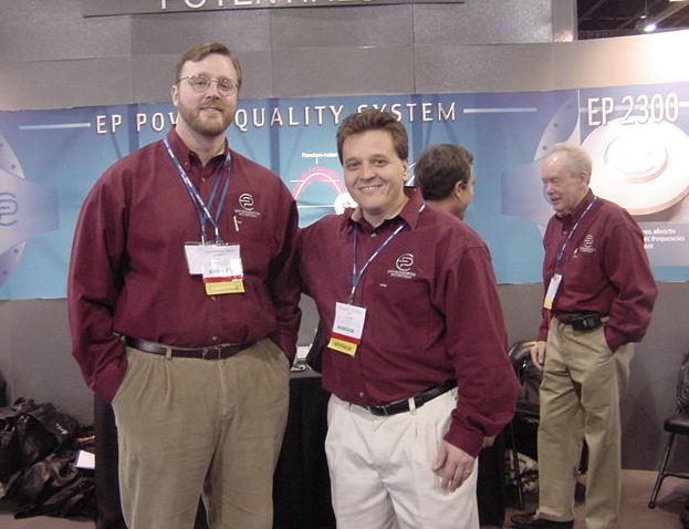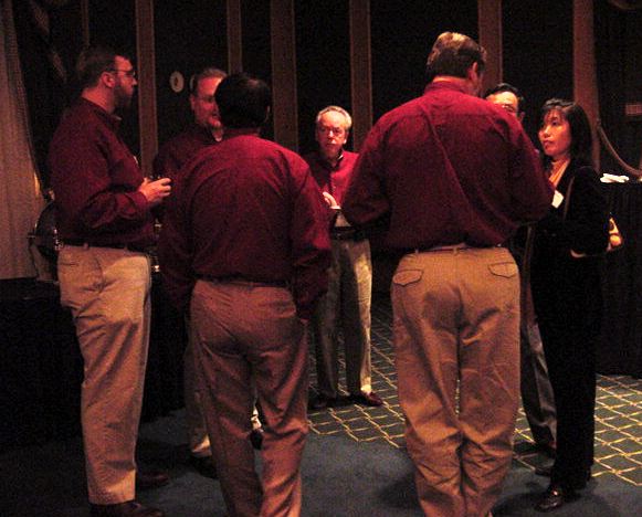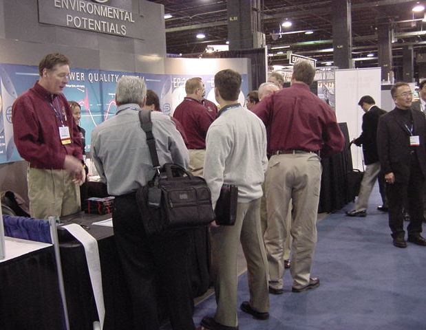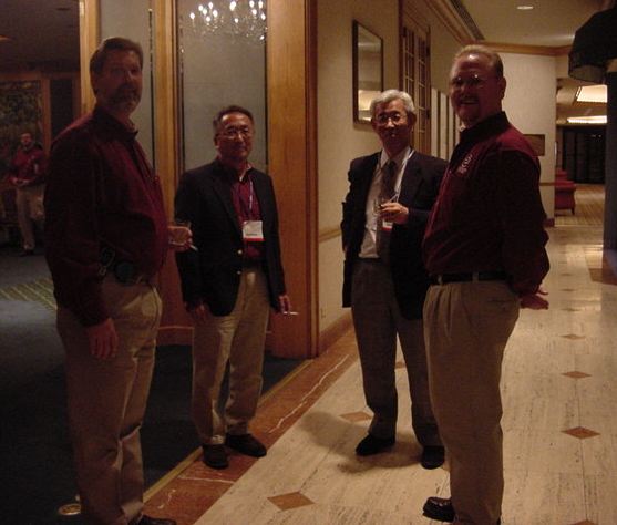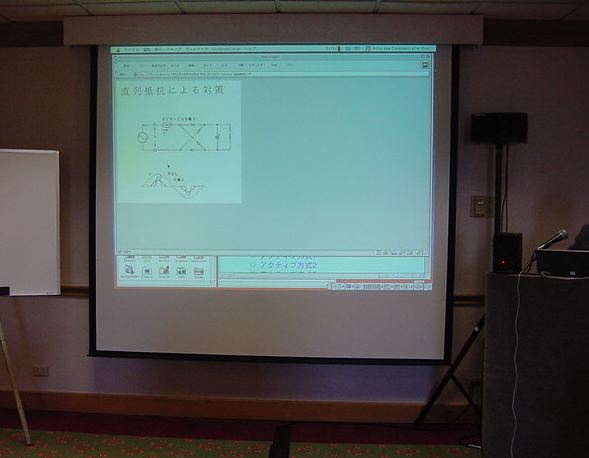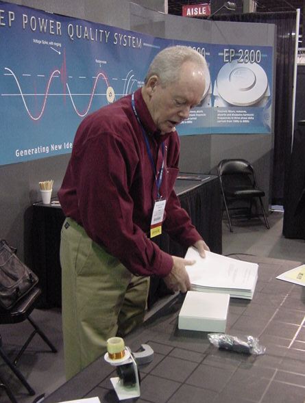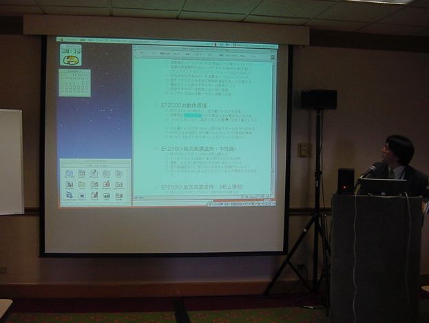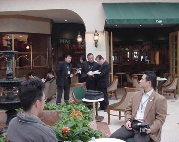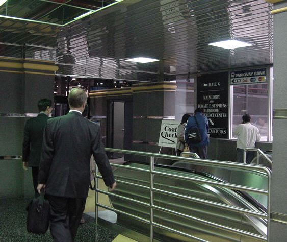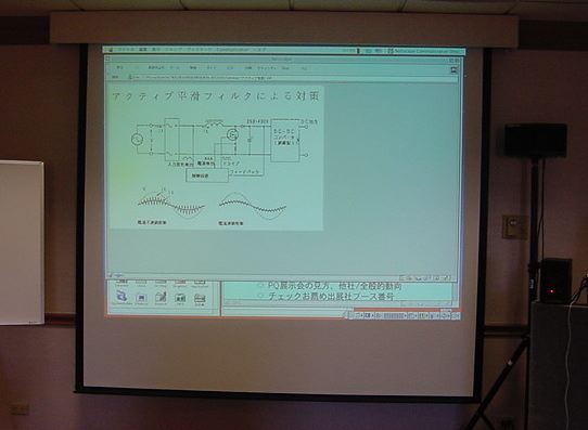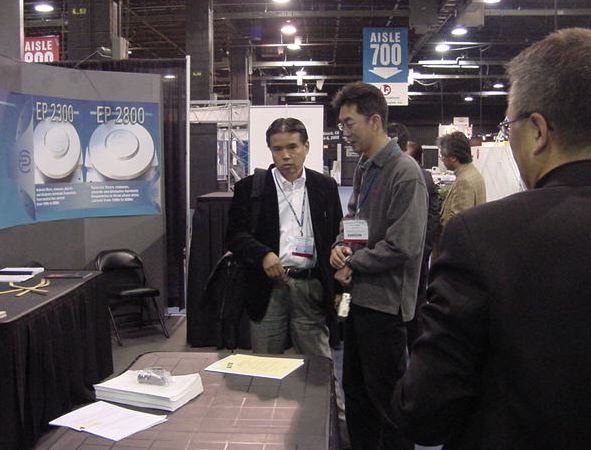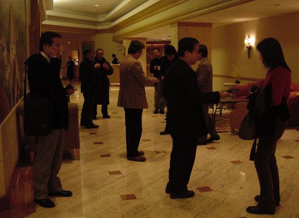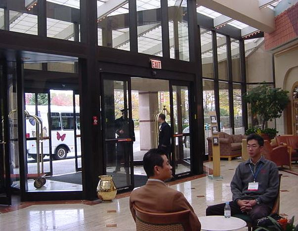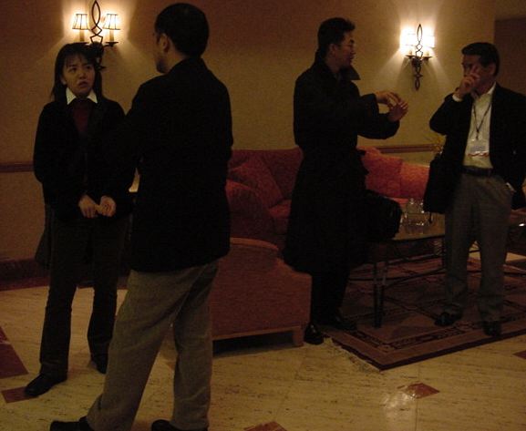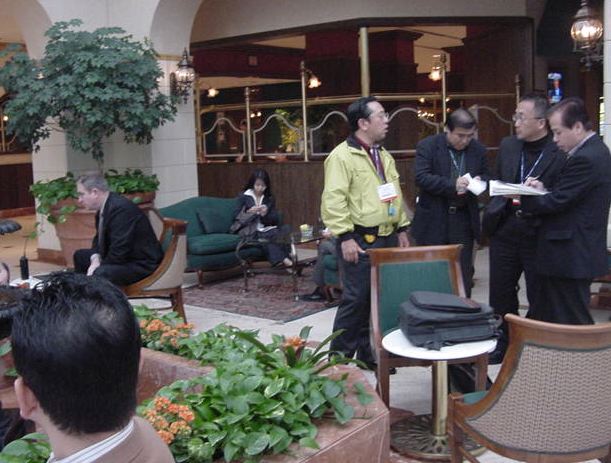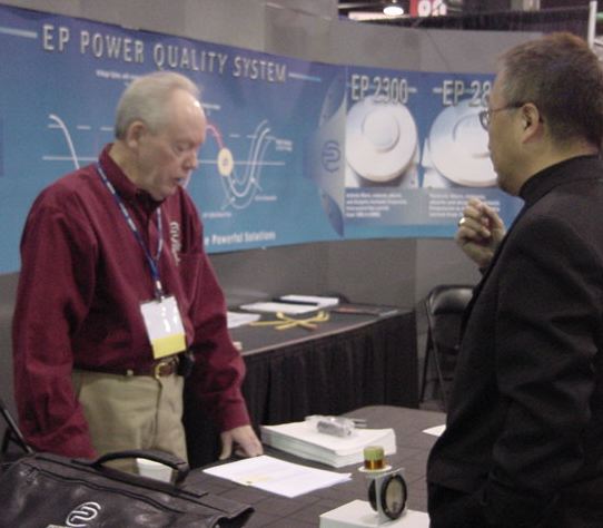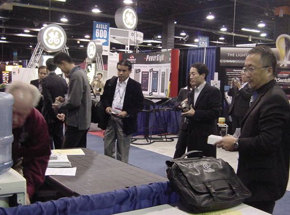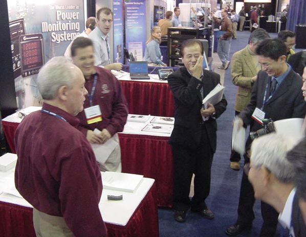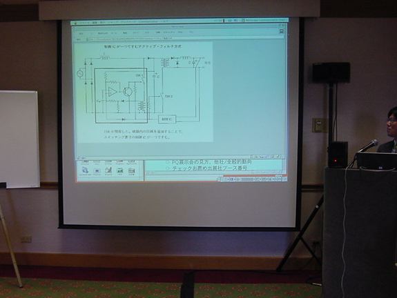 2002年10月30日(水)2日目の10/30はいよいよシカゴでの実質的な初日ということで、 まずは3泊滞在したホテルの自室の様子からスタートです。なかなかに豪華でした。 事前にプロバイダで設定していた海外ローミングサービスも無事に 機能していて、ホテルから近距離電話によって地元のアクセスポイントに ログインして、メイルのチェックもYAHOOのニュースも見ることが できました。セミナー資料の制作などのお仕事もしたので、朝食は ルームサービスをとってエコパル社に負担してもらいました。 朝起きてから出かける時なので、ちらかっているのは目をつぶって下さい。(^_^;)★ ★ ★ ★ ★ ★ ★ ★ ★ ★ ★ ★ ★ ★ ★ ★ ★ ★ ★ ★ 集合時間になり、ロビーに下りて、まずはこれも定番のホテルの 風景いろいろです。個々にはまだ名前と顔が一致していない人もいるので 紹介省略ですが、メンバーもぼちぼち集合して、隣にあるコンベンションセンターで 開催されている、 Power Systems Worldという展示会に向かいました。 この展示会は、Power Technologyカンファレンス/エキシビジョン、つまり 電力技術に関するアメリカ最大の展示会がメインですが、我々の本命は 同時開催されている Power Qualityカンファレンス/エキシビジョン の方です。つまり、この併催の電力品質(Power Quality)の展示会に、 ベンチャーであるEP社が初めて出展した、というところに集まったのです。 これがそのチラシ (関係者用で入場料無料)の表、 これが裏です。 ★ ★ ★ ★ ★ ★ ★ ★ ★ ★ ★ ★ ★ ★ ★ ★ ★ ★ ★ ★ ★ ★ ★ ★ ★ ★ ★ ★ ★ ★ ★ ★ ★ ★ ★ ★ ★ ★ この展示会は一般来場者は30ドルが必要ですが、我々は出展者である EP社のExbitorネームタグによりフリーパスでした。3日間の展示会の 2日目の朝イチというところで、ぼちぼち始まるという雰囲気が分かる でしょうか。EP社のブースにいきなり日本人ばかりが20人ほど集結して いる風景はとても異様で(^_^;)、なかなか目立っていました。 基本的には、幕張メッセや東京ビッグサイト、古いところでは晴海の 国際見本市会場で開催されるエレショーとかPCワールドなどの展示会と 同様のものですが、テーマが「電力」と限定されているので、基本的には 技術的な関係者、あと関連ビジネスの人たちが全米からシカゴに やってくる、というものです。 ★ ★ ★ ★ ★ ★ ★ ★ ★ ★ ★ ★ ★ ★ ★ ★ ★ ★ ★ ★ ★ ★ ★ ★ ★ ★ ★ ★ ★ ★ ★ ★ ★ ★ ★ ★ この日の午前には、ポスターのブースで、Price教授自身による ポスタープレゼンテーションがある、ということで、関係者はそこから 全員集合なのでした。僕はもしかしたら予定していたセミナーがこの日に あるのかも、とパソコンまで背負っていたのですが、セミナーの予定は 変更なく翌日である、と判明したので、いったんホテルに戻って パソコンを置いてきました。展示会会場とつながっているホテルだから 出来る芸当です(^_^)。 再びEP社のブースに戻ってみると、既に準備していたPrice教授だけでなく、 テッド社長以下、EP社のスタッフも揃ってきました。 あまりに多数の関係者が通路を占めているので、最初にEP社のお向かいの ブースの会社の説明を全員で拝聴しましたが、実はここもバッテリ無しで わずかな瞬停をカバーする機器、という面白い出展をしていました。 わかる人はこの写真だけでも十分に分かるでしょう、 ★ ★ ★ ★ ★ ★ ★ ★ ★ ★ ★ ★ ★ ★ ★ ★ ★ ★ ★ ★ ★ ★ ★ ★ ★ ★ さて、いよいよPrice教授のポスタープレゼンです。配付された資料と ともに、その場に居合わせた関係者がこの写真を見れば分かりますが、 そうでなければどうでしょうか(^_^;)。 電気工学・電子工学の基本的なお話だけと言えばそうなのですが、 実はここに単行本にも書いた「EP2000の秘密」のヒントがあった ような気もします。通訳はエコパル社の山本社長です。 ★ ★ ★ ★ ★ ★ ★ ★ ★ ★ ★ ★ ★ ★ ★ ★ ★ ★ ★ ★ ★ ★ ★ ★ ★ ★ ★ ★ ・・・ということで、なんともいえない謎をその場に残しつつ(^_^;)、 Price教授のポスタープレゼンが終了しました。ここからは各自が 自由に展示会を見学する、ということになり、デジカメ三昧で 多数の情報収集に乗り出しました。この写真の中からは、翌日の セミナーでもさっそく材料として活用しました。これまた、見る人が 見れば分かるいろいろもろもろ(^_^;)が満載です。 現場にいた人は分かるかと思いますが、ブースを全て、番号順に網羅して みました。ただし、自分の興味に応じて重みがだいぶ片寄っていますので 注意して下さい。 ★ ★ ★ ★ ★ ★ ★ ★ ★ ★ ★ ★ ★ ★ ★ ★ ★ ★ ★ ★ ★ ★ ★ ★ ★ ★ ★ ★ ★ ★ ★ ★ ★ ★ ★ ★ ★ ★ ★ ★ ★ ★ ★ ★ ★ ★ ★ ★ ★ ★ ★ ★ ★ ★ ★ ★ ★ ★ ★ ★ ★ ★ ★ ★ ★ ★ ★ ★ ★ ★ ★ ★ ★ ★ ★ ★ ★ ★ ★ ★ ★ ★ ★ ★ ★ ★ ★ ★ ★ ★ ★ ★ ★ ★ ★ ★ ★ ★ ★ ★ ★ ★ ★ ★ ★ ★ ★ ★ ★ ★ 