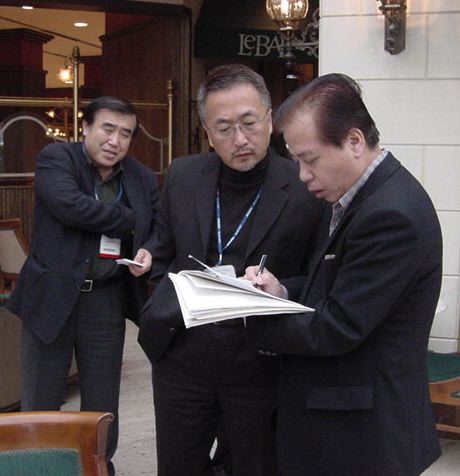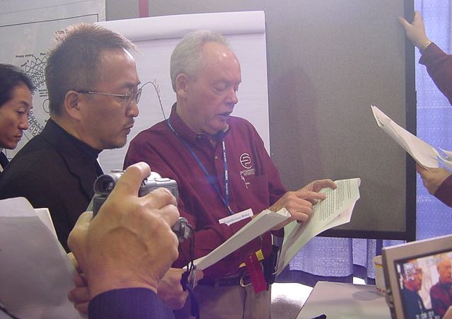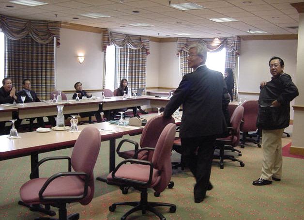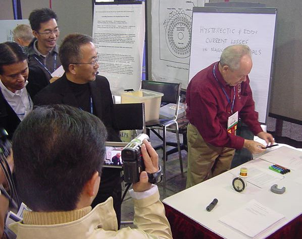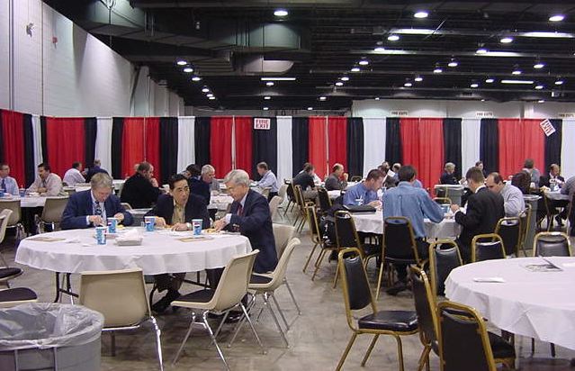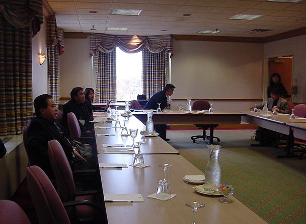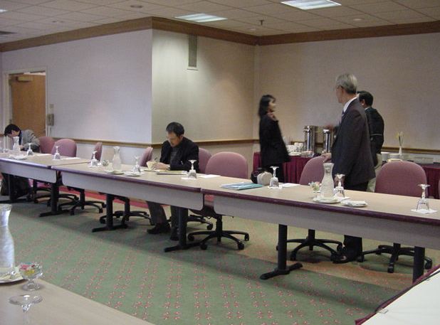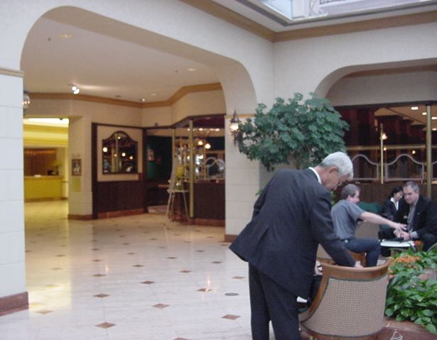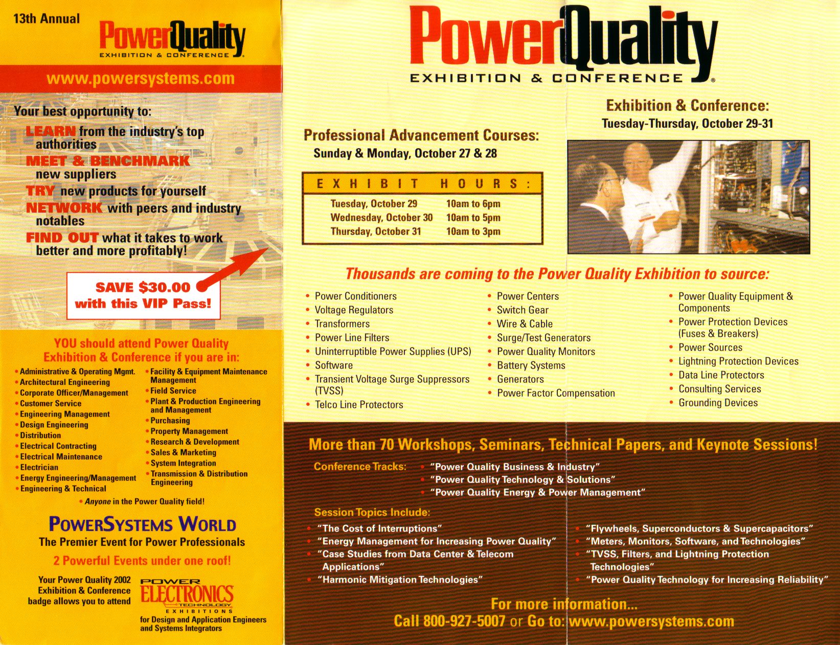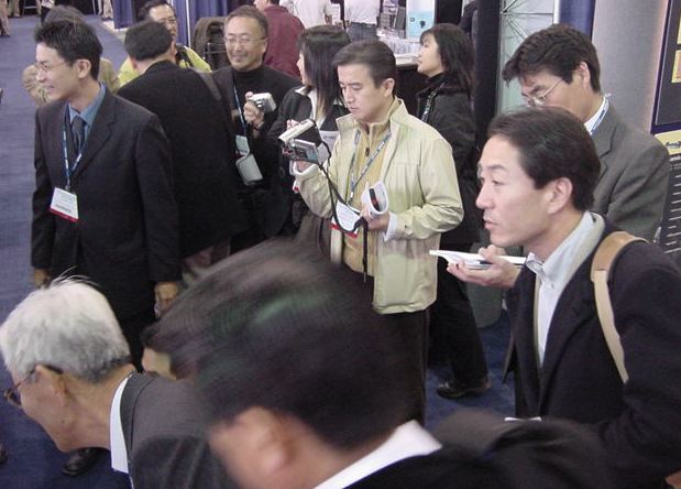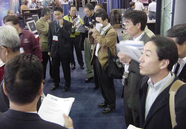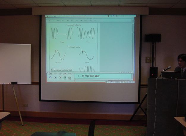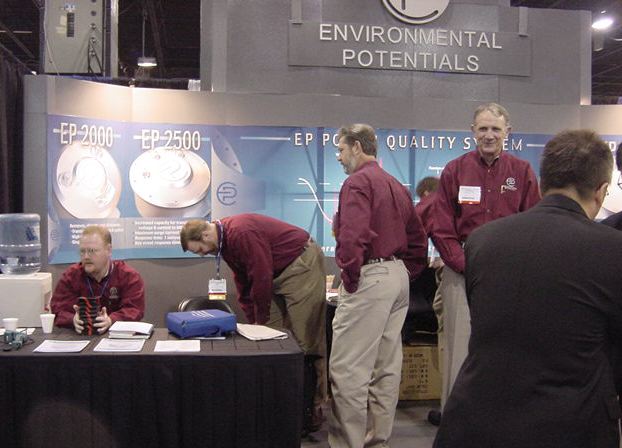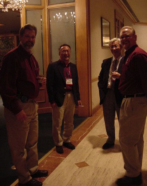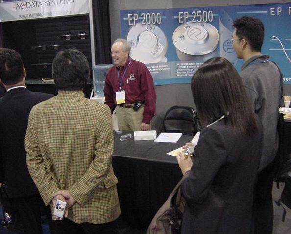 2002年10月30日(水)2日目の10/30はいよいよシカゴでの実質的な初日ということで、 まずは3泊滞在したホテルの自室の様子からスタートです。なかなかに豪華でした。 事前にプロバイダで設定していた海外ローミングサービスも無事に 機能していて、ホテルから近距離電話によって地元のアクセスポイントに ログインして、メイルのチェックもYAHOOのニュースも見ることが できました。セミナー資料の制作などのお仕事もしたので、朝食は ルームサービスをとってエコパル社に負担してもらいました。 朝起きてから出かける時なので、ちらかっているのは目をつぶって下さい。(^_^;)★ ★ ★ ★ ★ ★ ★ ★ ★ ★ ★ ★ ★ ★ ★ ★ ★ ★ ★ ★ 集合時間になり、ロビーに下りて、まずはこれも定番のホテルの 風景いろいろです。個々にはまだ名前と顔が一致していない人もいるので 紹介省略ですが、メンバーもぼちぼち集合して、隣にあるコンベンションセンターで 開催されている、 Power Systems Worldという展示会に向かいました。 この展示会は、Power Technologyカンファレンス/エキシビジョン、つまり 電力技術に関するアメリカ最大の展示会がメインですが、我々の本命は 同時開催されている Power Qualityカンファレンス/エキシビジョン の方です。つまり、この併催の電力品質(Power Quality)の展示会に、 ベンチャーであるEP社が初めて出展した、というところに集まったのです。 これがそのチラシ (関係者用で入場料無料)の表、 これが裏です。 ★ ★ ★ ★ ★ ★ ★ ★ ★ ★ ★ ★ ★ ★ ★ ★ ★ ★ ★ ★ ★ ★ ★ ★ ★ ★ ★ ★ ★ ★ ★ ★ ★ ★ ★ ★ ★ ★ この展示会は一般来場者は30ドルが必要ですが、我々は出展者である EP社のExbitorネームタグによりフリーパスでした。3日間の展示会の 2日目の朝イチというところで、ぼちぼち始まるという雰囲気が分かる でしょうか。EP社のブースにいきなり日本人ばかりが20人ほど集結して いる風景はとても異様で(^_^;)、なかなか目立っていました。 基本的には、幕張メッセや東京ビッグサイト、古いところでは晴海の 国際見本市会場で開催されるエレショーとかPCワールドなどの展示会と 同様のものですが、テーマが「電力」と限定されているので、基本的には 技術的な関係者、あと関連ビジネスの人たちが全米からシカゴに やってくる、というものです。 ★ ★ ★ ★ ★ ★ ★ ★ ★ ★ ★ ★ ★ ★ ★ ★ ★ ★ ★ ★ ★ ★ ★ ★ ★ ★ ★ ★ ★ ★ ★ ★ ★ ★ ★ ★ この日の午前には、ポスターのブースで、Price教授自身による ポスタープレゼンテーションがある、ということで、関係者はそこから 全員集合なのでした。僕はもしかしたら予定していたセミナーがこの日に あるのかも、とパソコンまで背負っていたのですが、セミナーの予定は 変更なく翌日である、と判明したので、いったんホテルに戻って パソコンを置いてきました。展示会会場とつながっているホテルだから 出来る芸当です(^_^)。 再びEP社のブースに戻ってみると、既に準備していたPrice教授だけでなく、 テッド社長以下、EP社のスタッフも揃ってきました。 あまりに多数の関係者が通路を占めているので、最初にEP社のお向かいの ブースの会社の説明を全員で拝聴しましたが、実はここもバッテリ無しで わずかな瞬停をカバーする機器、という面白い出展をしていました。 わかる人はこの写真だけでも十分に分かるでしょう、 ★ ★ ★ ★ ★ ★ ★ ★ ★ ★ ★ ★ ★ ★ ★ ★ ★ ★ ★ ★ ★ ★ ★ ★ ★ ★ さて、いよいよPrice教授のポスタープレゼンです。配付された資料と ともに、その場に居合わせた関係者がこの写真を見れば分かりますが、 そうでなければどうでしょうか(^_^;)。 電気工学・電子工学の基本的なお話だけと言えばそうなのですが、 実はここに単行本にも書いた「EP2000の秘密」のヒントがあった ような気もします。通訳はエコパル社の山本社長です。 ★ ★ ★ ★ ★ ★ ★ ★ ★ ★ ★ ★ ★ ★ ★ ★ ★ ★ ★ ★ ★ ★ ★ ★ ★ ★ ★ ★ ・・・ということで、なんともいえない謎をその場に残しつつ(^_^;)、 Price教授のポスタープレゼンが終了しました。ここからは各自が 自由に展示会を見学する、ということになり、デジカメ三昧で 多数の情報収集に乗り出しました。この写真の中からは、翌日の セミナーでもさっそく材料として活用しました。これまた、見る人が 見れば分かるいろいろもろもろ(^_^;)が満載です。 現場にいた人は分かるかと思いますが、ブースを全て、番号順に網羅して みました。ただし、自分の興味に応じて重みがだいぶ片寄っていますので 注意して下さい。 ★ ★ ★ ★ ★ ★ ★ ★ ★ ★ ★ ★ ★ ★ ★ ★ ★ ★ ★ ★ ★ ★ ★ ★ ★ ★ ★ ★ ★ ★ ★ ★ ★ ★ ★ ★ ★ ★ ★ ★ ★ ★ ★ ★ ★ ★ ★ ★ ★ ★ ★ ★ ★ ★ ★ ★ ★ ★ ★ ★ ★ ★ ★ ★ ★ ★ ★ ★ ★ ★ ★ ★ ★ ★ ★ ★ ★ ★ ★ ★ ★ ★ ★ ★ ★ ★ ★ ★ ★ ★ ★ ★ ★ ★ ★ ★ ★ ★ ★ ★ ★ ★ ★ ★ ★ ★ ★ ★ ★ ★ 