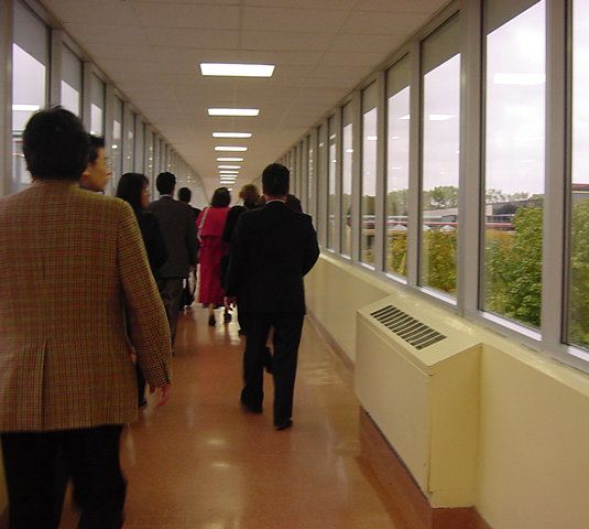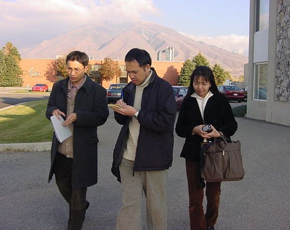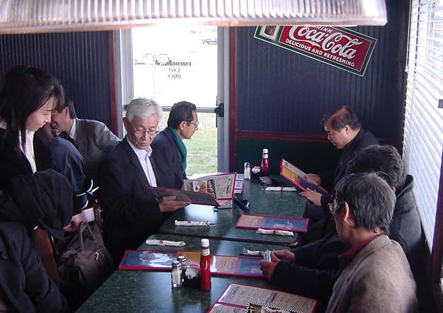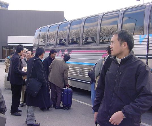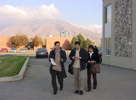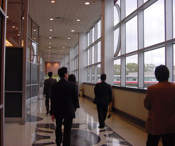 2002年11月1日(金)4日目はシカゴをあとにして、EP社の工場のあるソルトレークシティーに まずフライト、そしてさらに晩にはリノまで飛ぶ、という強行軍でした。 西に西にと飛ぶので、アメリカ国内の時間調整によって、時間が経過 しても時計を戻す、というのを繰り返したので、これまた長い一日と なりました。まずは、ホテルのロビー集合からシカゴ空港までの道です。★ ★ ★ ★ ★ ★ ★ ★ ★ ★ ★ ★ ★ ★ ★ ★ ★ ★ ★ ★ ★ ★ ★ ★ ★ ★ ★ ★ ★ ★ ★ ★ ★ ★ ★ ★ ★ ★ ★ ★ シカゴ空港での風景です。検査しているところではあまりカメラを 向けられないので写っていないのですが(^_^;)、ユナイテッド航空の セキュリティチェックもそこそこ厳しくなっていました。通常は スキャンを通過して預ければそれまで、というバゲッジも、別に 設けられた装置でさらにスキャンされ、日本人の半分ぐらいは 呼び止められていちいちスーツケースを開けられました。 そしてここでも、フライト間近となったゲートインのところで 日本人ばかりが呼び止められ、靴を脱がされてその中身までチェック、 さらに厳重な持ち物検査と身体検査を受けました。(^_^;) ★ ★ ★ ★ ★ ★ ★ ★ ★ ★ ★ ★ ★ ★ ★ ★ ★ ★ ★ ★ ★ ★ ★ ★ ★ ★ ★ ★ ★ ★ ★ ★ ★ ★ ★ ★ ★ ★ ★ ★ ★ ★ ★ ★ ★ ★ ★ ★ ★ ★ ★ ★ ★ ★ ★ ★ ★ ★ ★ ★ ★ ★ ★ ★ ★ ★ ★ ★ ★ ★ ★ ★ ★ 3時間ほどのフライトで、ソルトレークシティーに着きました。ここから、 バスで近郊にあるEP社の工場に向かうということで、昼食をはさんで そこまでの風景です。まぁ、田舎ですねぇ(^_^)。 同じ日のうちにリノまでフライトするのですが、乗り継ぎではないので いったんバゲッジを受け取ってバスに積んでの移動となりました。 ★ ★ ★ ★ ★ ★ ★ ★ ★ ★ ★ ★ ★ ★ ★ ★ ★ ★ ★ ★ ★ ★ ★ ★ ★ ★ ★ ★ ★ ★ ★ ★ ★ ★ ★ ★ ★ ★ このレストランからEP社の工場までは車でほんの数分のところ でしたが、なんと僕はPrice教授に気に入っていたただけたのか、 教授の運転するクルマの助手席に乗せてもらって、先に行きました。 アメリカでもオートマが多い最近ですが、Price教授はミッションの 車に乗っています。買い換えの時にわざわざミッションの車を捜した 僕と完全に意見が一致したのですが、オートマなんて子供のゴーカート みたいなものであり、シフトを動かさないと車を運転している気が しない、ということです。 そしていよいよ、EP社の工場にやってきました。(^_^)