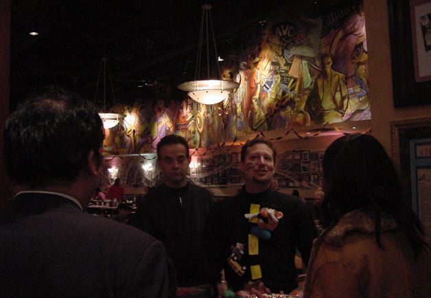 2002年10月31日(木)3日目の10/31はシカゴでの展示会は最終日ということで、 まず午前中には、依頼されていた「ノイズ対策セミナー」を 行いました。前日の会場で撮った写真もちゃんと部屋でプレゼン 資料に取り込みました。 これが、 以前から準備していて、成田空港のANAラウンジ、さらにホテルでの 作業により当日の朝に完成したプレゼンです。ただし、関係者に だけ見える別ページに置いたOHP資料が、ここでは省略されていて 出ませんが御容赦下さい。(^_^;) 以下は、コバチさんに撮っていただいたその模様です。★ ★ ★ ★ ★ ★ ★ ★ ★ ★ ★ ★ ★ ★ ★ ★ ★ ★ ★ ★ ★ ★ ★ ★ ★ ★ ★ ★ ★ ★ ★ ★ ★ ★ ★ ★ ★ ★ この午前中のセミナーと質疑応答をの中では、展示会でチェック すべき「お薦めブース番号」などもお知らせしました。そして 15時までで終わる展示会に全員が再び向かって、昼食を含めて 14時まで自由行動で最後の視察となりました。僕は前日に、分厚い このカタログを 手に、PQの方のエリアのブースを全て番号順に回って このように チェックを終えていたので、この日は会場内で簡単に食事をとって、 あとはPower Technologyの方のエリアをずらっと回りました。 こちらもPQと関係はあるのは当然で、ここでは書けませんが、 新しい発見も2つほどありました。(^_^) ★ ★ ★ ★ ★ ★ ★ ★ ★ ★ ★ ★ ★ ★ ★ ★ 午後には、14時からEP社のPrice教授を迎えての質疑応答セッション がありました。部屋から会場に向かう写真などがありますが、現場では Price教授と並んで座っての議論が忙しくて、写真は撮れませんでした。 「EPの秘密」に迫りましたが、完全には秘密が解けないまま、翌日に 我々をEP社工場で迎えるためにソルトレークシティーに向かうPrice教授は 退出してしまいました。(^_^;) 3日目の晩は、シカゴ市内に出かけての夕食ツアーとしていくつかの コースに分かれました。我々はマイクロバスでジャズのライブが聞ける レストラン「Be-Bop Cafe」に行きました。ちょうどハロウィンで街は 盛り上がり、「シカゴ子供ミュージアム」の中にあるこのレストランで、 食事と音楽とを堪能しました。昨日に続いて、今度は巨大なサラダを 食いきれずにギブアップしました。 帰りには湖岸から、寒いながらシカゴの夜景まで楽しみました。(^_^) ★ ★ ★ ★ ★ ★ ★ ★ ★ ★ ★ ★ ★ ★ ★ ★ ★ ★ ★ ★ ★ ★ ★ ★ ★ ★ ★ ★ ★ ★ ★ ★ ★ ★ ★ ★ ★ ★ ★ ★ ★ ★ ★ ★ ★ ★ ★ ★ ★ ★ ★ ★ ★ ★ ★ ★ ★ ★ ★ ★ ★ ★ ★ ★ ★ ★ ★ ★ ★ ★ ★ ★ ★ ★ ★ ★ ★ ★ ★ ★ ★ ★ ★ ★ ★ ★ ★ ★ ★ ★ ★ ★ ★ ★ ★ ★ ★ ★ ★ ★ ★ ★ ★ ★ ★ ★ ★ ★ ★ ★ ★ ★ ★ ★ ★ ★ ★ ★ ★ ★ ★ ★ ★ ★ ★ ★ ★ ★ ★ ★ ★ ★ ★ ★ ★ ★ ★ ★ ★ ★ ★ ★ ★ ★ ★ ★ ★ ★ ★ ★ ★ ★ ★ ★ ★ ★ ★ ★ ★ ★ ★ ★ ★ ★ ★ ★ ★ ★ ★