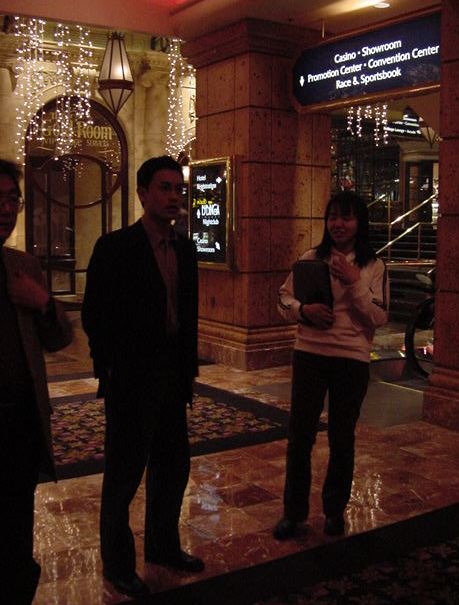 2002年11月2日(土)実質的にはこの渡米ツアーの最終日となった5日目の11/2は、 午前中は一部メンバーが近郊にゴルフに出かけるということで、 午前中から自由時間となりました。なんとも迷宮のような巨大 ビルを探検しながら通路を進むといつのまにか隣のカジノビル (カジノとショップとレストランとイベントステージ等)に 入っていて、さらに進むともう一つのカジノビル。要するに、 市内中心部のこの大きな3つのビルは全て2階の空中通路で つながっていました。20歳以下は現金を賭けられないのですが、 そのためのアーケードゲームコーナー(ゲーセン)ももちろん完備、 家族揃って楽しくギャンブルできます(^_^;)。以下、「これぞアメリカの繁栄の象徴」とでも言える世界の探検の 記録です。1階のドアの外が明るいのにふと気付いて出てみると 外は健康的に快晴なのですが、建物の中ではまったく時間の止まった 不夜城。欲望と快楽にどっぷり浸かった不健康な世界が24時間、 エンドレスに続いているのでした。これがカジノなのですなぁ。 ★ ★ ★ ★ ★ ★ ★ ★ ★ ★ ★ ★ ★ ★ ★ ★ ★ ★ ★ ★ ★ ★ ★ ★ ★ ★ ★ ★ ★ ★ ★ ★ ★ ★ ★ ★ ★ ★ ★ ★ ★ ★ ★ ★ ★ ★ ★ ★ ★ ★ ★ ★ ★ ★ ★ ★ ★ ★ ★ ★ ★ ★ ★ ★ ★ ★ ★ ★ ★ ★ ★ ★ ★ ★ ★ ★ ★ ★ ★ ★ ★ ★ ★ ★ ★ ★ ★ ★ ★ ★ ★ ★ ★ ★ ★ ★ ★ ★ ★ ★ ★ ★ ★ ★ ★ ★ ★ ★ ★ ★ ★ ★ ★ ★ ★ ★ ★ ★ ★ ★ ★ ★ ★ ★ ★ ★ ★ ★ ★ ★ ★ ★ ★ ★ ★ ★ ★ ★ ★ ★ ★ ★ ★ ★ ★ ★ ★ ★ ★ ★ ★ ★ ★ ★ ★ ★ ★ ★ ★ ★ ★ ★ ★ ★ ★ ★ ★ ★ ★ ★ ★ ★ ★ ★ ★ ★ ★ ★ ★ ★ ★ ★ ★ ★ ★ ★ ★ ★ ★ ★ ★ ★ ★ ★ ★ ★ ★ ★ ★ ★ ★ ★ ★ ★ ★ ★ ★ ★ ★ ★ ★ ★ ★ ★ ★ ★ ★ ★ ★ ★ ★ ★ ★ ★ ★ ★ ★ ★ ★ ★ ★ ★ ★ ★ ★ ★ ★ ★ ★ ★ ★ ★ ★ ★ ★ ★ ★ ★ ★ ★ ★ ★ ★ ★ ★ ★ ★ ★ ★ ★ ★ ★ ★ ★ ★ ★ ★ ★ ★ ★ ★ ★ ★ ★ ★ ★ ★ ★ ★ ★ 14時に予定されていたのにゴルフ組の帰りが遅れて、予定されて いた最終ミーティングは15時半になりました。この間に、ちょっと した時間つぶしのためにスロットをしてみると、5分ほどで60ドル ほど勝ったのですが、まだあと少しある、と続けたら結局、負けました(^_^;)。 以下はそのミーティングから、ホテル内のレストランでの最後のディナー までの様子です。結局、毎日欠かさず美味しく飲み続けました。 ★ ★ ★ ★ ★ ★ ★ ★ ★ ★ ★ ★ ★ ★ ★ ★ ★ ★ ★ ★ ★ ★ ★ ★ ★ ★ ★ ★ ★ ★ ★ ★ ★ ★ ★ ★ ★ ★ ★ ★ ★ ★ ★ ★ ★ ★ ★ ★ ★ ★ ★ ★ ★ ★ ★ ★ ★ ★ ディナーが終わると、あとは各自の「最後の夜」ということで、 あまり人に言えない場所(^_^;)に行ったツアーもあったようなのですが、 僕はこの日の朝からチケットカウンターに行って、前から3列目と いうベストシートのチケットを買っていた、エルドラド内のホールで 行われるショーに向かいました。男性6人のタップダンスチームの パフォーマンス、と言えばそれまでなのですが、いやー、本場 アメリカのショーパフォーマンスの神髄を堪能しました。 入口で「カメラは駄目」と言われたのですが(^_^;)、ストロボを 焚かなければ本番が始まればこっちのもの、びしばし撮りました。 帰りにはプログラムとともにビデオも買ってきたのですが、これが 大当たりの素晴らしいビデオです。欲しい人は現地に行って下さい。 いやー、最後の晩にふさわしいショーの体験でした。(^_^) ★ ★ ★ ★ ★ ★ ★ ★ ★ ★ ★ ★ ★ ★ ★ ★ ★ ★ ★ ★ ★ ★ ★ ★ ★ ★ ★ ★ ★ ★ ★ ★ ★ ★ ★ ★ ★ ★ ★ ★ ★ ★ ★ ★ ★ ★ ★ ★ ★ ★ ★ ★ ★ ★ ★ ★ ★ ★ ★ ★ ★ ★ ★ ★ ★ ★ ★ ★ ★ ★ ★ ★ ★ ★ ★ ★ ★ ★ ★ ★ ★ ★ ★ ★ ★ ★ ★ ★ ★ ★ ★ ★ ★ ★ ★ ★ ★ ★ ★ ★ ★ ★ ★ ★ ★ ★ ★ ★ ★ ★ ★ ★ ★ ★ ★ ★ ★ ★ ★ ★ ★ ★ ★ ★ ★ ★ ★ ★ ★ ★ ★ ★ ★ ★ ★ ★ ★ ★ ★ ★ ★ ★ ★ ★ ★ ★ ★ ★ ★ ★ ★ ★ ★ ★ ★ ★ ★ ★ ★ ★ ★ ★ ★ ★ ★ ★ ★ ★ ★ ★ ★ ★ ★ ★ ★ ★ ★ ★ ★ ★ ★ ★ ★ ★ ★ ★ ★ ★ ★ ★ ★ ★ ★ ★ ★ ★ ★ ★ ★ ★ ★ ★ ★ ★ ★ ★ ★ ★ ★ ★ ★ ★ ★ ★ ★ ★ ★ ★ ★ ★ ★ ★ ★ ★ ★ ★ ★ ★ ★ ★ ★ ★ ★ ★ ★ ★ ★ ★ ★ ★ ★ ★ ★ ★ ★ ★ ★ ★ ★ ★ ★ ★ ★ ★ ★ ★ ★ ★ ★ ★ ★ ★ ★ ★ ★ ★ ★ ★ ★ ★ ★ ★ ★ ★ ★ ★ ★ ★ ★ ★ ★ ★ ★ ★ ★ ★ ★ ★ ★ ★ ★ ★ ★ ★
