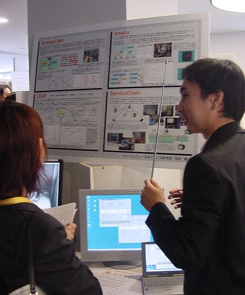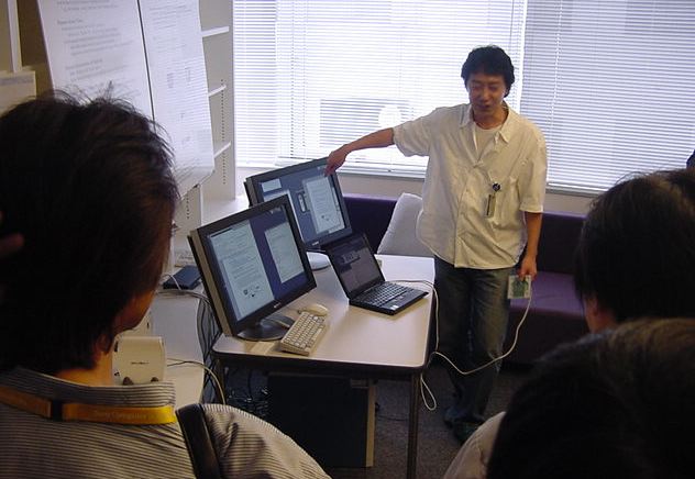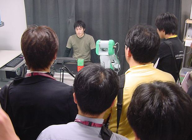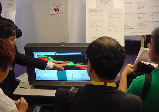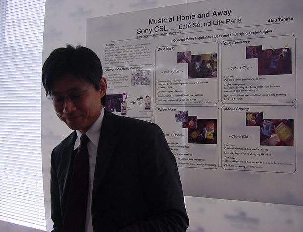 Sonyのコンピュータサイエンスラボラトリ(CSL)のオープンラボに行きました。 初日6/12にはパリCSLのAtau Tanakaの講演などを聞きました。 翌日6/13にはATRのMicheal Lion氏を秋月電子などに案内して、そのあとCSL研究デモを見ました。 最初にアタウの研究デモを見て、そのあとカメラ撮影は駄目、と気付くまでに撮ったものです。 ということでこれは見なかったことにして下さい。(^_^;)