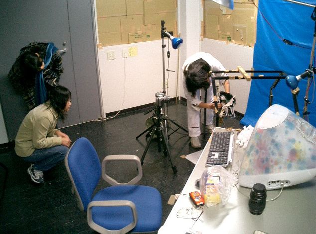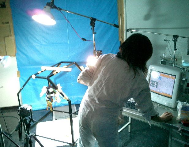 3月に卒業した、技術造形学科の高野結花さんが、 卒業制作で人形アニメを作っている模様を撮影した写真が、 デジカメの奥底から発掘されました。 今後の技術造形学科学生のためにもいい教材となるので、 捨てずにここで紹介することにしました。 いかに大変で、根性の必要な作業であるか、 を見て欲しいと思います。よく頑張りました。