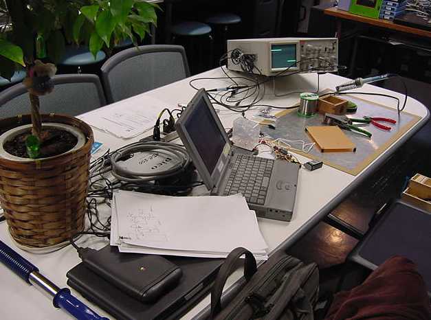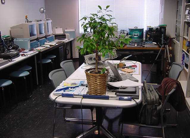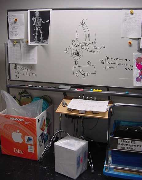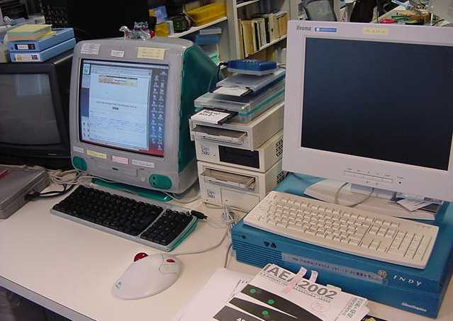 ある日の1106研究室の風景です。「癒し系」、もとい、 「怪し系」の雰囲気がそこはかとなく漂っている、落ち着きのある 部屋です(^_^;)。