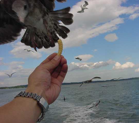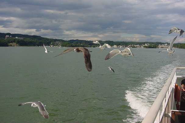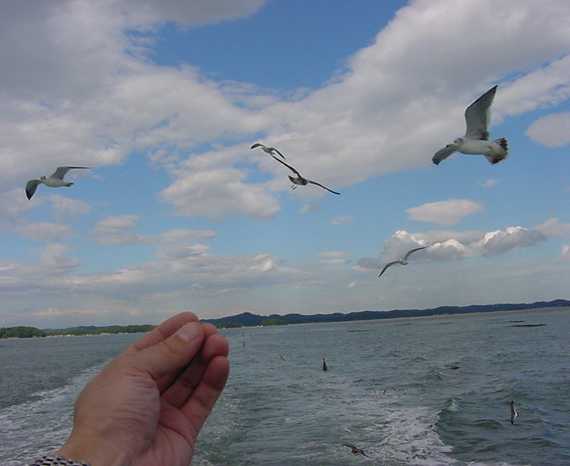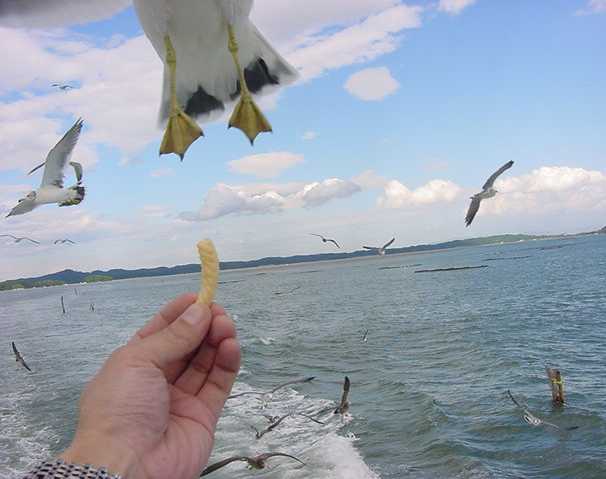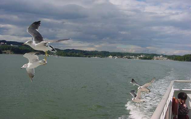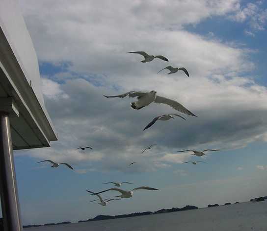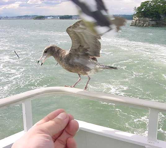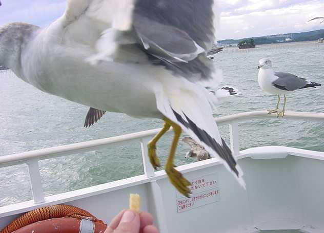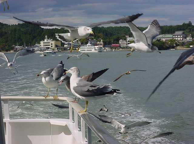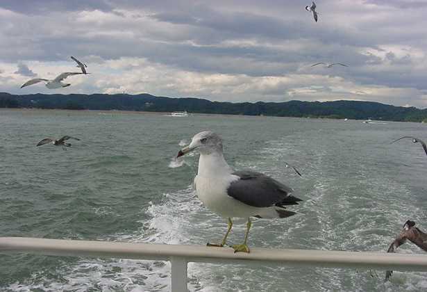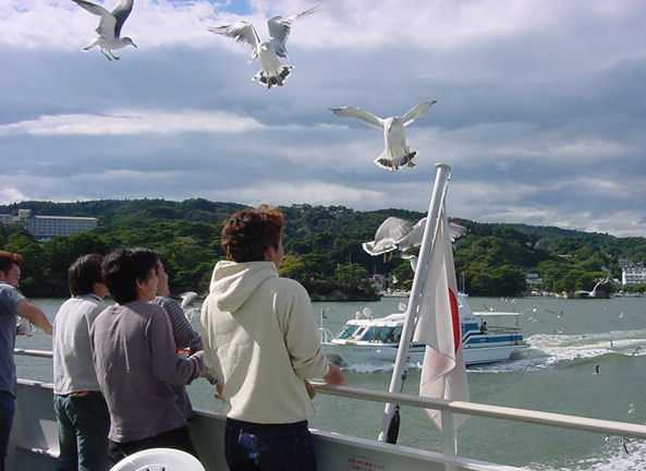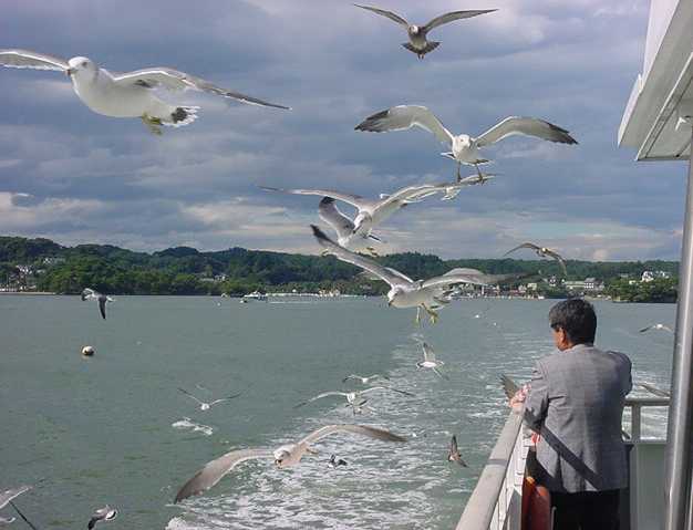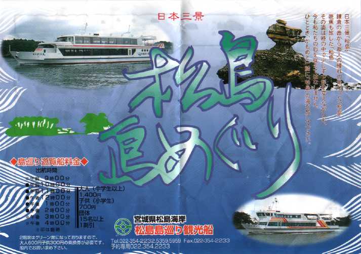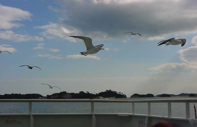 まずは、資料をスキャナで取り込んだものです。 まずは、恒例の鉄道写真シリーズ。浜松から「ひかり」で東京へ、さらに 「やまびこ」で仙台へ、そして仙石線で「松島海岸」に向かいました。 全部で4時間ほどの旅です。(^_^) ★ ★ ★ ★ ★ ★ ★ ★ ★ ★ ★ ★ ★ ★ ★ ★ ★ ★ ★ ★ ★ ★ 松島海岸駅前のチケット売り場で観光船のチケットを買いました。 ちゃんと事前にインターネット割引券を印刷してきたので10%引きです。 そして、公園を抜けて、「第3仁王丸」の乗船へと向かいました。まずまずの 天気でした。 ★ ★ ★ ★ ★ ★ ★ ★ ★ ★ ★ ★ ★ ★ ★ ★ ★ ★ ★ ★ ★ ★ せっかくですので、グリーン料金を出して2階に上がり、後部甲板での 観光と決めました。 さて、いよいよ出航してみると、驚いたことに多数のカモメが船に 付いてきます。これは実は、船内で売っている「かっぱえびせん」を お客がカモメに投げ与える、というのがどうも「売り」らしく、 他のお客さんがやっているのを見て、遂には僕も「カモメ餌付けの 瞬間」の激写に挑戦しました。多数の島もなかなか壮観でした。(^_^)