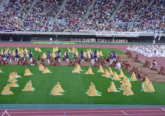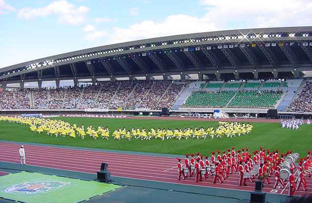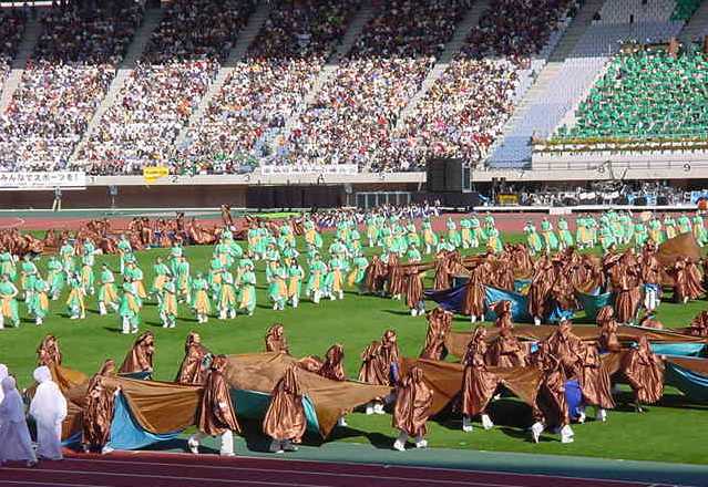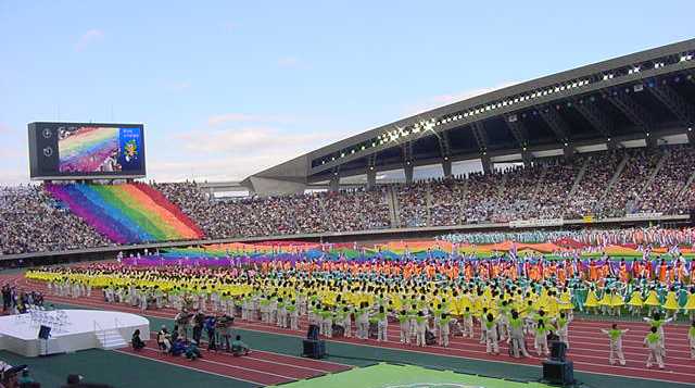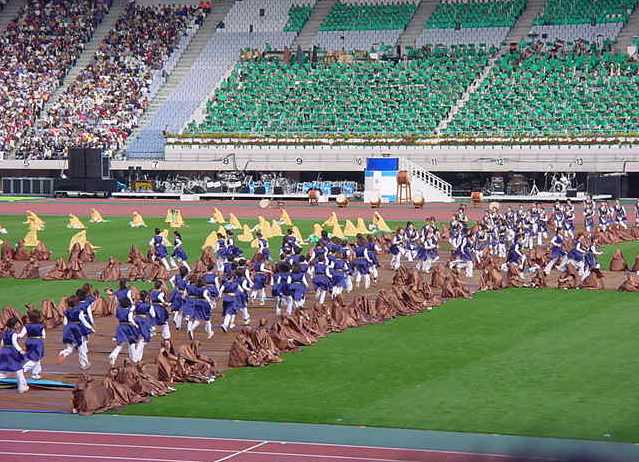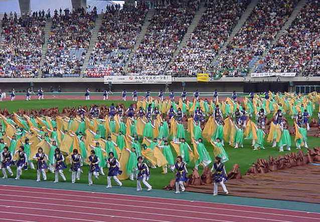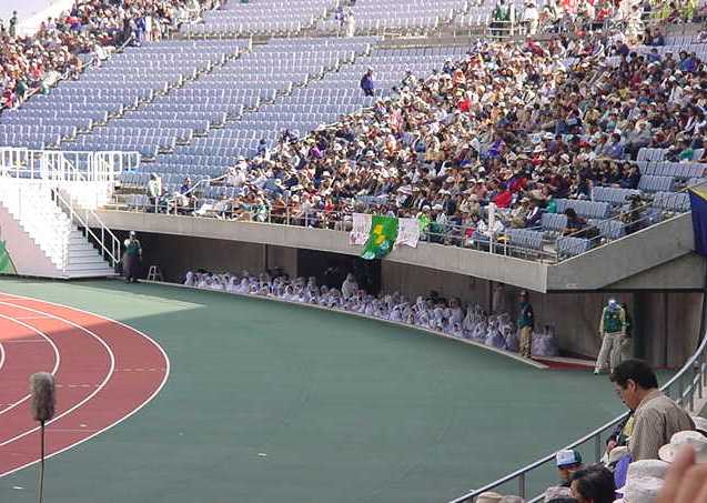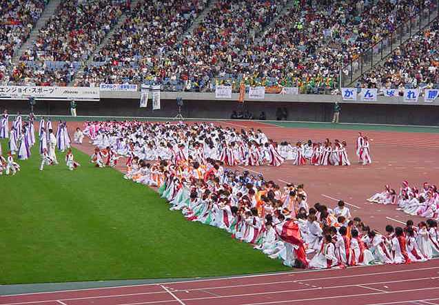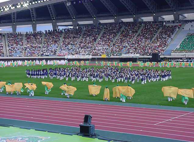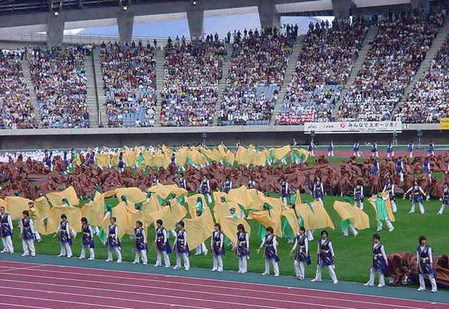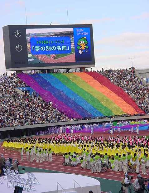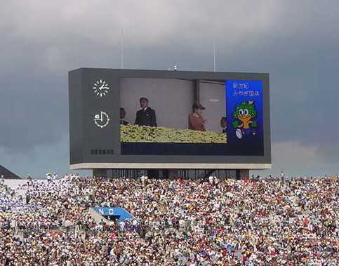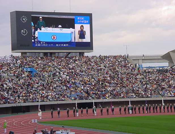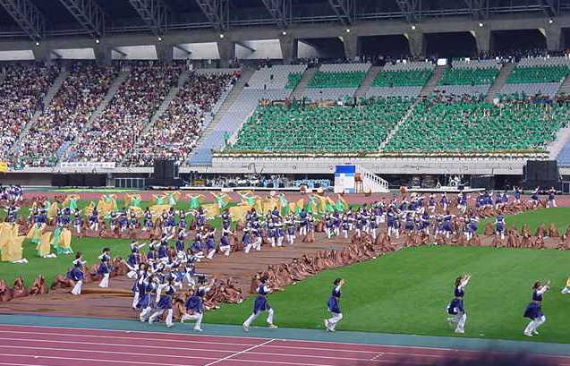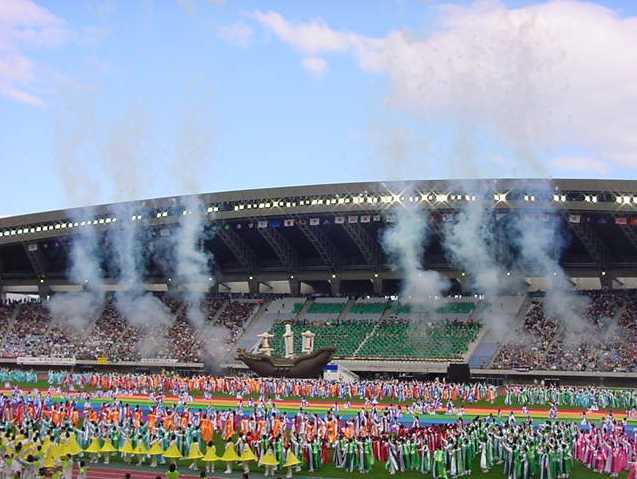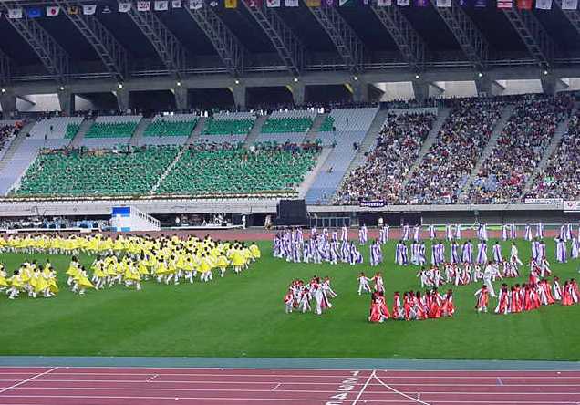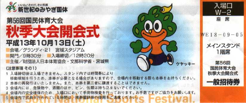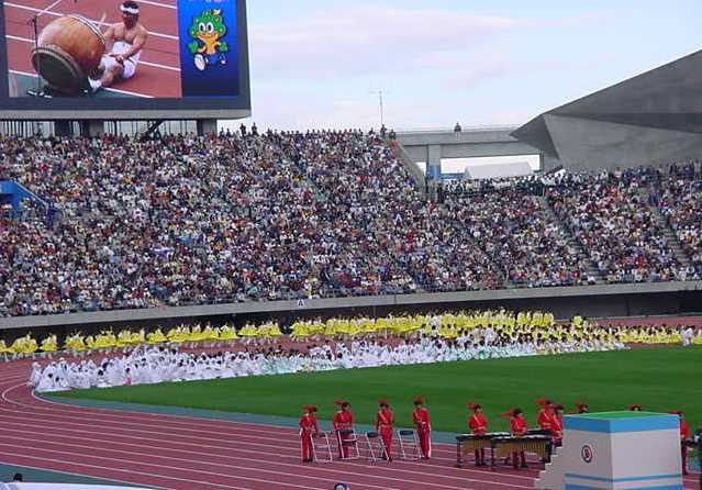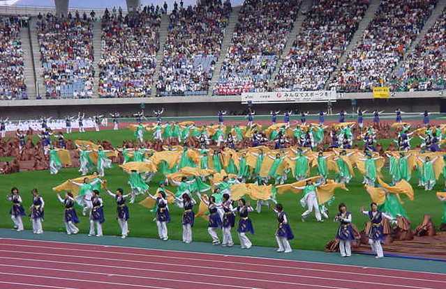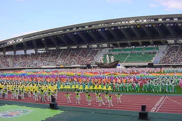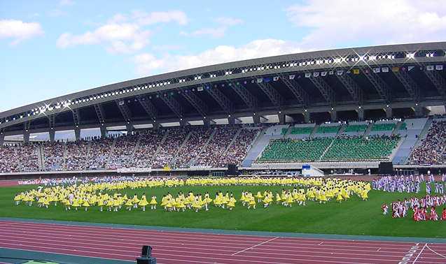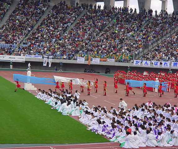 宮城国体秋期大会開会式視察レポート2001年10月 長嶋洋一2003静岡国体・SUAC式典プロデュースチームの一員として、去年の富山国体 の4回の視察に続いて、今年も宮城国体に計4回、視察に行くことになりました。 今回は、10/13の秋期大会開会式の模様です。