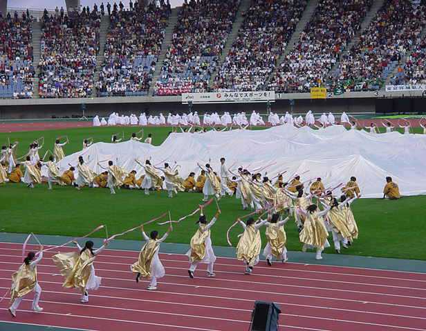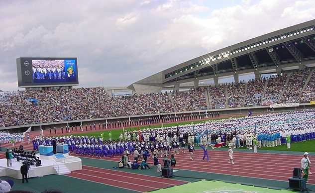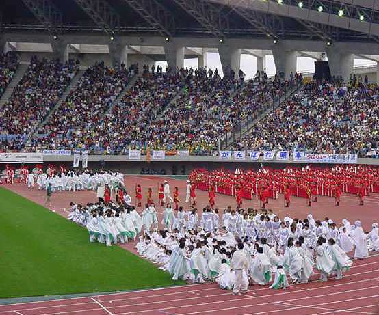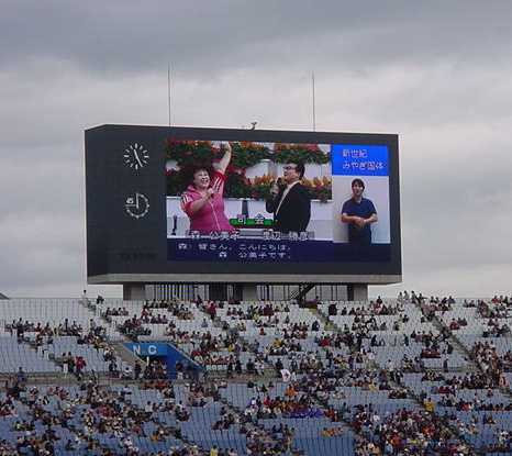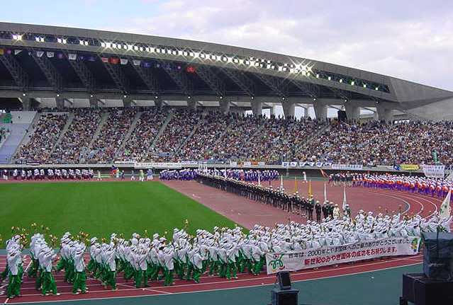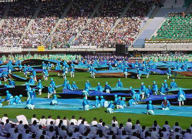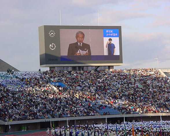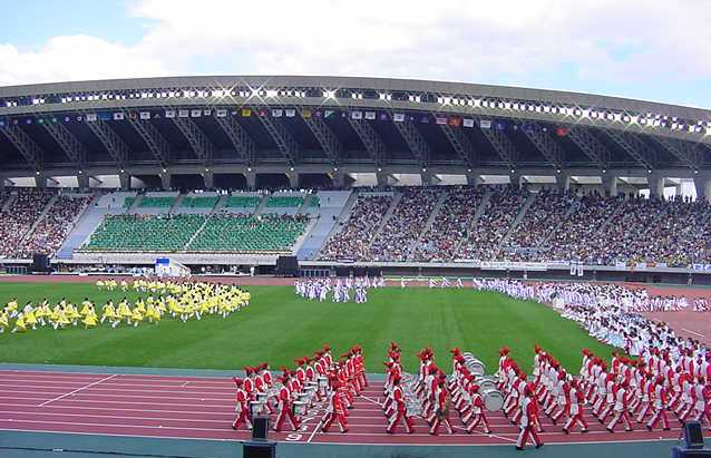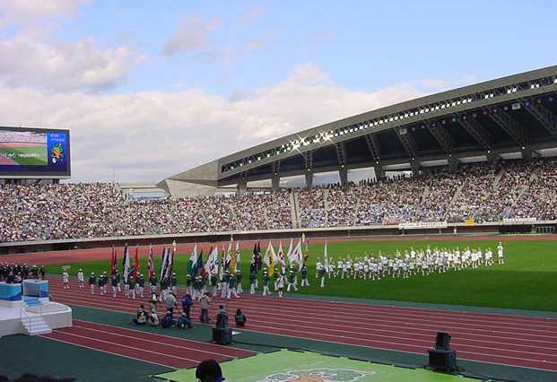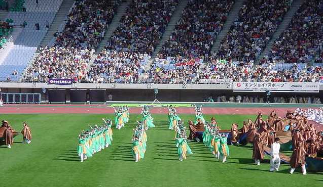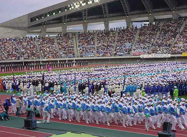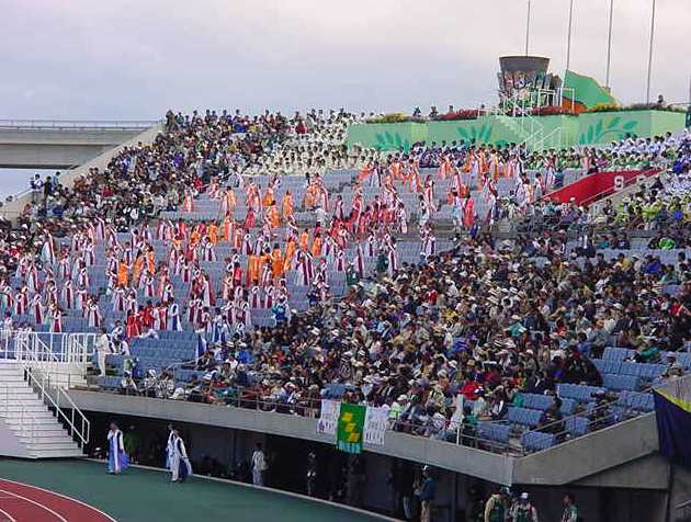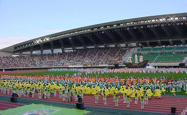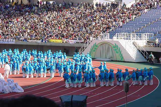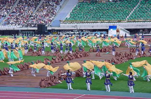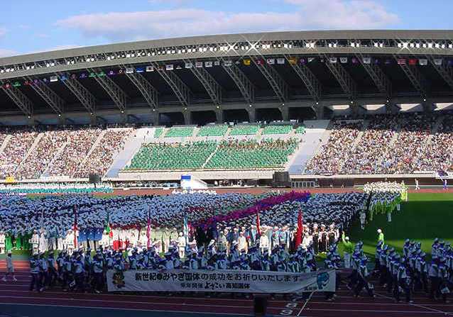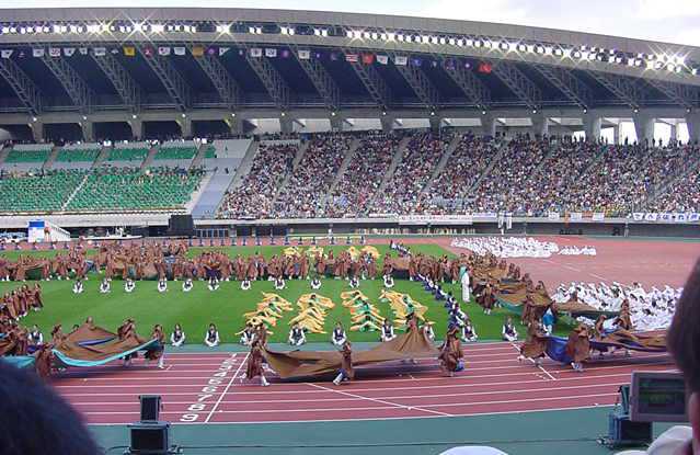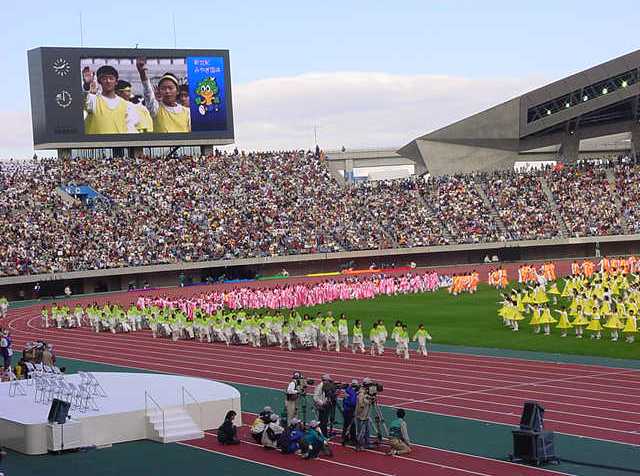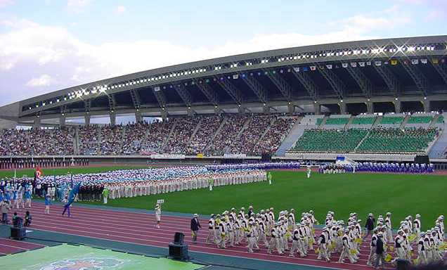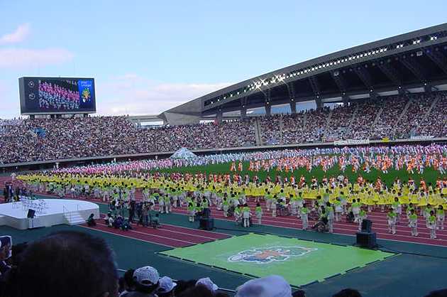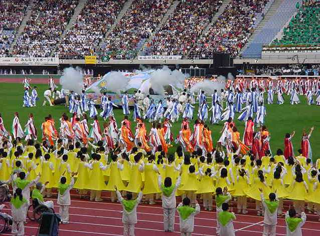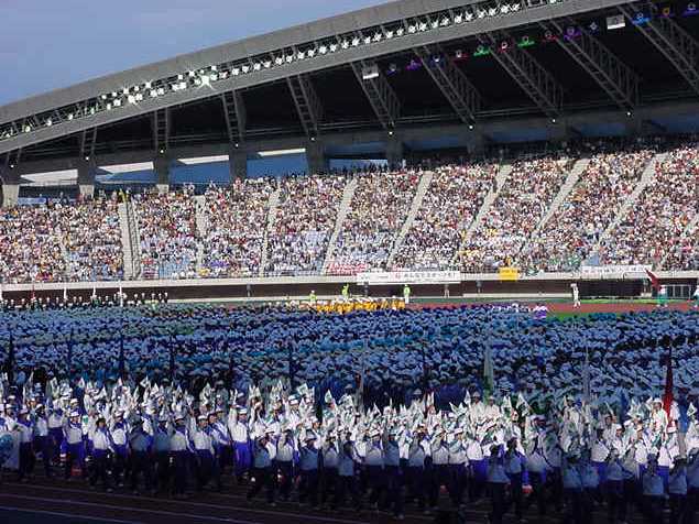 宮城国体秋期大会開会式視察レポート2001年10月 長嶋洋一2003静岡国体・SUAC式典プロデュースチームの一員として、去年の富山国体 の4回の視察に続いて、今年も宮城国体に計4回、視察に行くことになりました。 今回は、10/13の秋期大会開会式の模様です。