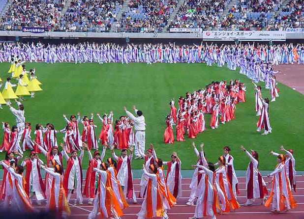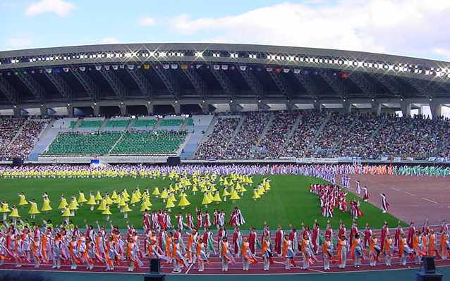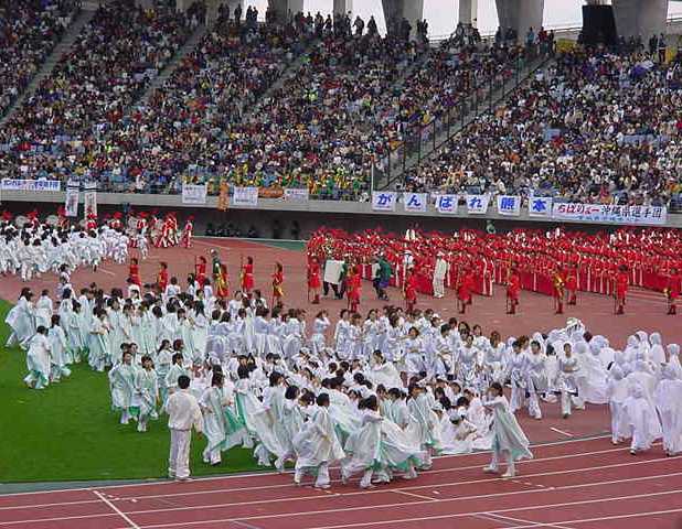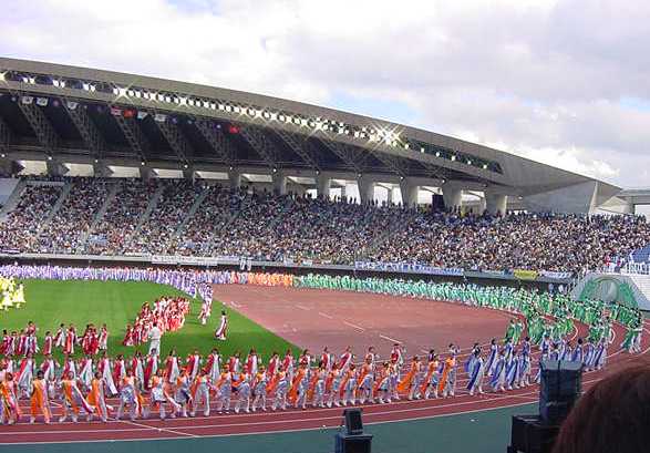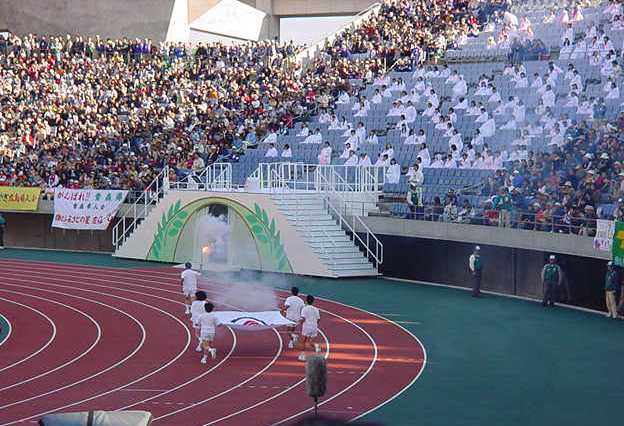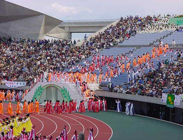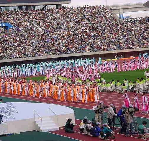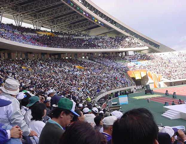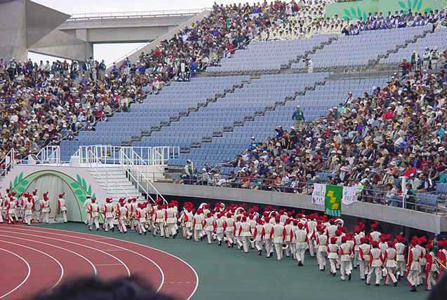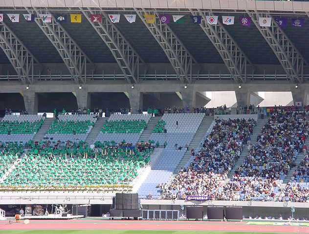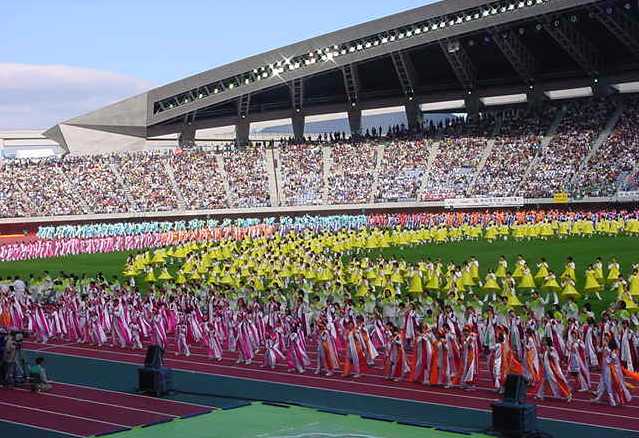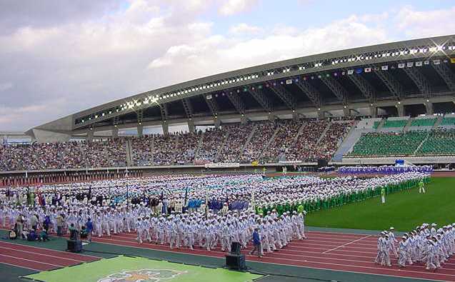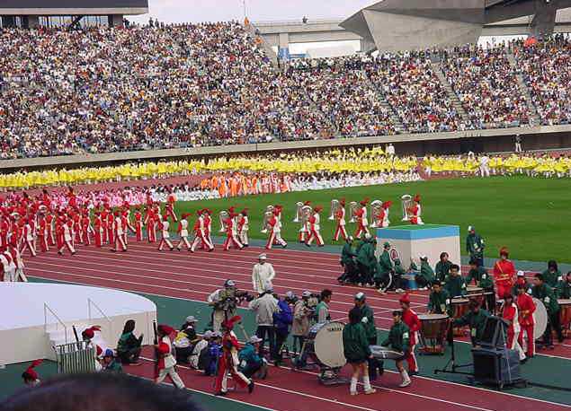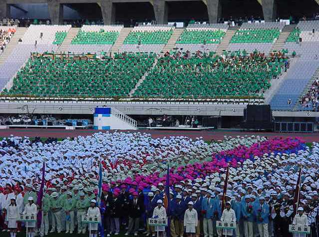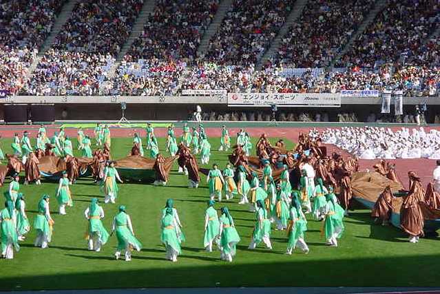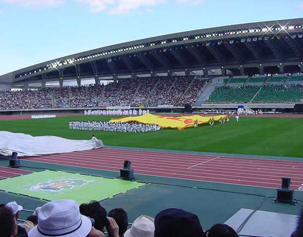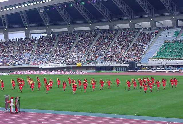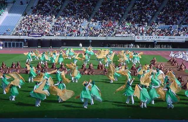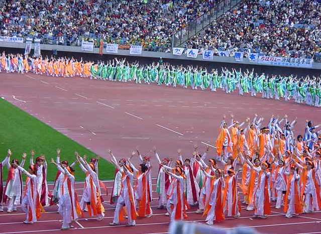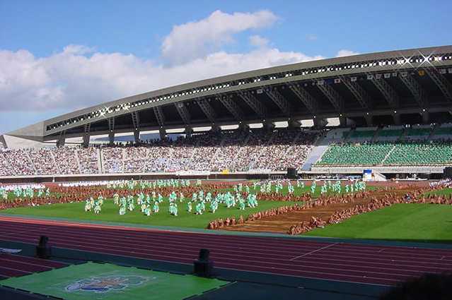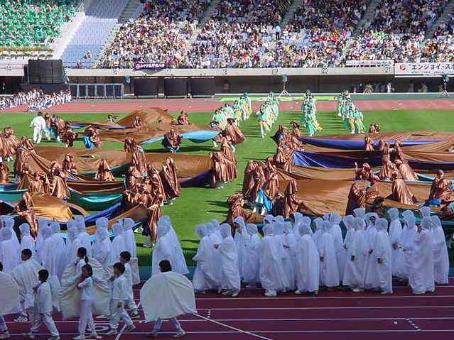 宮城国体秋期大会開会式視察レポート2001年10月 長嶋洋一2003静岡国体・SUAC式典プロデュースチームの一員として、去年の富山国体 の4回の視察に続いて、今年も宮城国体に計4回、視察に行くことになりました。 今回は、10/13の秋期大会開会式の模様です。