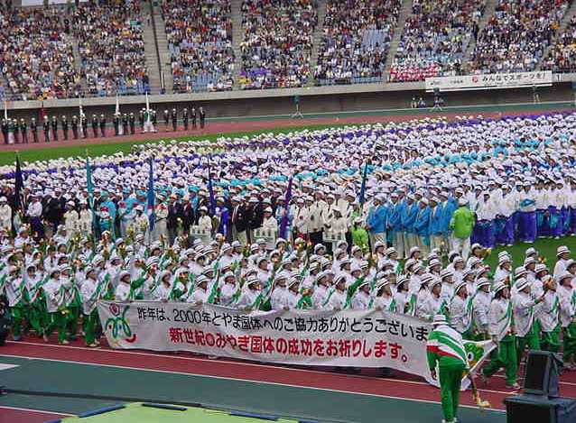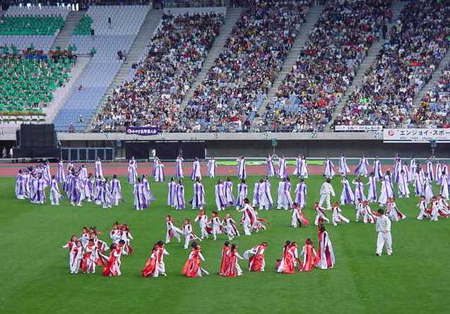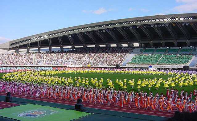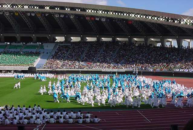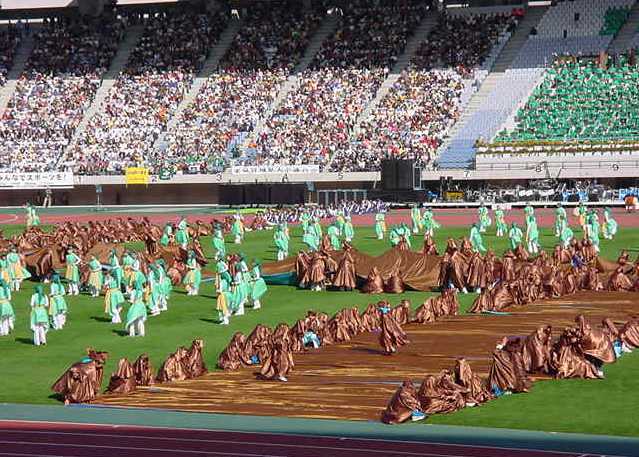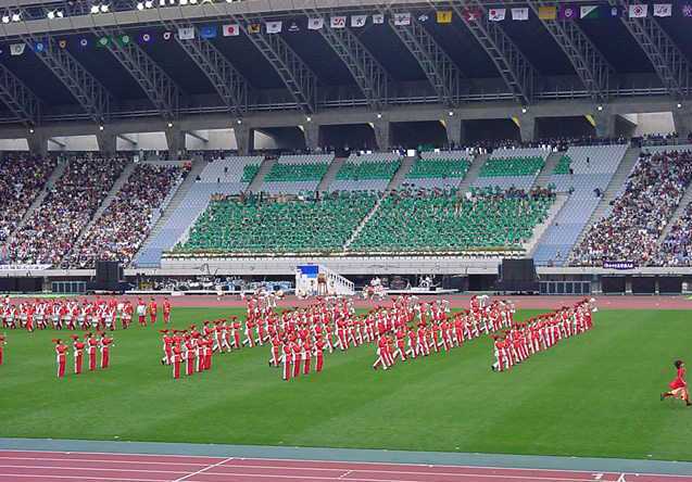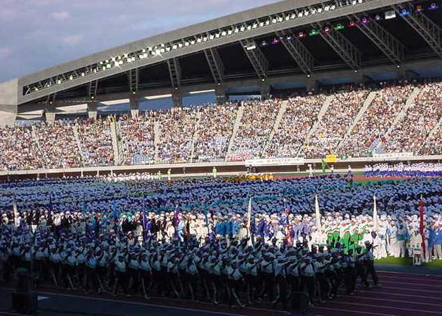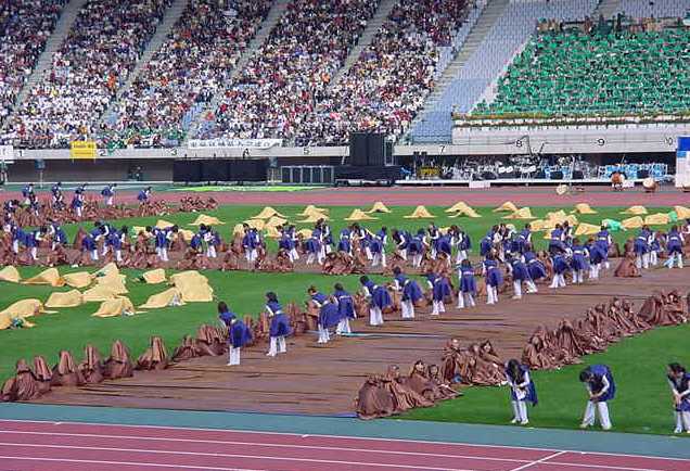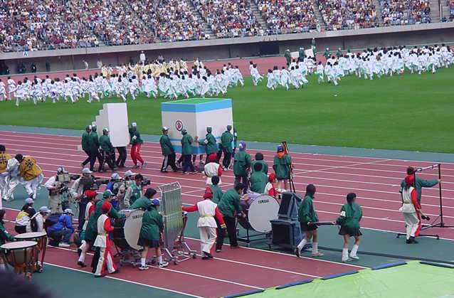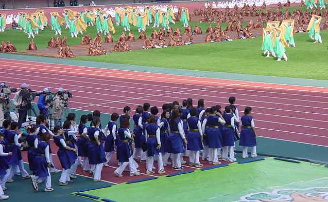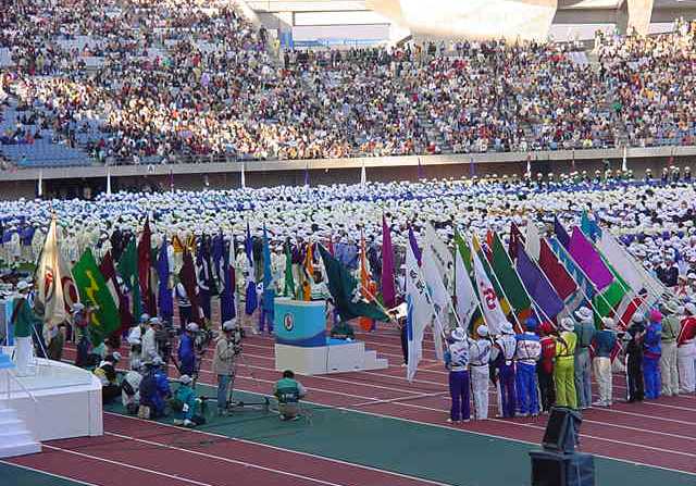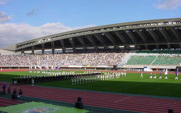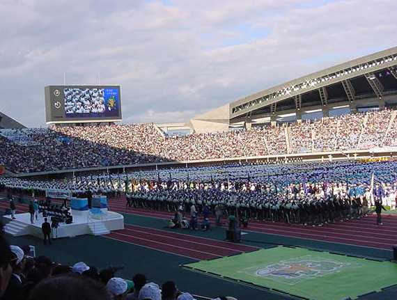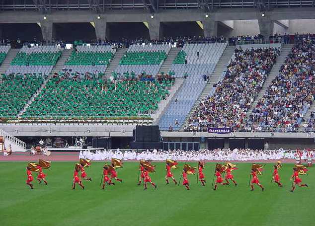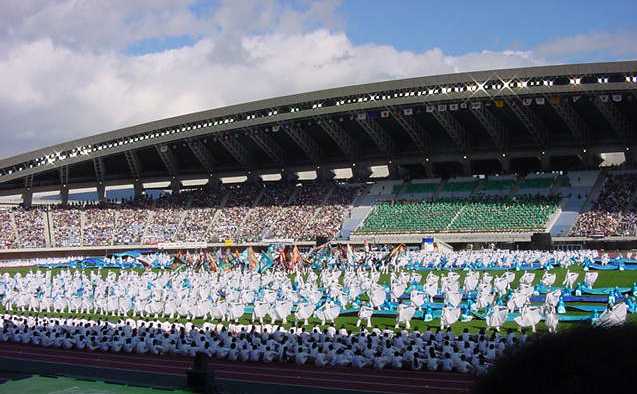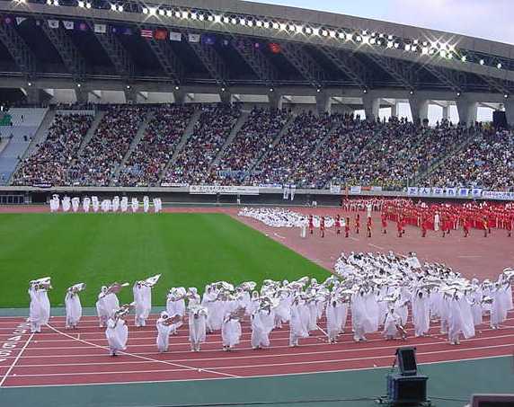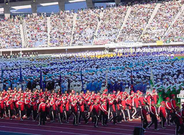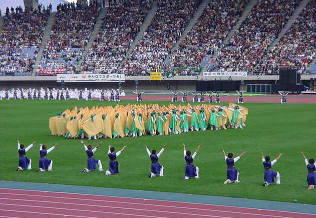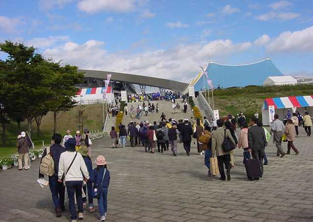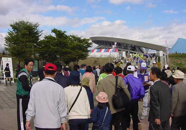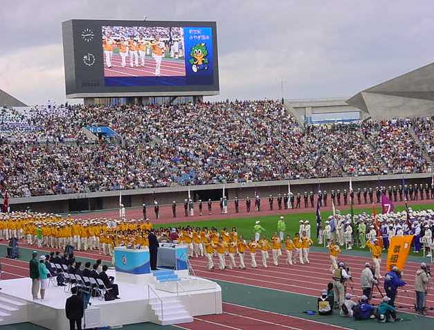 宮城国体秋期大会開会式視察レポート2001年10月 長嶋洋一2003静岡国体・SUAC式典プロデュースチームの一員として、去年の富山国体 の4回の視察に続いて、今年も宮城国体に計4回、視察に行くことになりました。 今回は、10/13の秋期大会開会式の模様です。