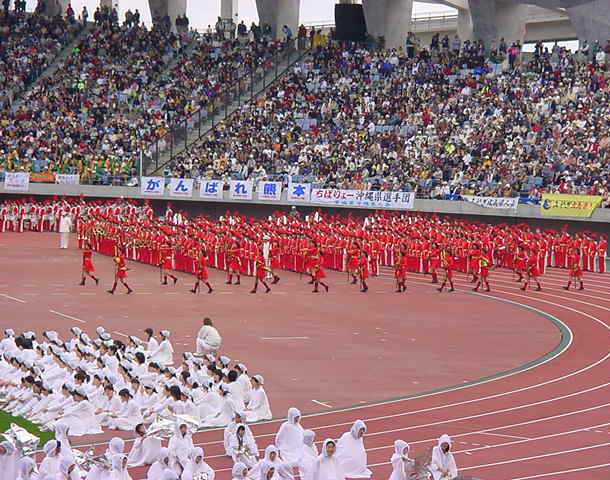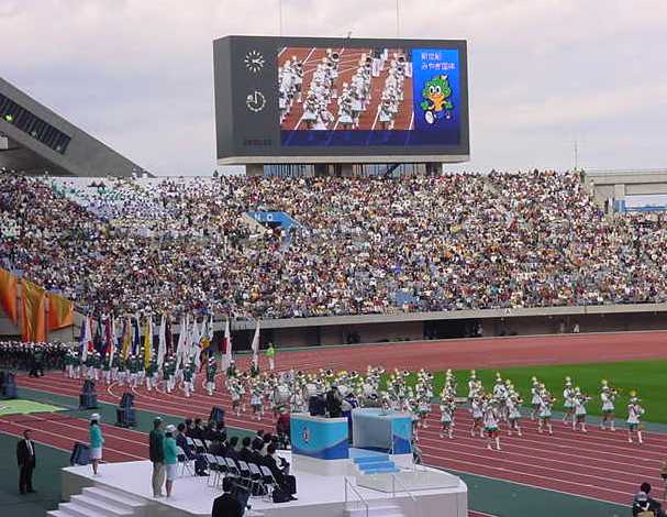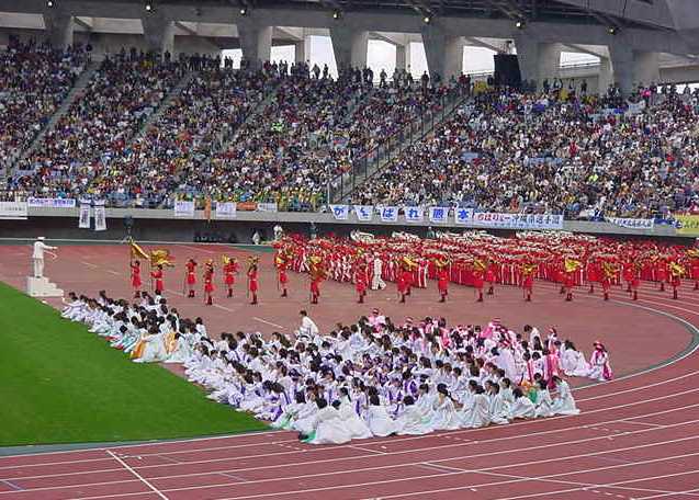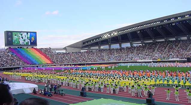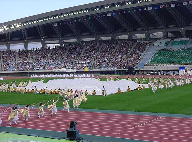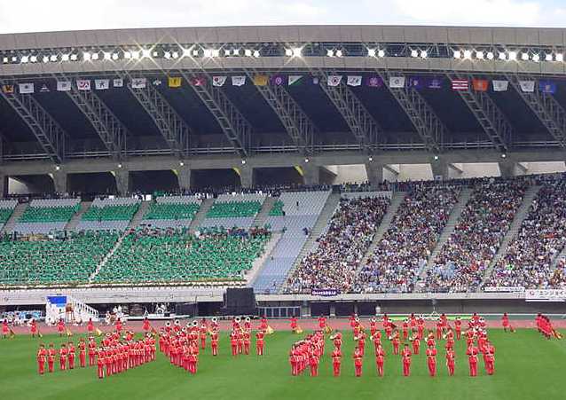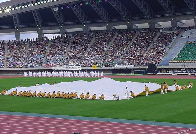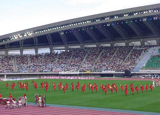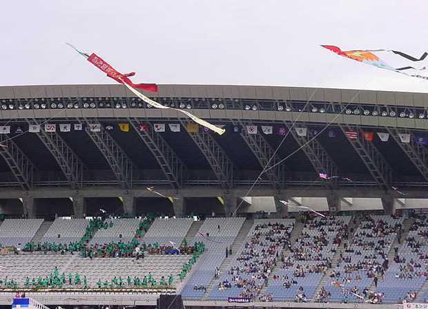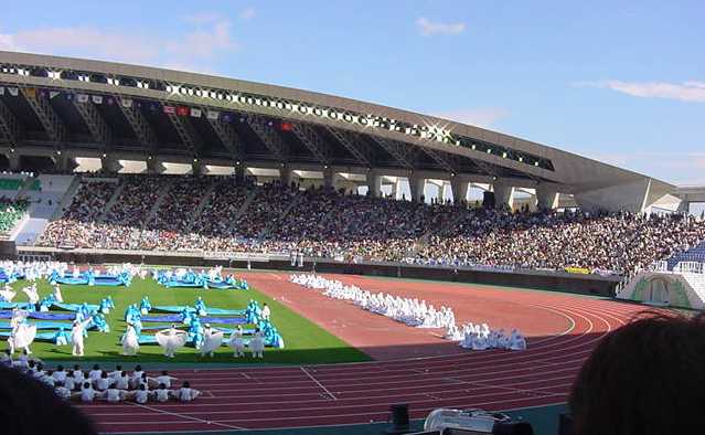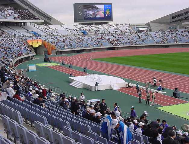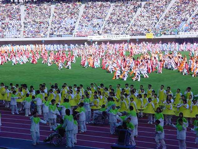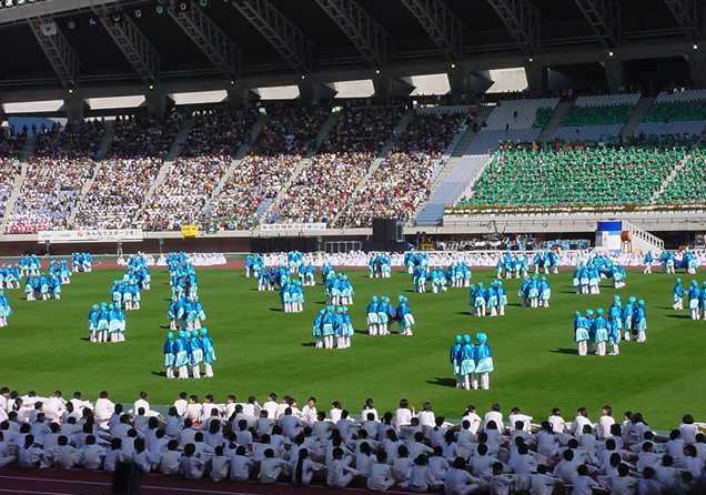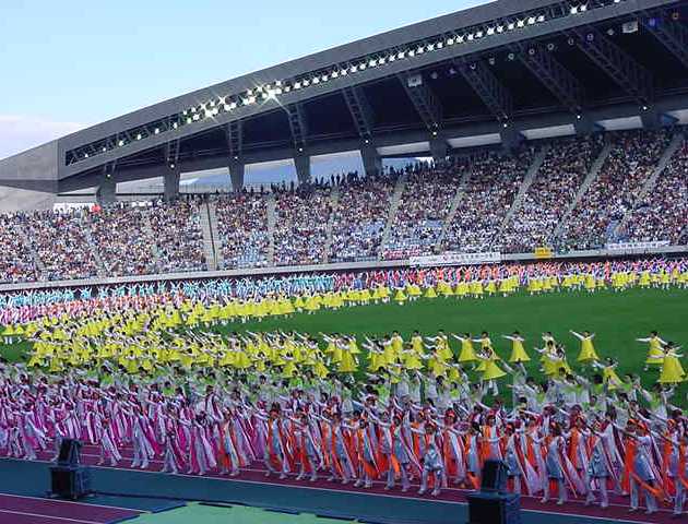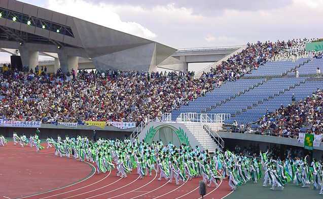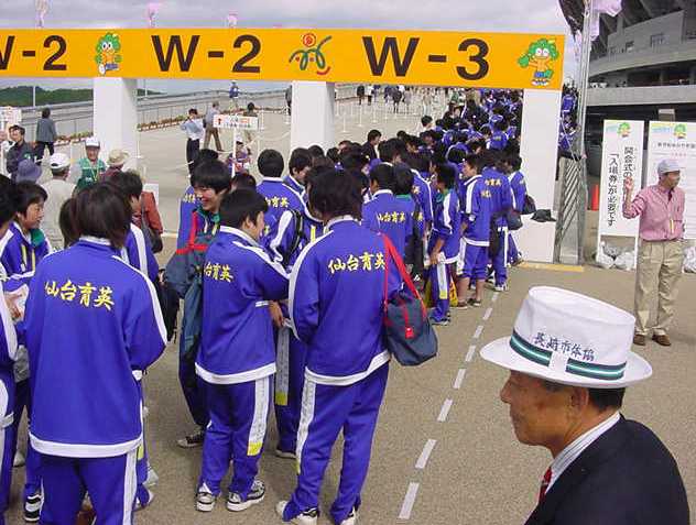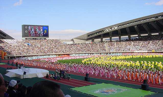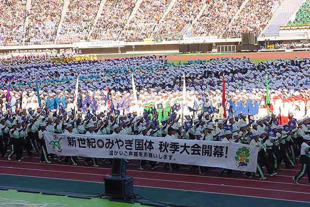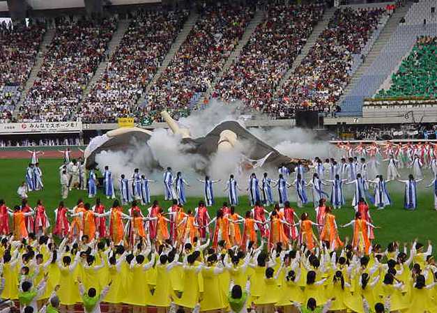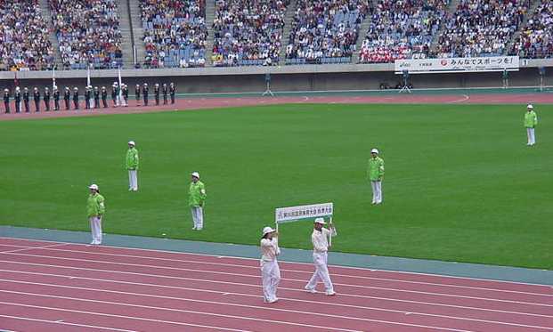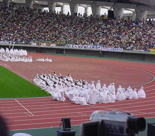 宮城国体秋期大会開会式視察レポート2001年10月 長嶋洋一2003静岡国体・SUAC式典プロデュースチームの一員として、去年の富山国体 の4回の視察に続いて、今年も宮城国体に計4回、視察に行くことになりました。 今回は、10/13の秋期大会開会式の模様です。