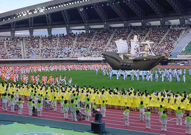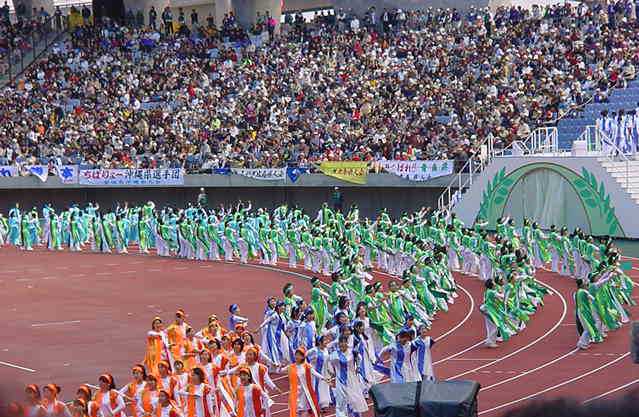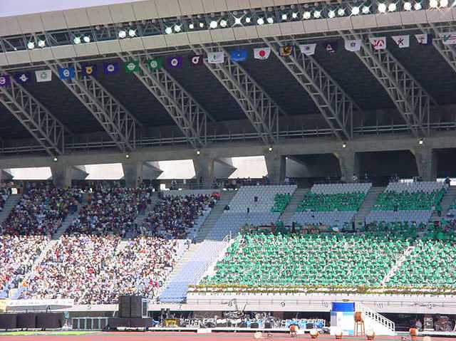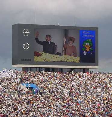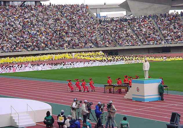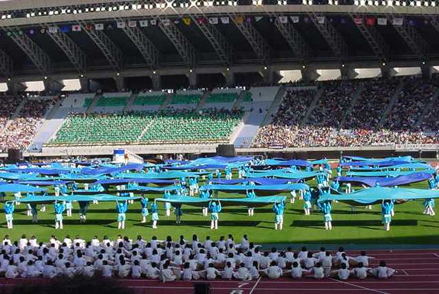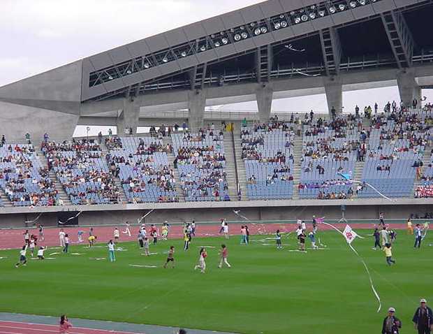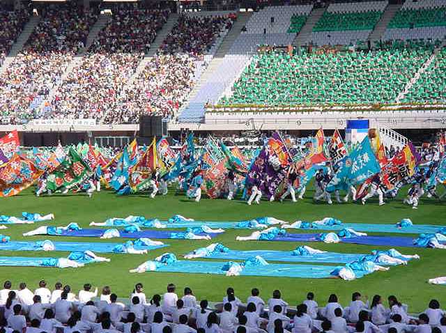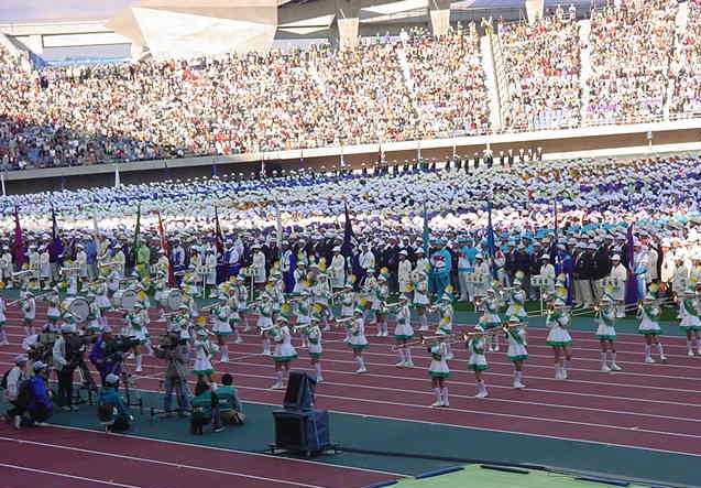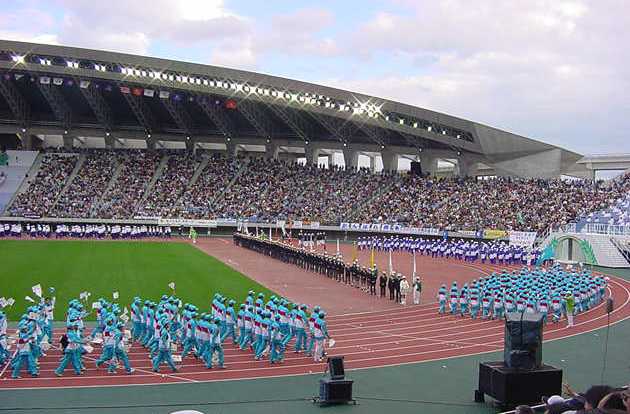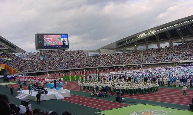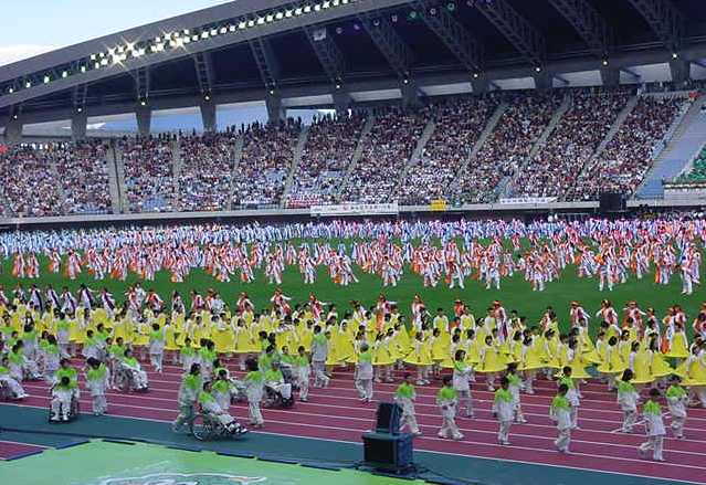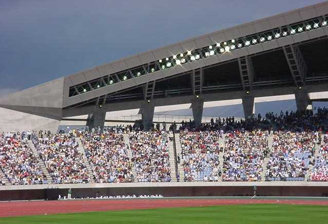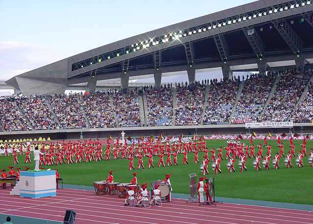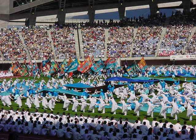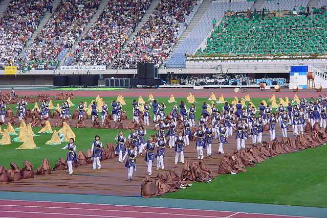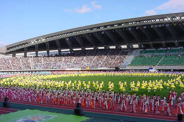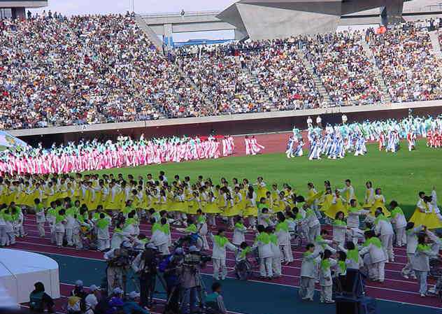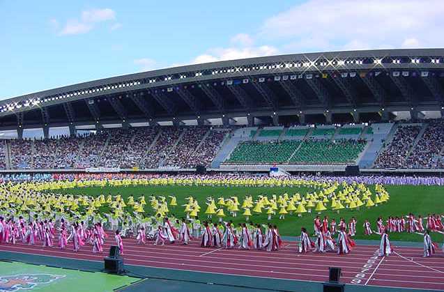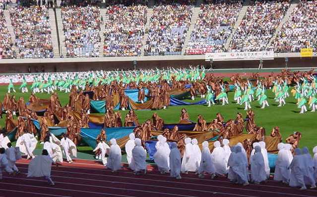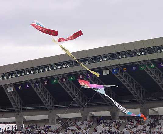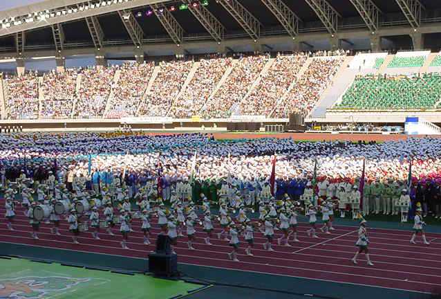 宮城国体秋期大会開会式視察レポート2001年10月 長嶋洋一2003静岡国体・SUAC式典プロデュースチームの一員として、去年の富山国体 の4回の視察に続いて、今年も宮城国体に計4回、視察に行くことになりました。 今回は、10/13の秋期大会開会式の模様です。