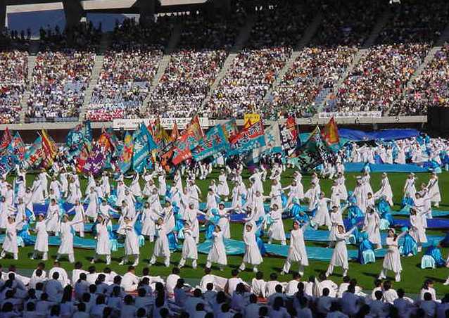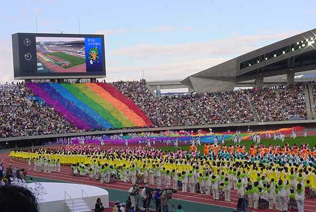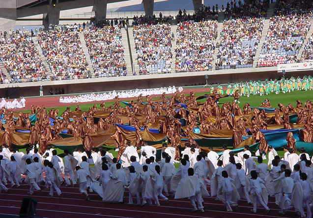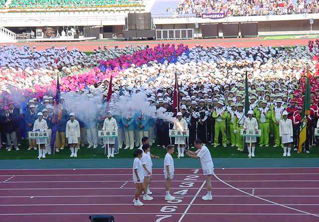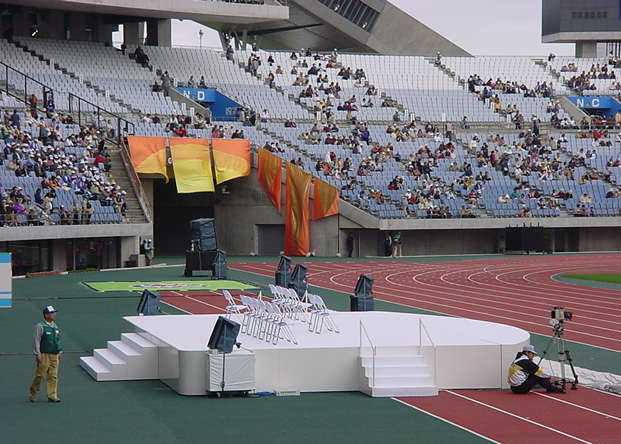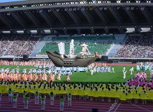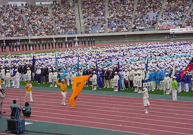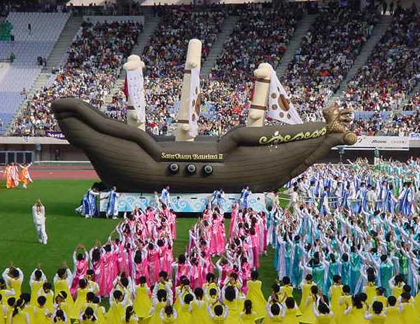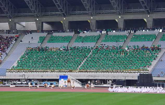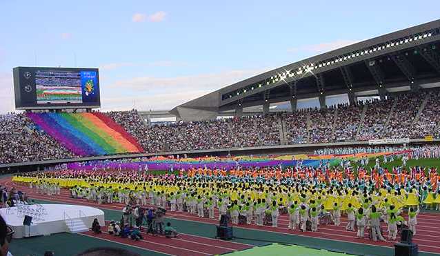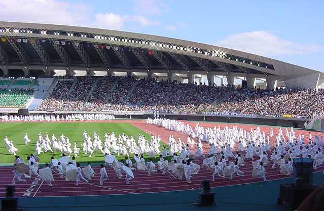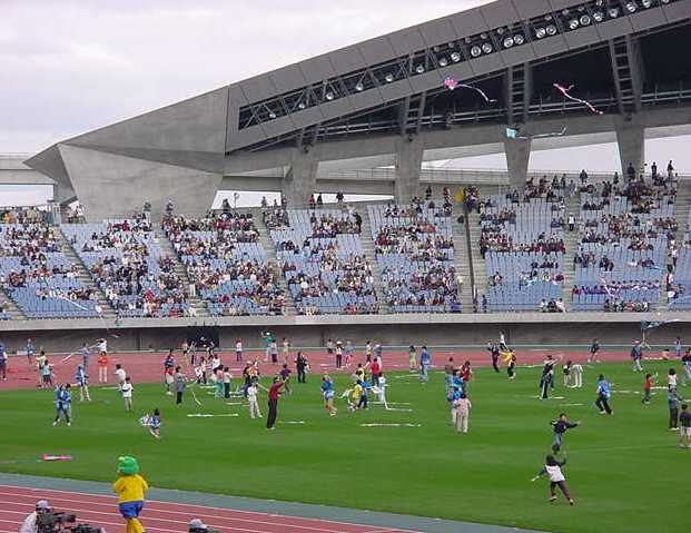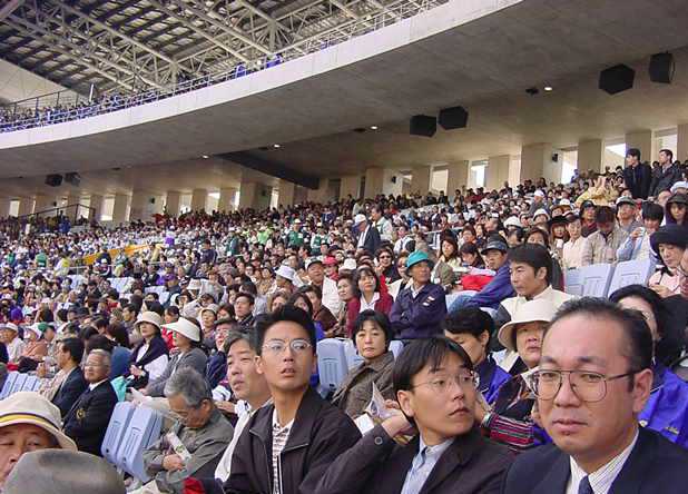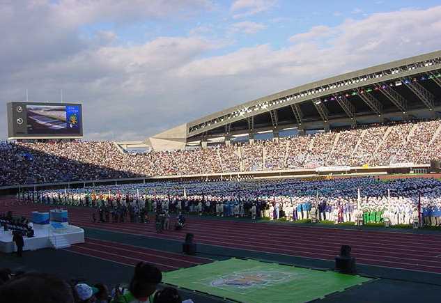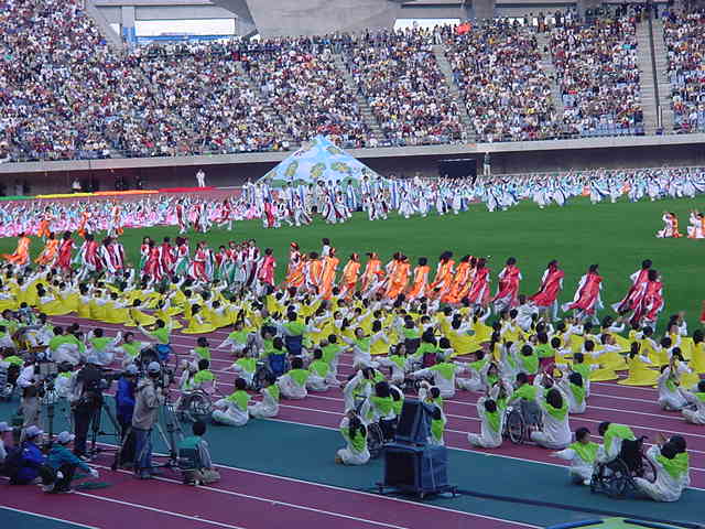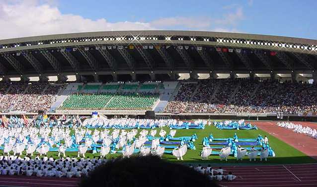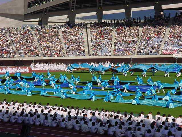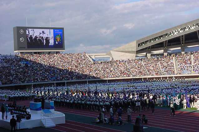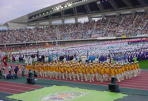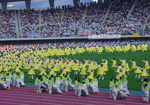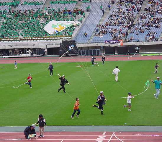 宮城国体秋期大会開会式視察レポート2001年10月 長嶋洋一2003静岡国体・SUAC式典プロデュースチームの一員として、去年の富山国体 の4回の視察に続いて、今年も宮城国体に計4回、視察に行くことになりました。 今回は、10/13の秋期大会開会式の模様です。