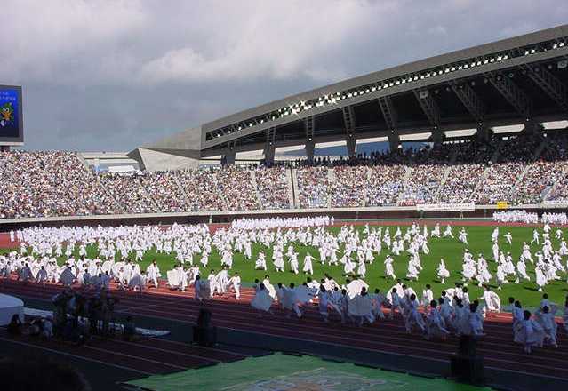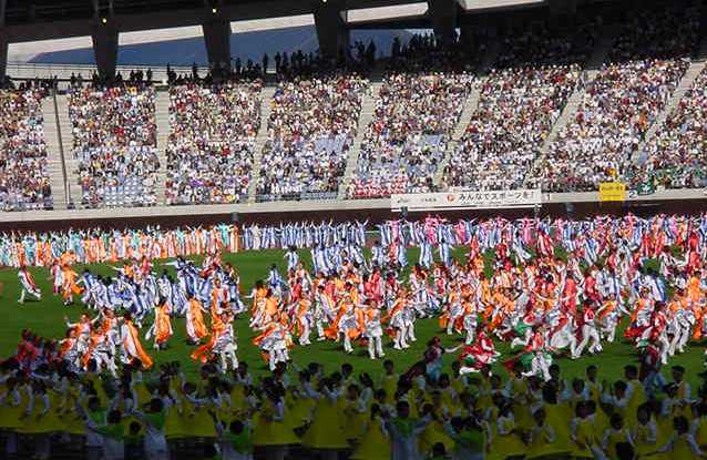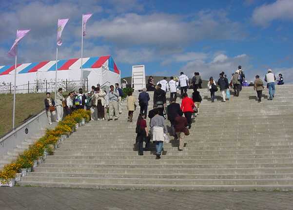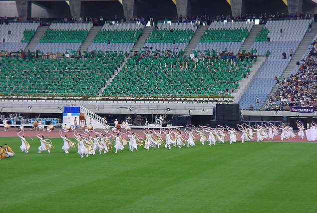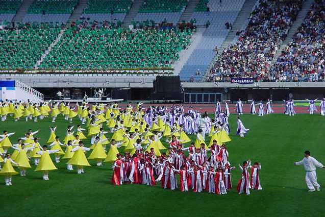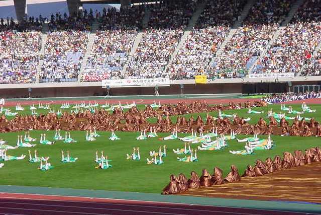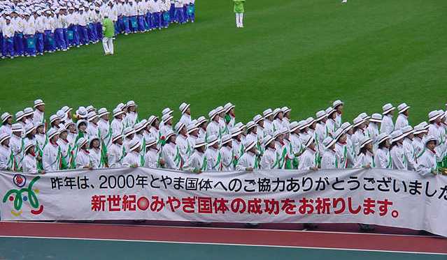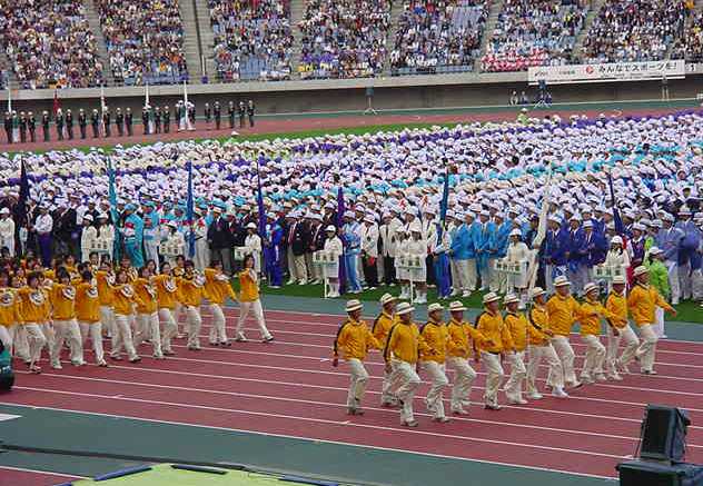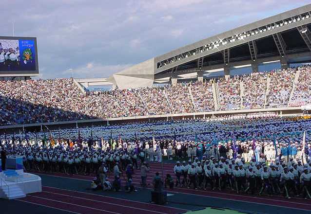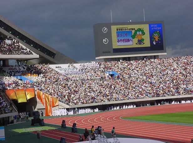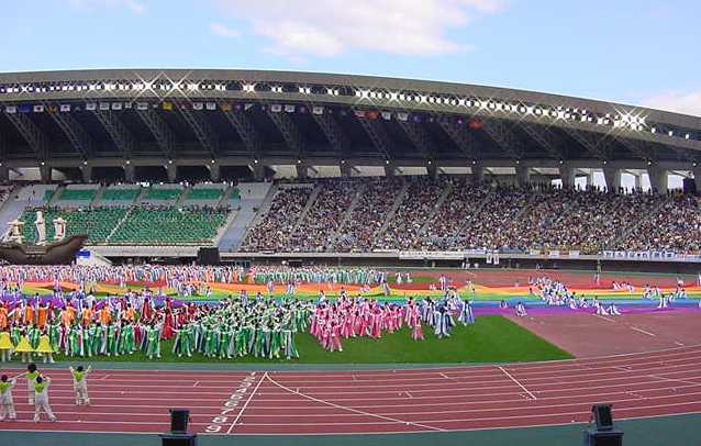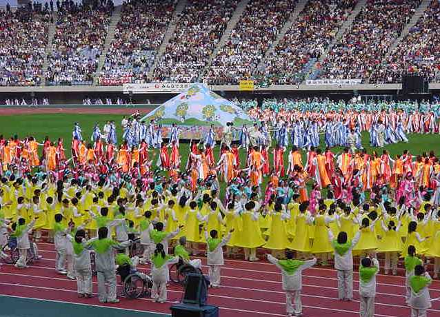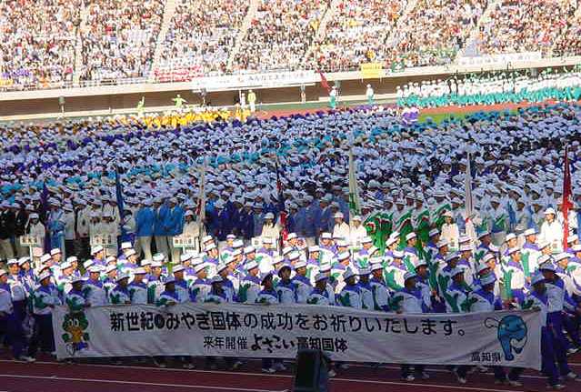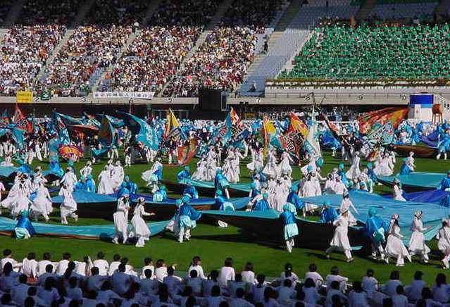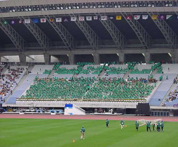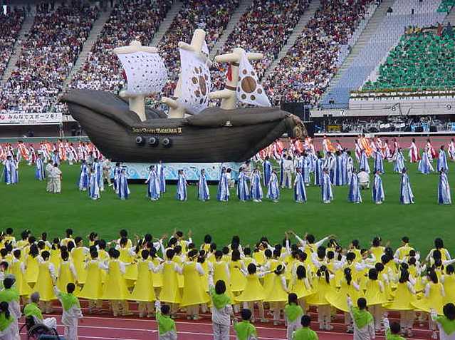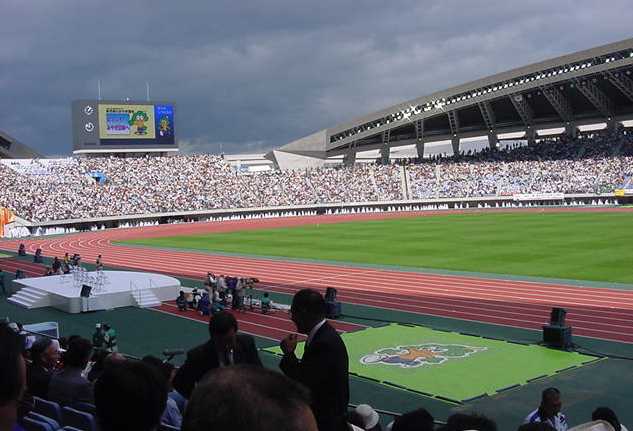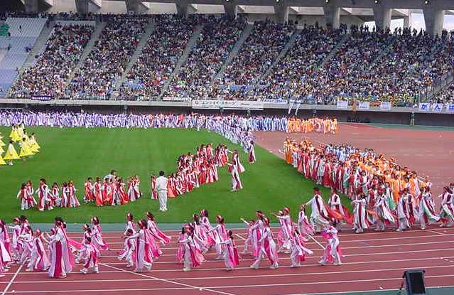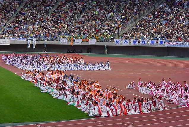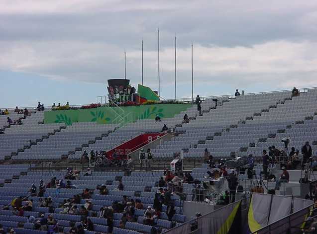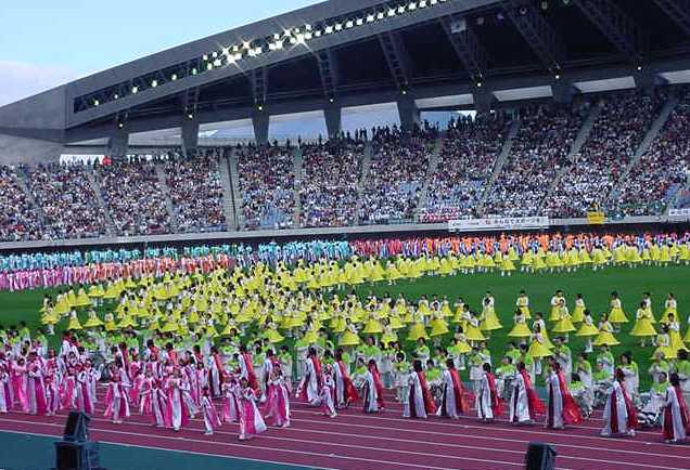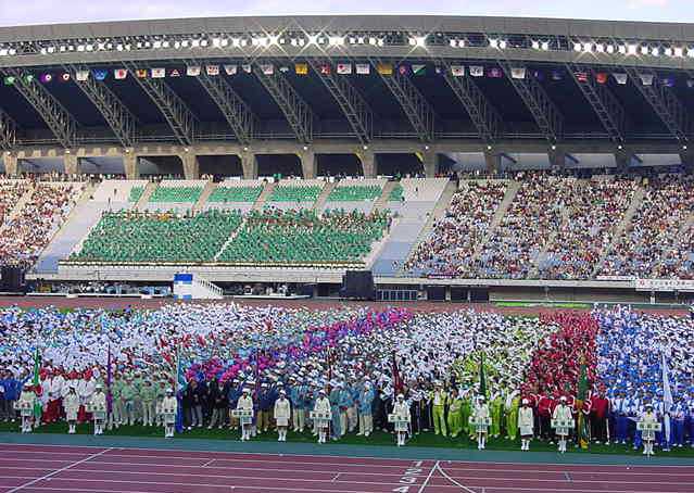 宮城国体秋期大会開会式視察レポート2001年10月 長嶋洋一2003静岡国体・SUAC式典プロデュースチームの一員として、去年の富山国体 の4回の視察に続いて、今年も宮城国体に計4回、視察に行くことになりました。 今回は、10/13の秋期大会開会式の模様です。