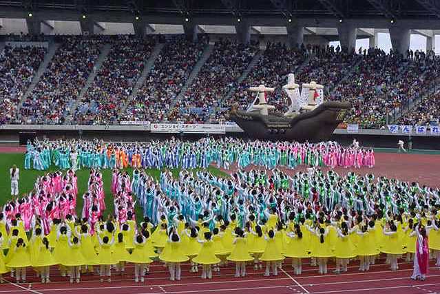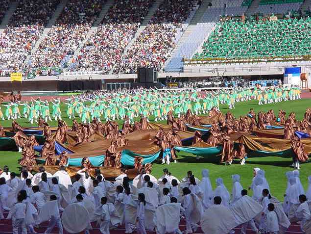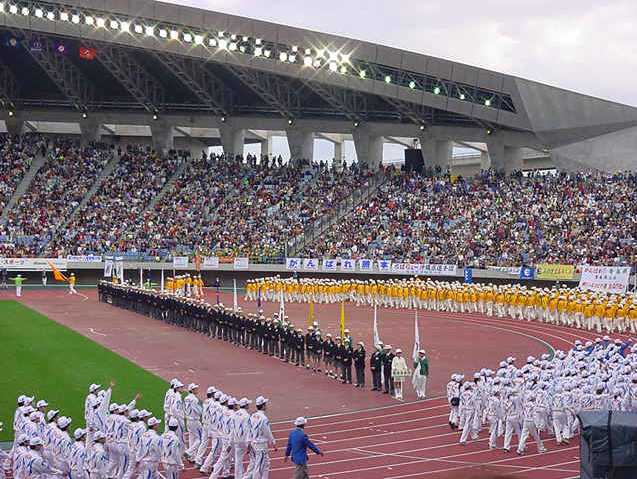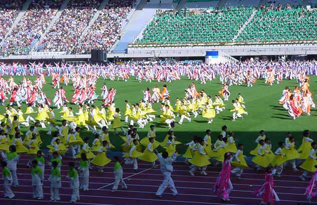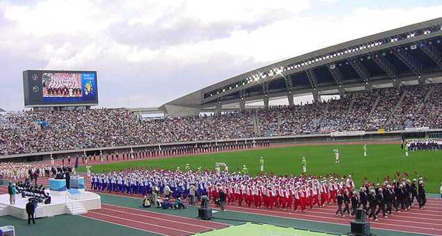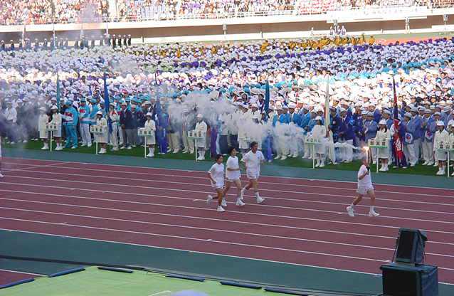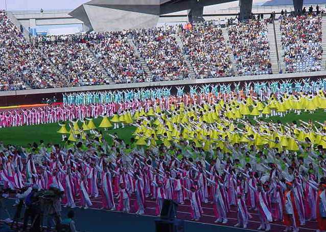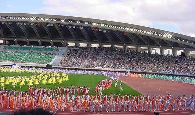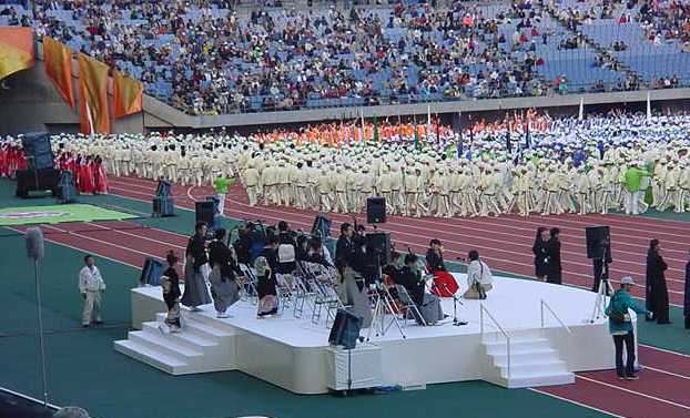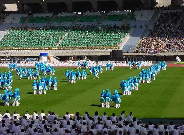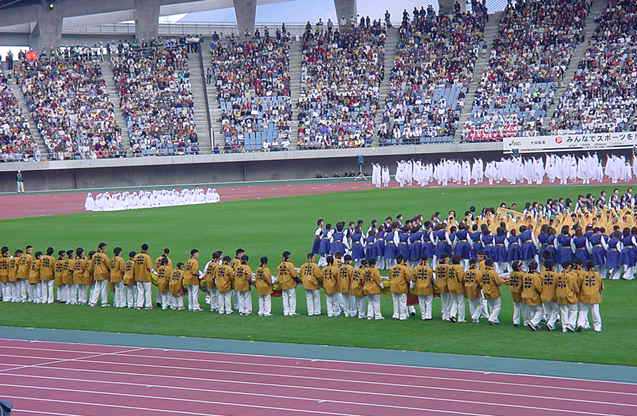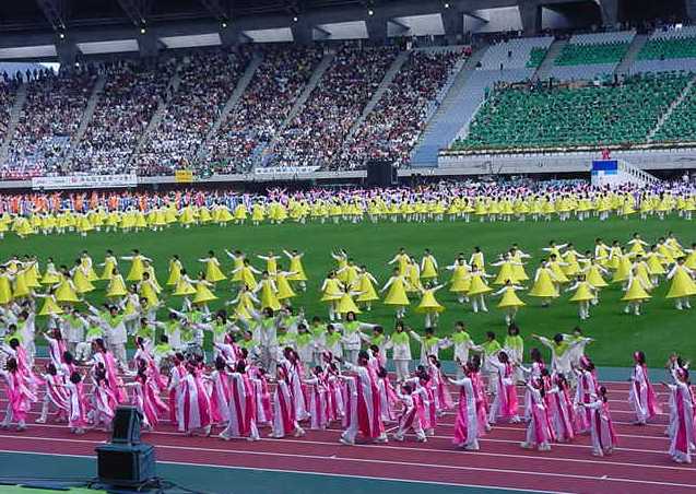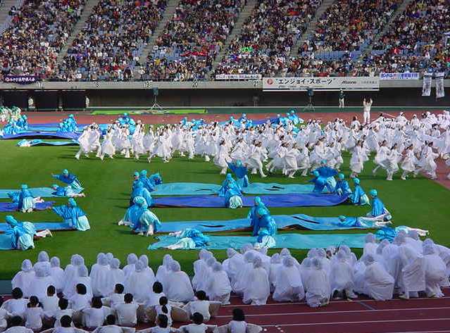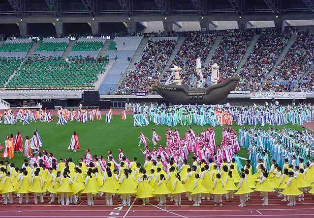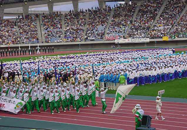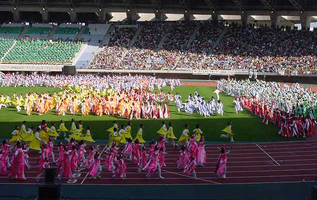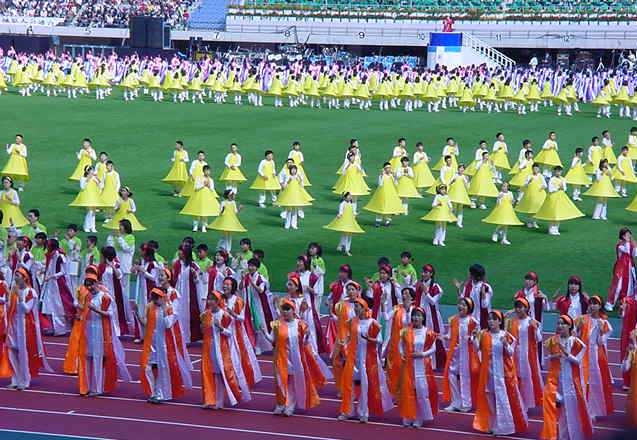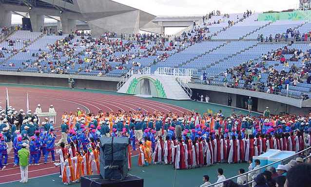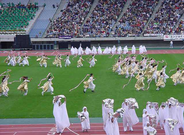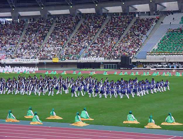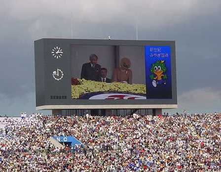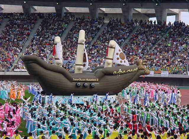宮城国体秋期大会開会式視察レポート2001年10月 長嶋洋一2003静岡国体・SUAC式典プロデュースチームの一員として、去年の富山国体 の4回の視察に続いて、今年も宮城国体に計4回、視察に行くことになりました。 今回は、10/13の秋期大会開会式の模様です。